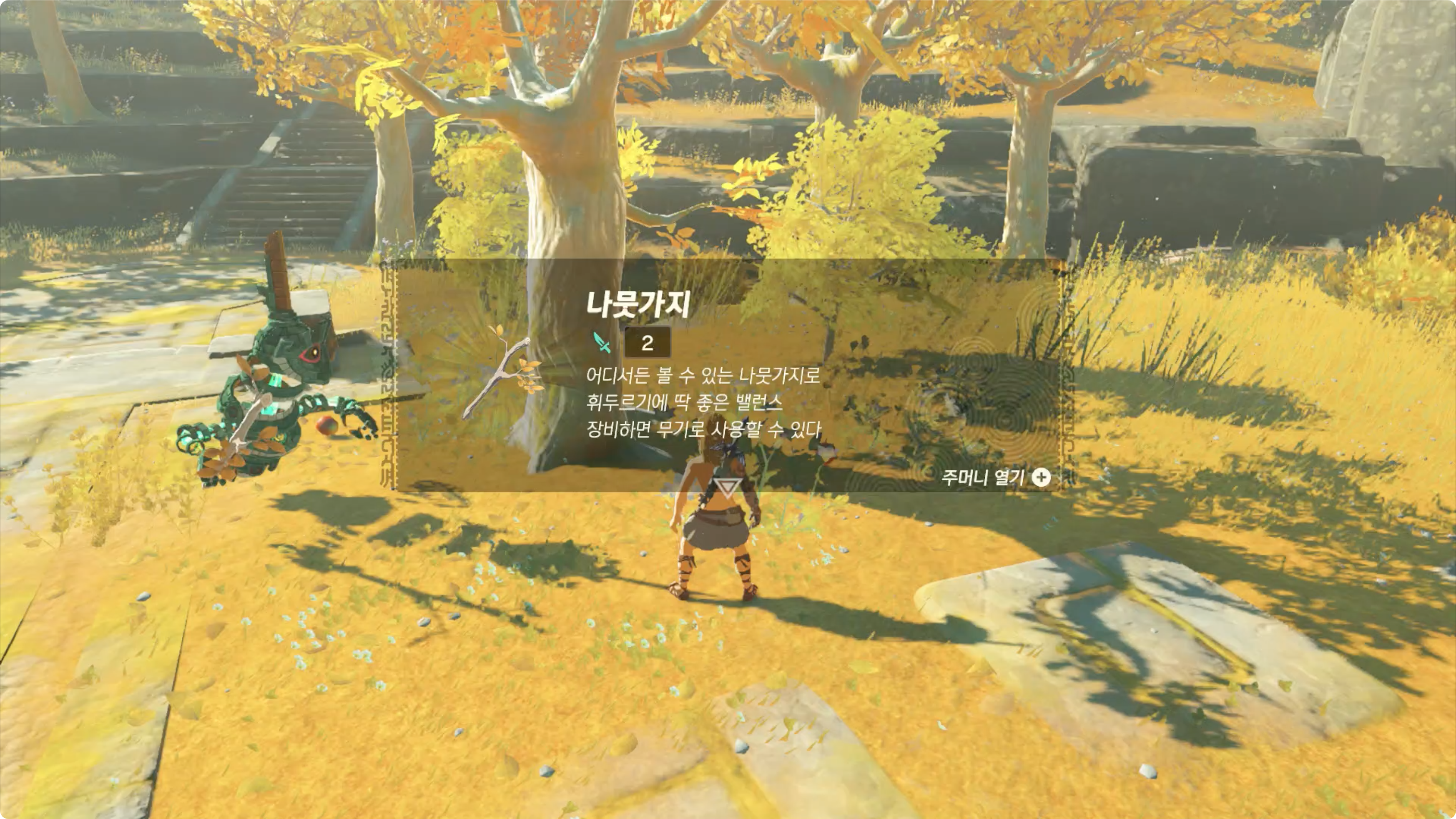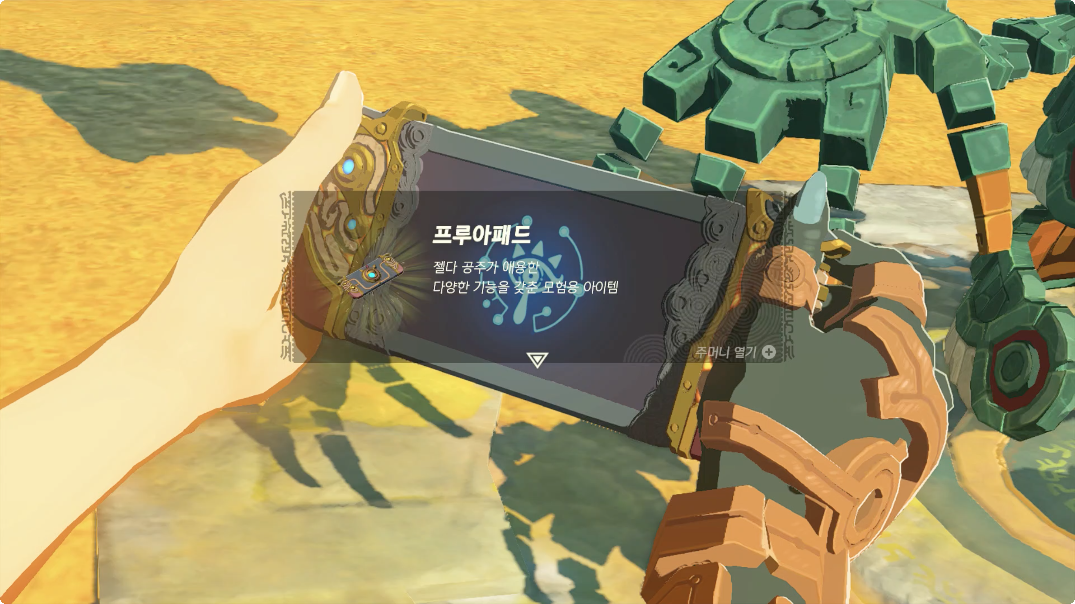 (6) 다시한번 길이 끊어진곳까지 이동한 후, 옆에 있는 골렘을 조사하면 프루아패드를 받게 되고,