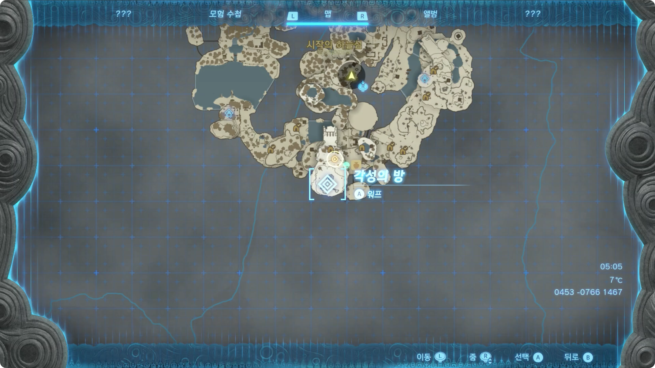 남쪽 끝에 있는 각성의 방으로 이동한 후, 목적지를 향해 이동하자.