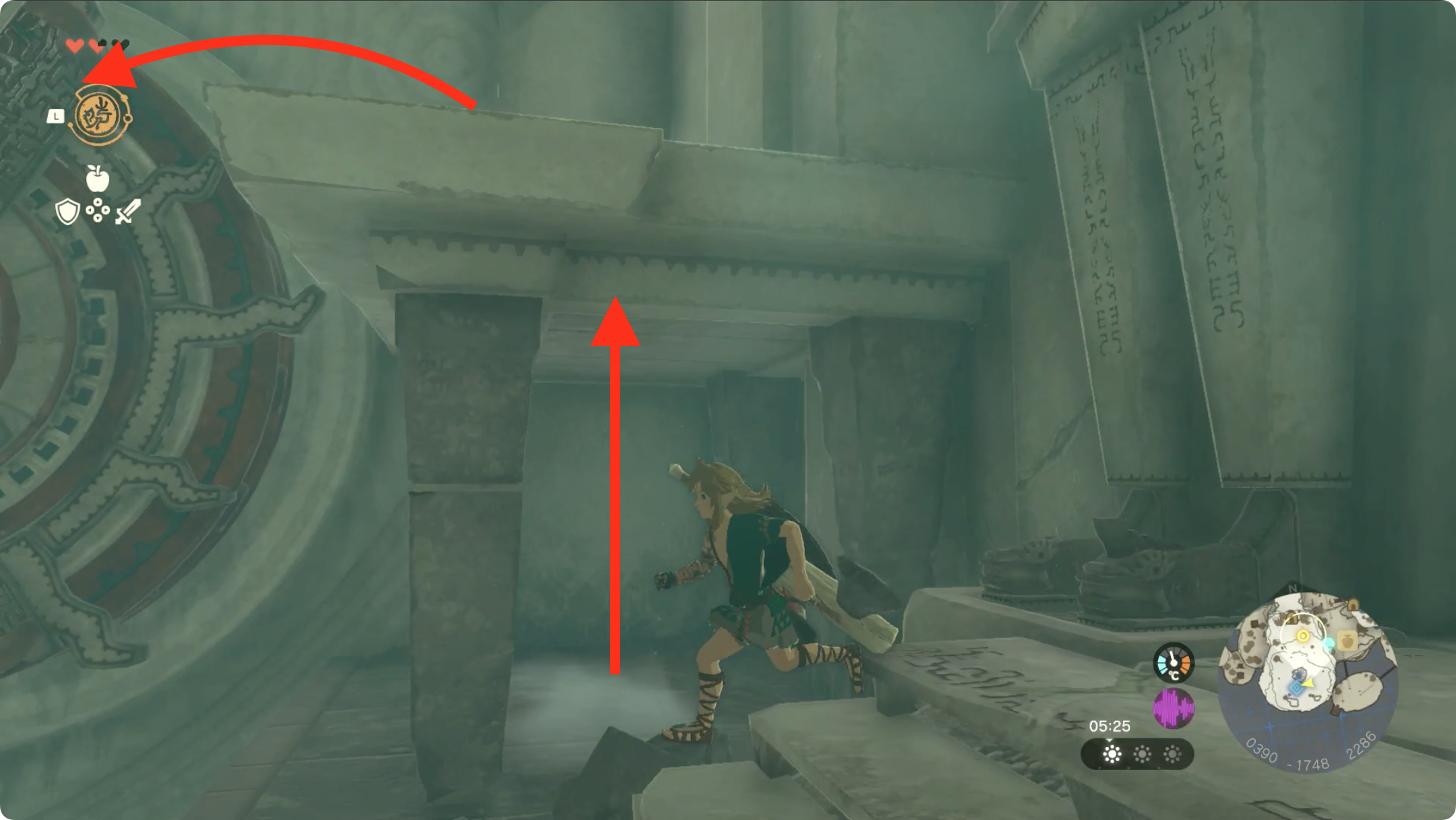 (2-5) 다시 워프한번 시간의 신전으로 이동하여 석상을 통해 생명의 그릇을 늘리면, 문을 밀어 열 수 있게 됩니다.