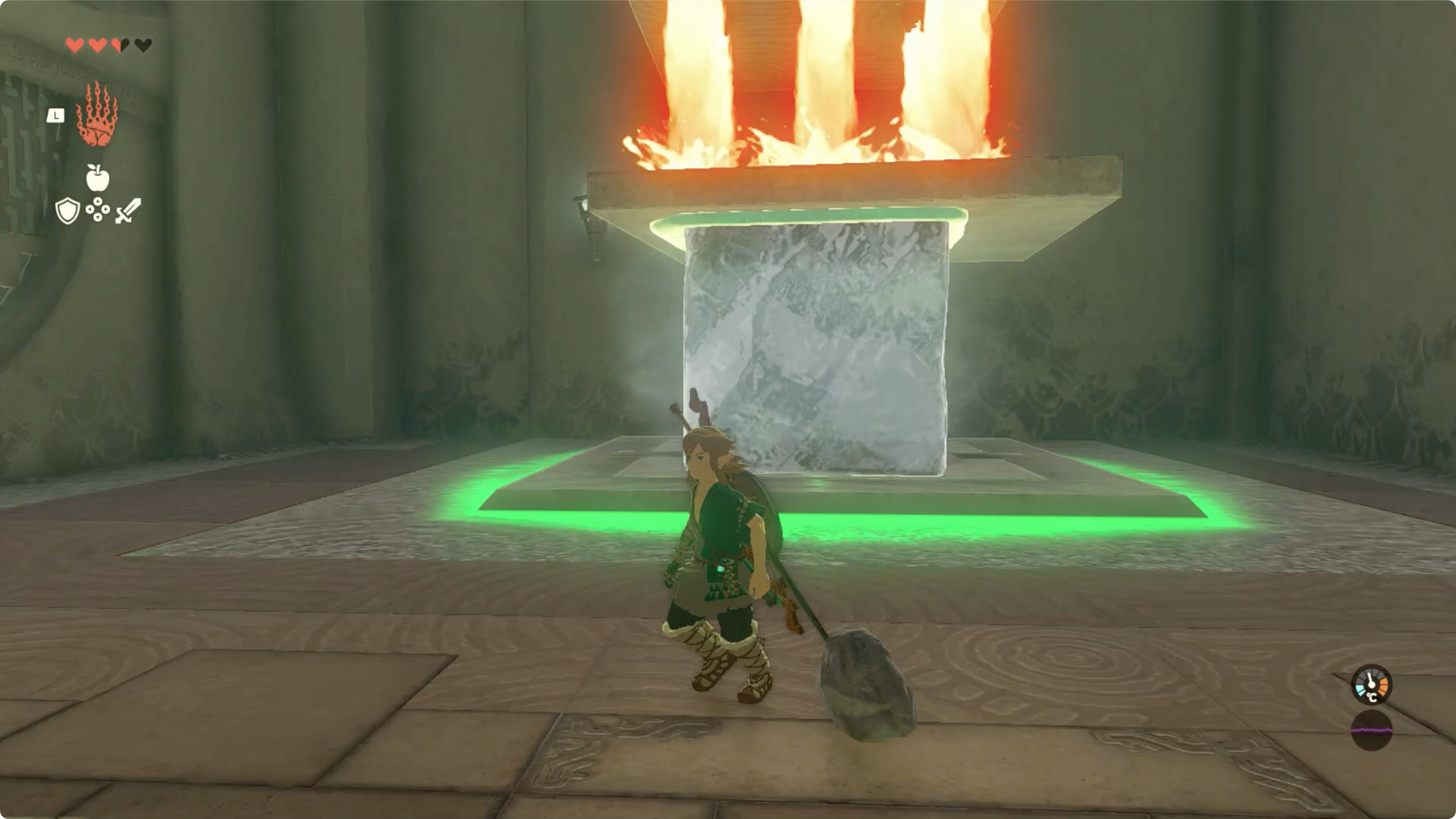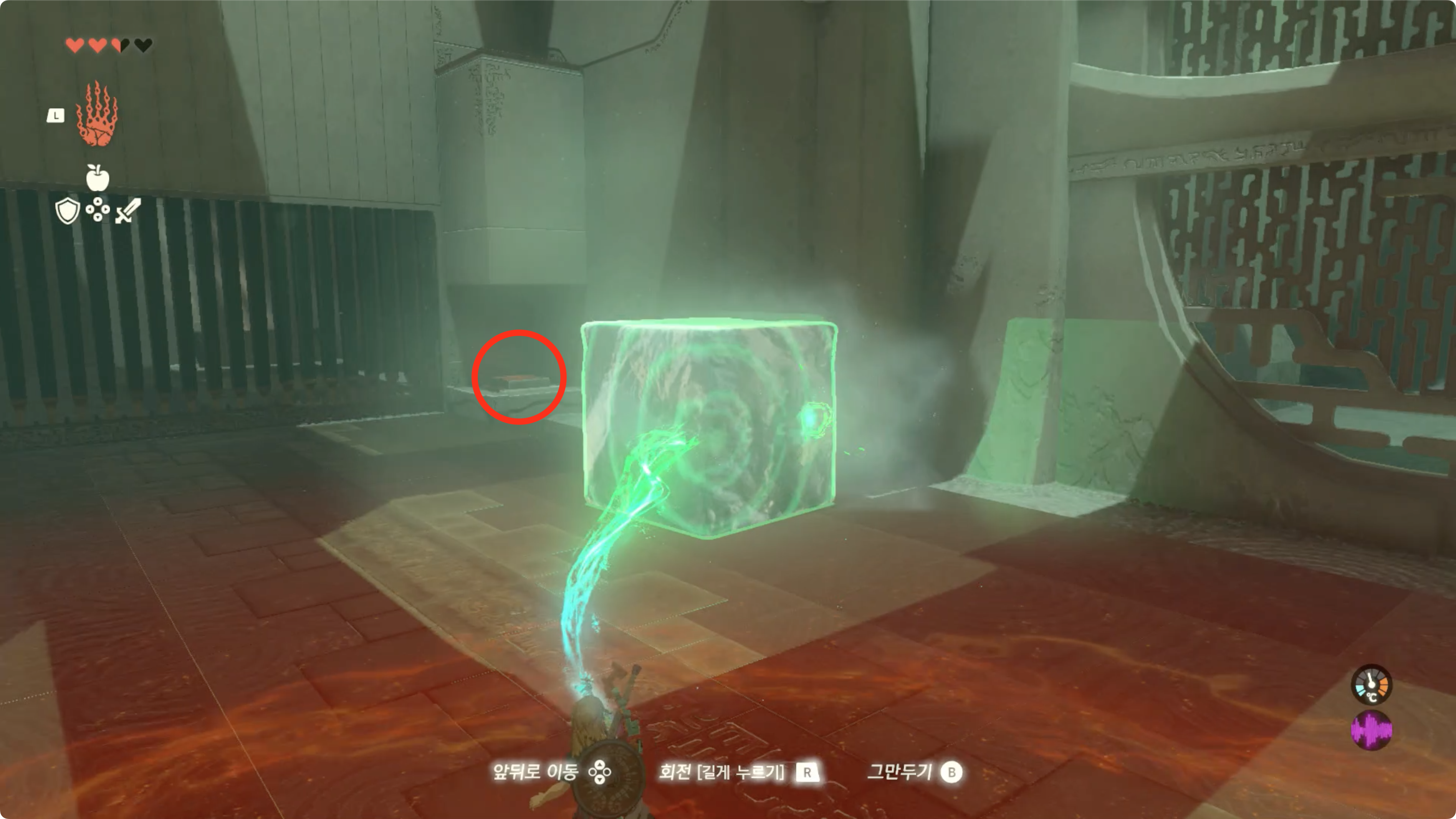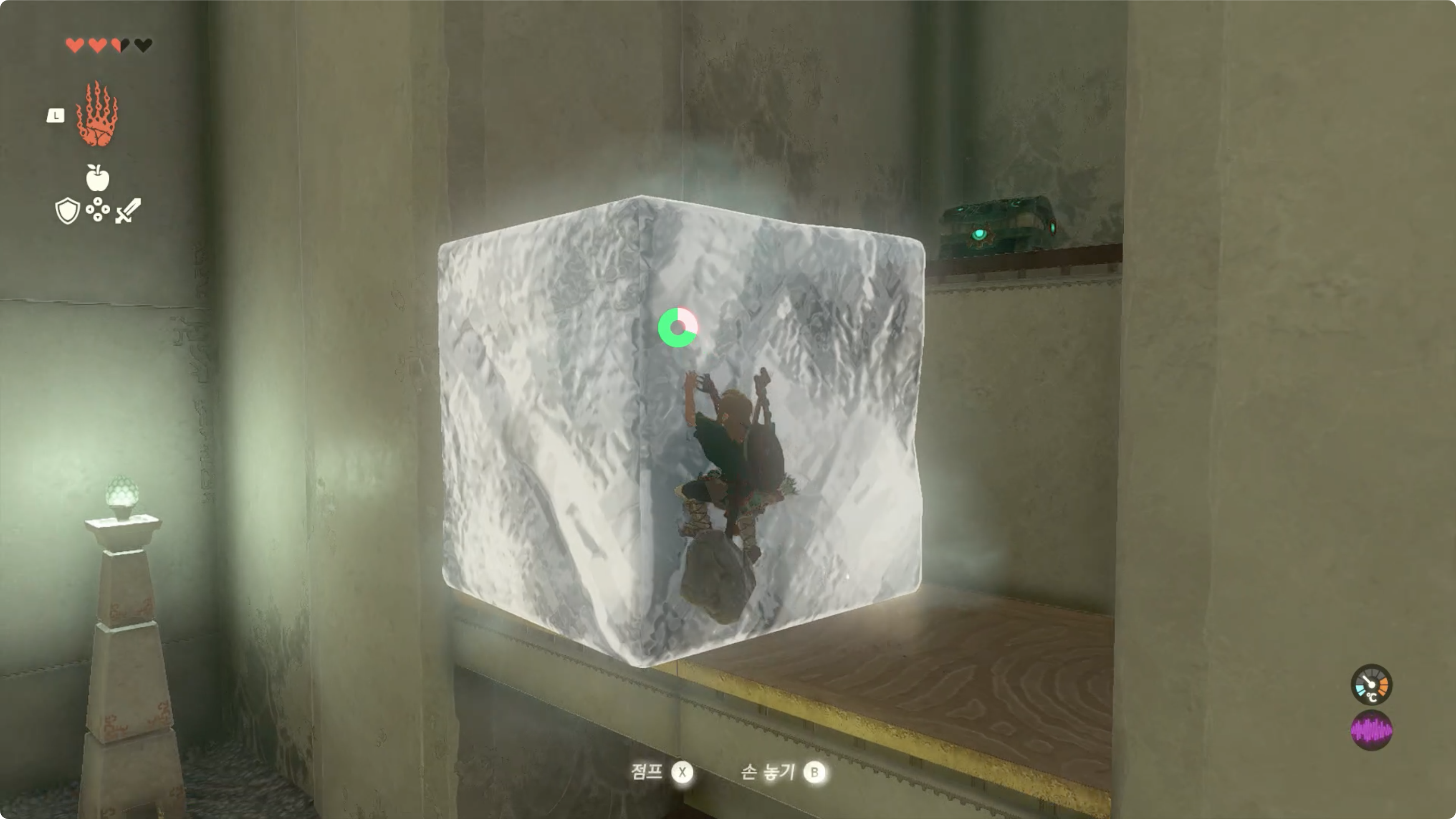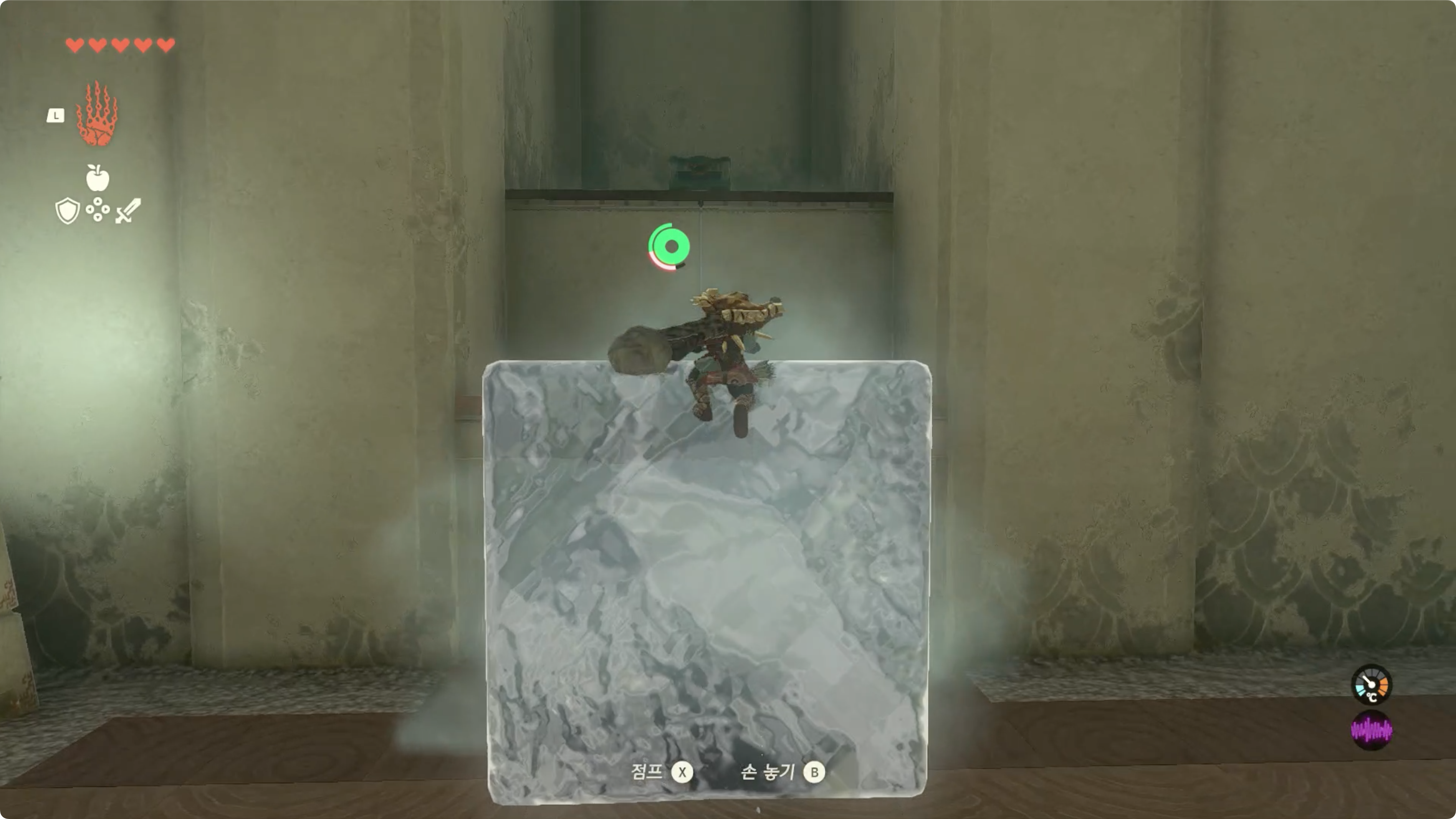 (5) 큰 얼음위에 돌판을 올려놓은 후 스위치를 눌러 사당 챌린지를 완료 할 수 있습니다.
