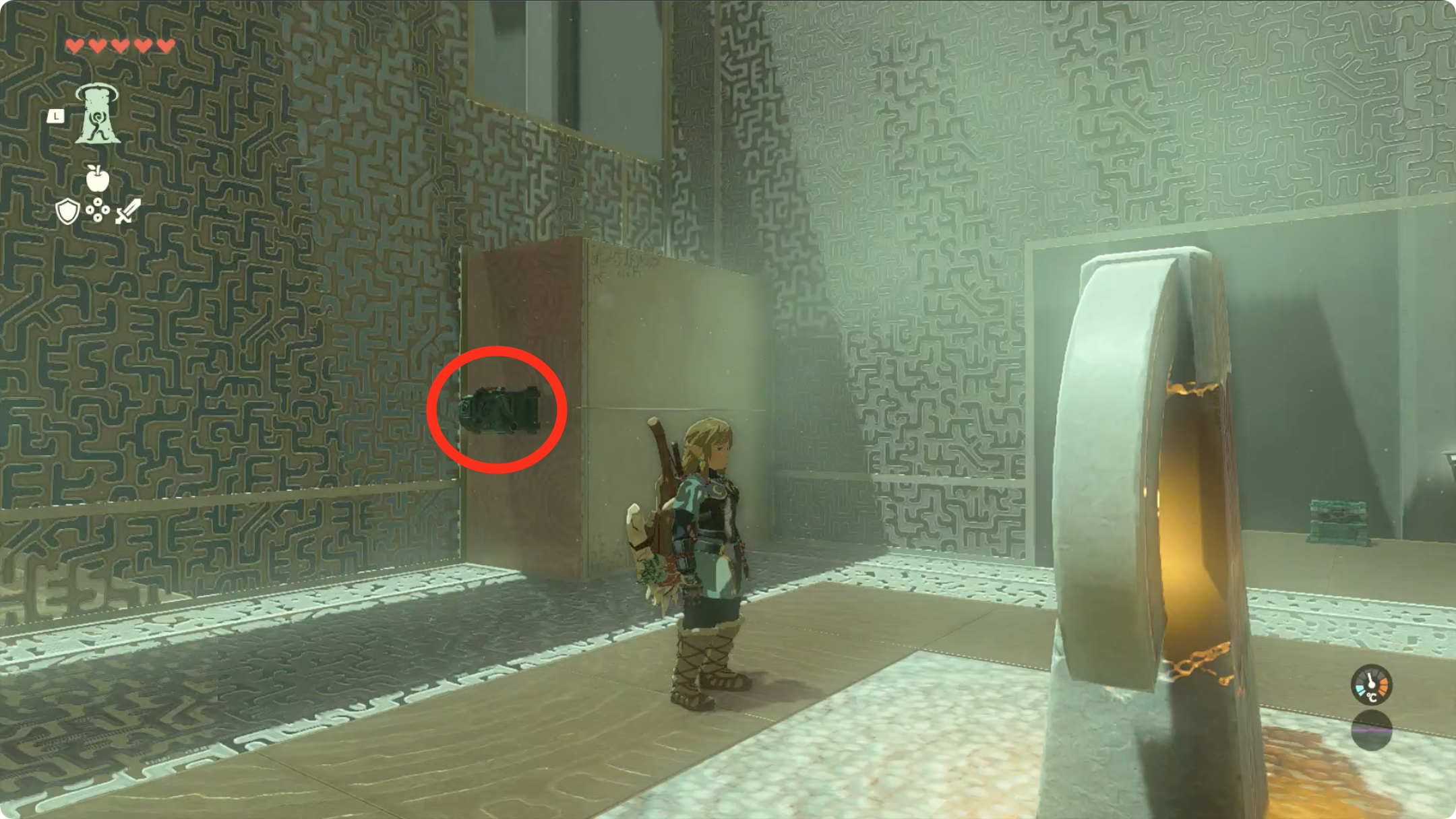 (4) 방의 중앙에 있는 기둥으로 돌아와 '2번' 회전시킵니다. 회전이 끝나면 왼쪽에 보물상자가 보이니 획득하고 다시 중앙으로 돌아옵시다