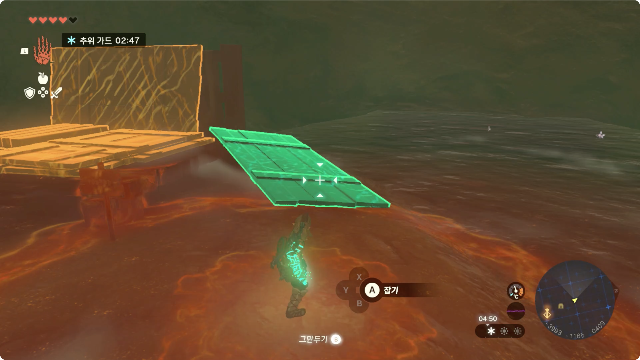 (3) 끝까지 떠내려왔다면 적당히 각도를 조절해주어 트레루프를 이용해 조망대 안으로 들어가면 조망대를 사용할 수 있게 됩니다.