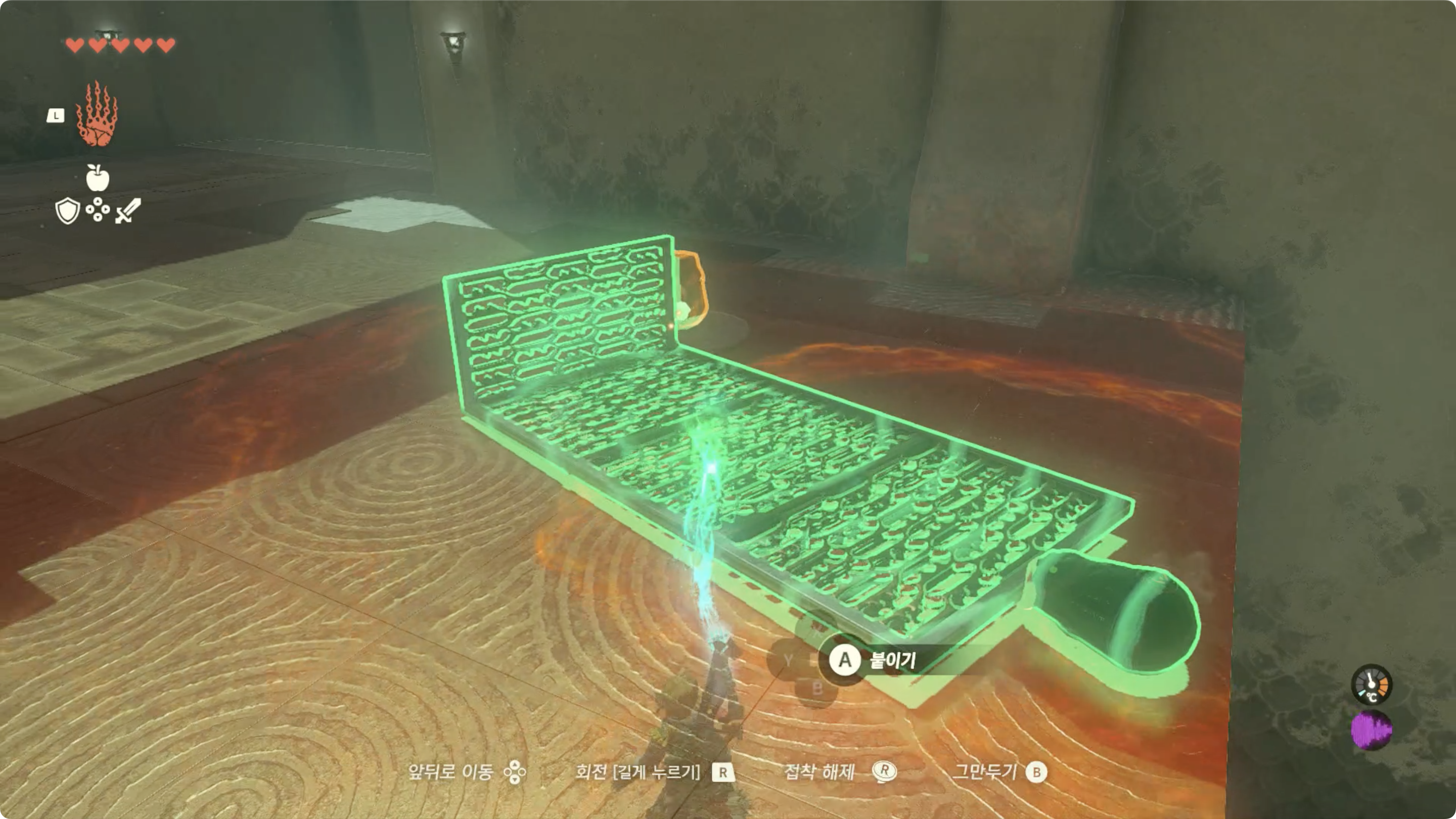 구슬을 넣었던 곳에 링크가 직접 들어가고, 활을 이용해 조나우 기어를 가동하면 건너편으로 이동할 수 있게 된다.