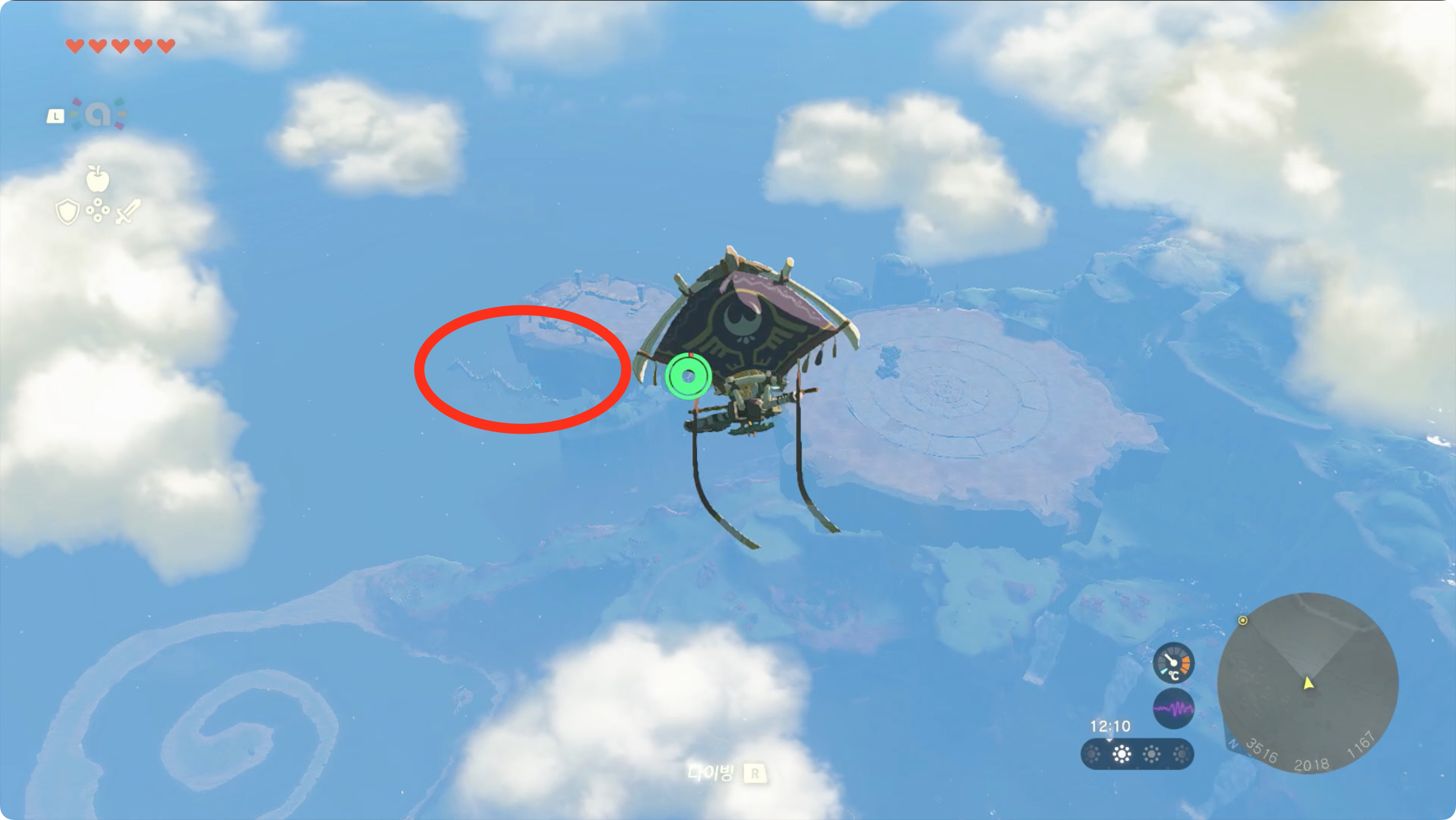 이때 바로 목적지로 향하지 말고 조금 남쪽을 바라보면 용이 상공을 날아다니기 시작합니다.