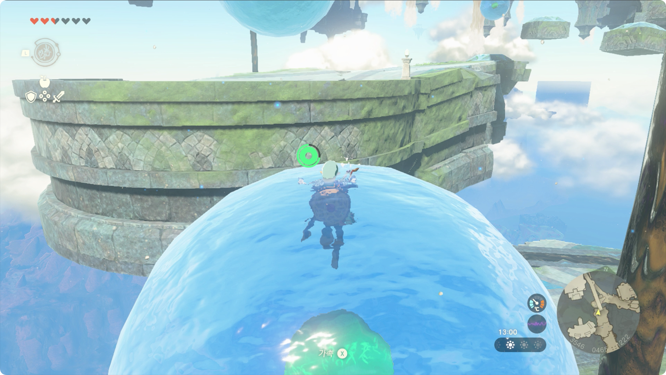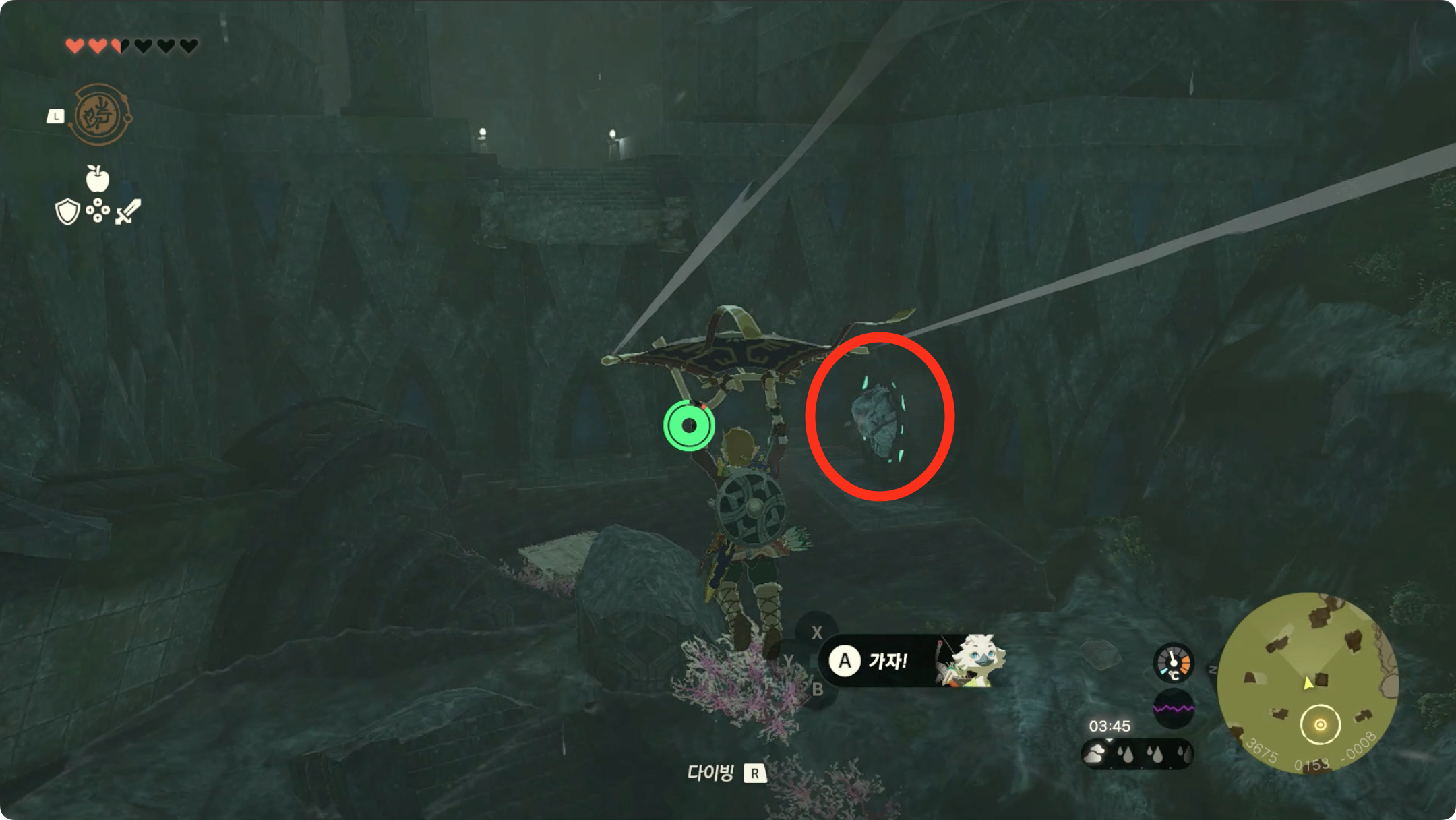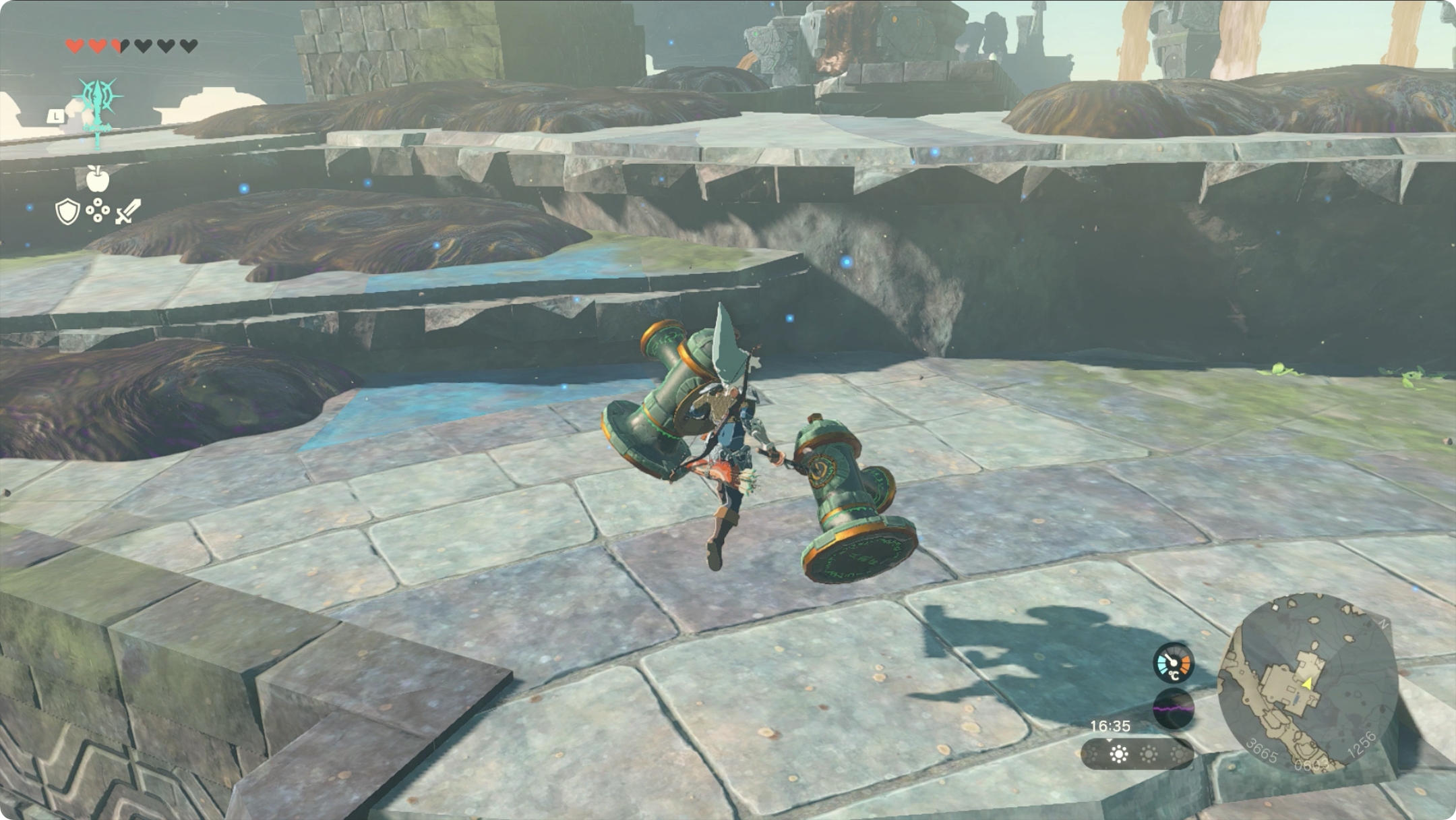 바위가 달린 무기나, 폭탄 꽃을 붙인 화살 등을 이용해 바위를 파괴하면 물이 차올라 위층으로 이동할 수 있게됩니다.