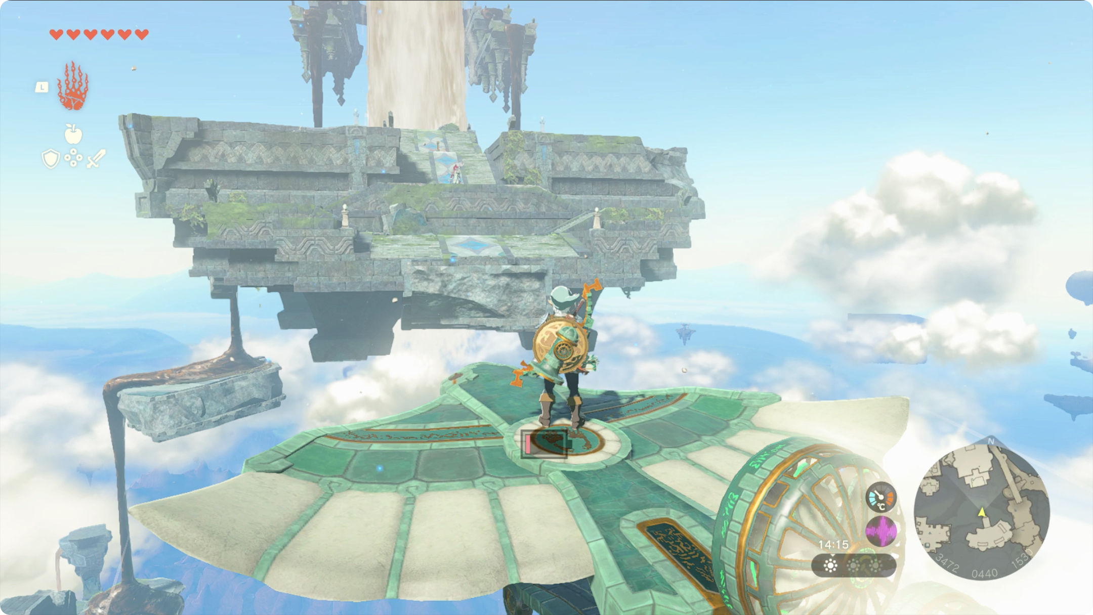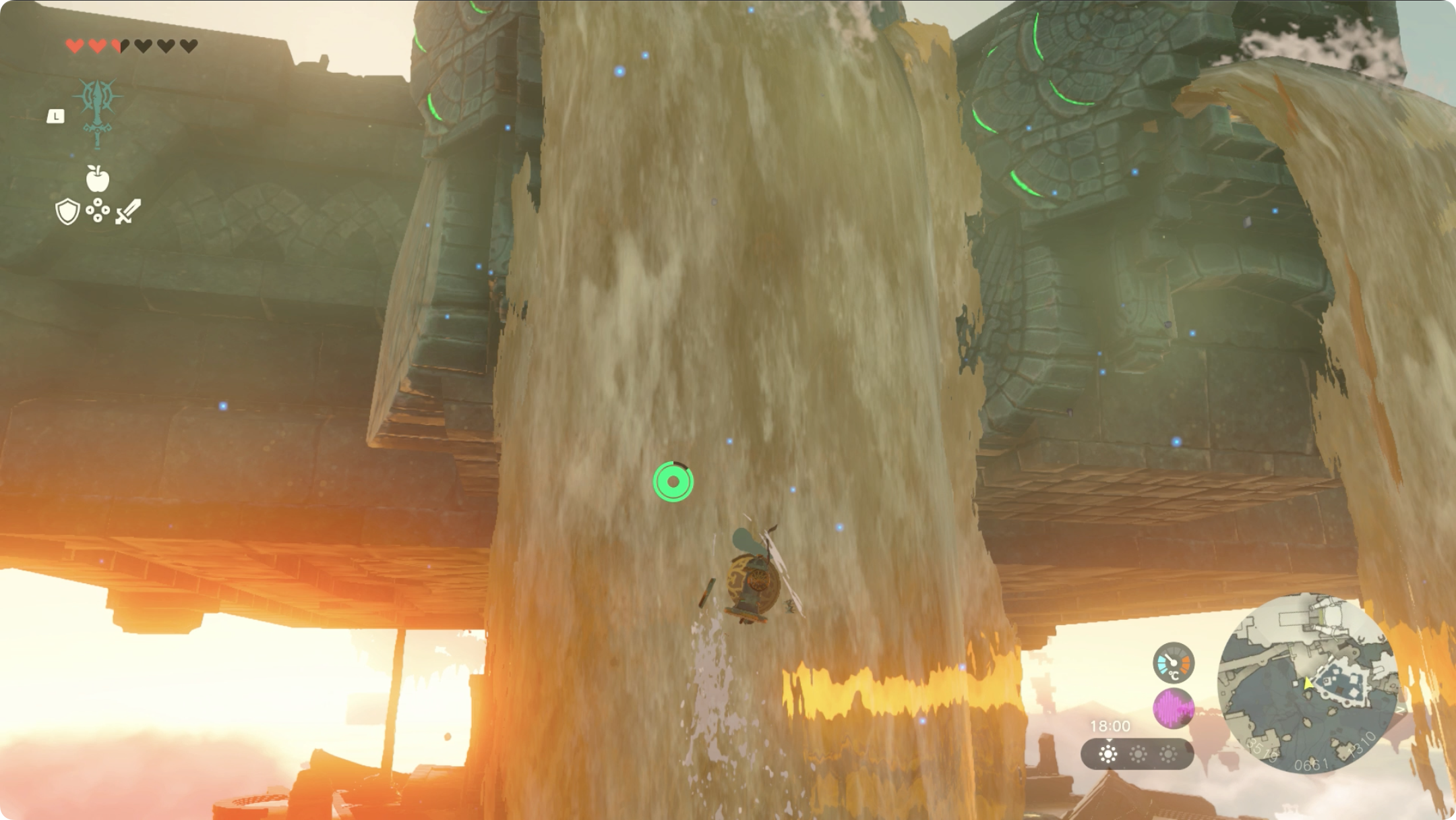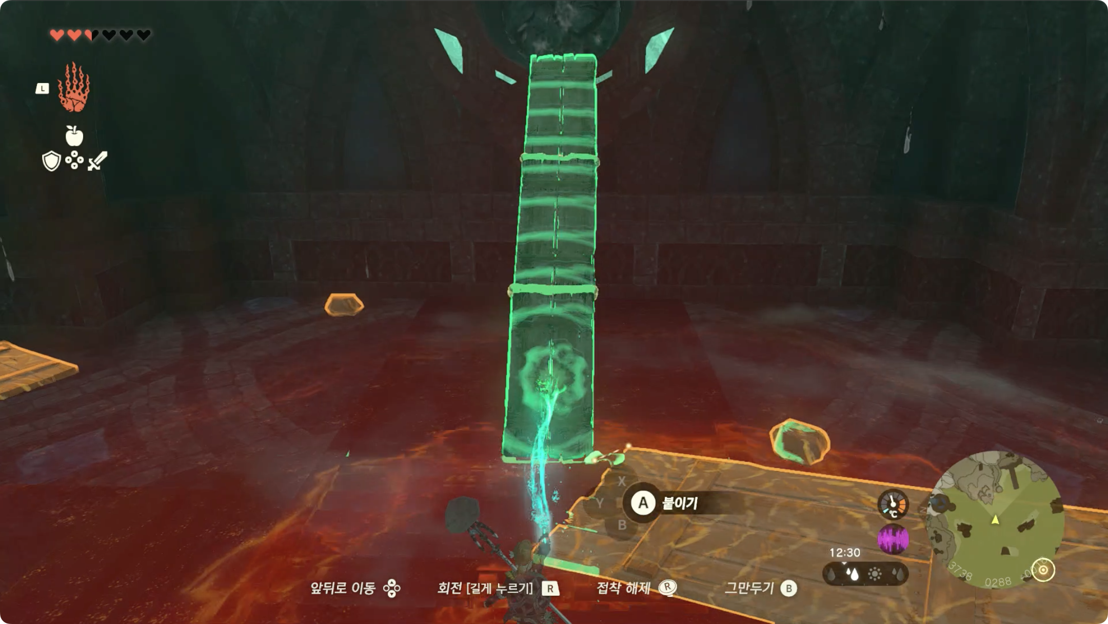 바위가 달린 무기나, 폭탄 꽃을 붙인 화살 등을 이용해 바위를 파괴하면 물이 차올라 위층으로 이동할 수 있게됩니다.