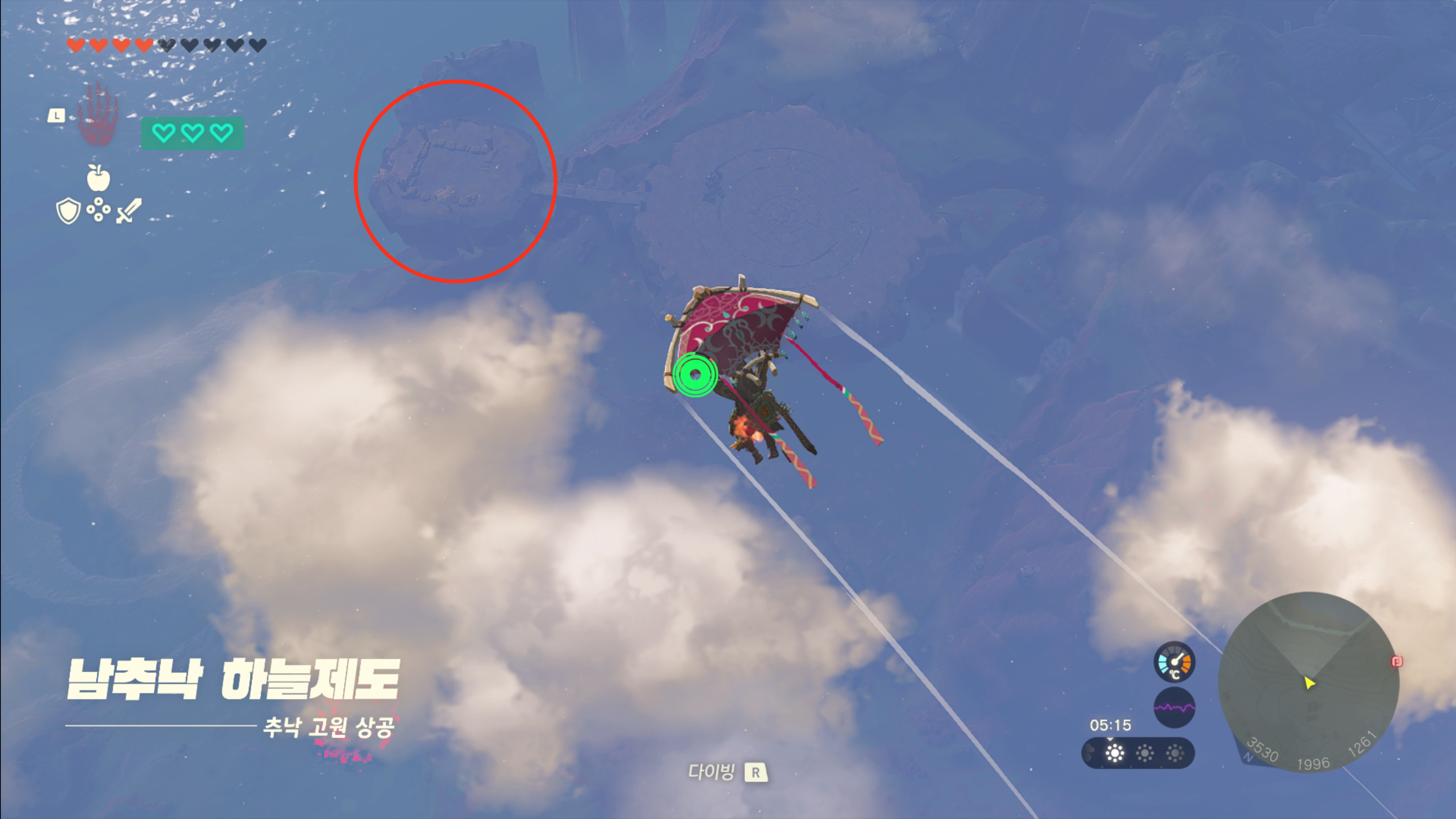 이곳에서 주변에 있는 배터리를 잔뜩 붙인 후 탈것을 타고 로미섬 상층을 향해 날아갑니다.