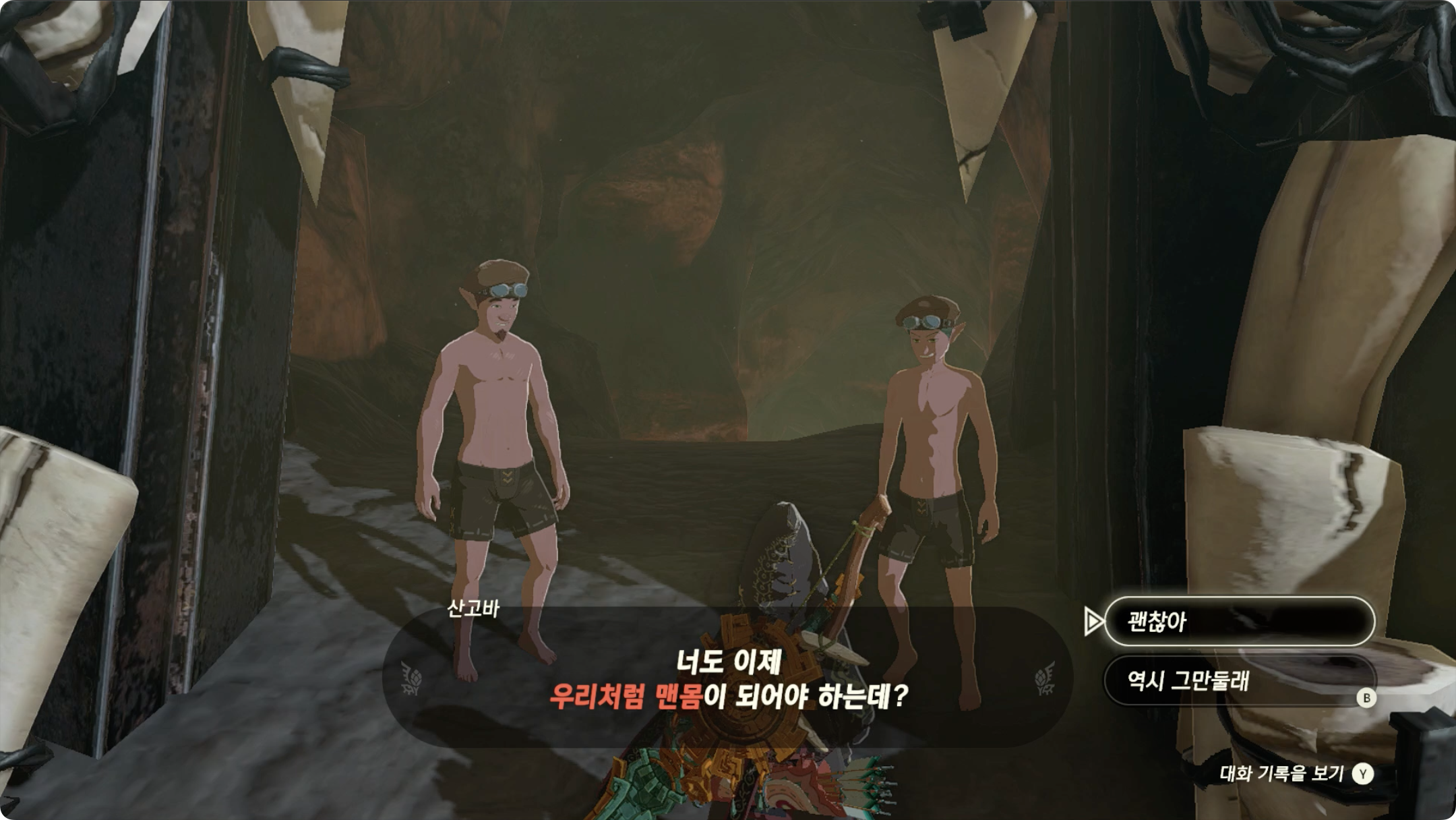 (3) 목적지(동굴)로 다가가면 디란타와 산고바가 있다. 맨몸으로 동굴에 도전한다를 선택