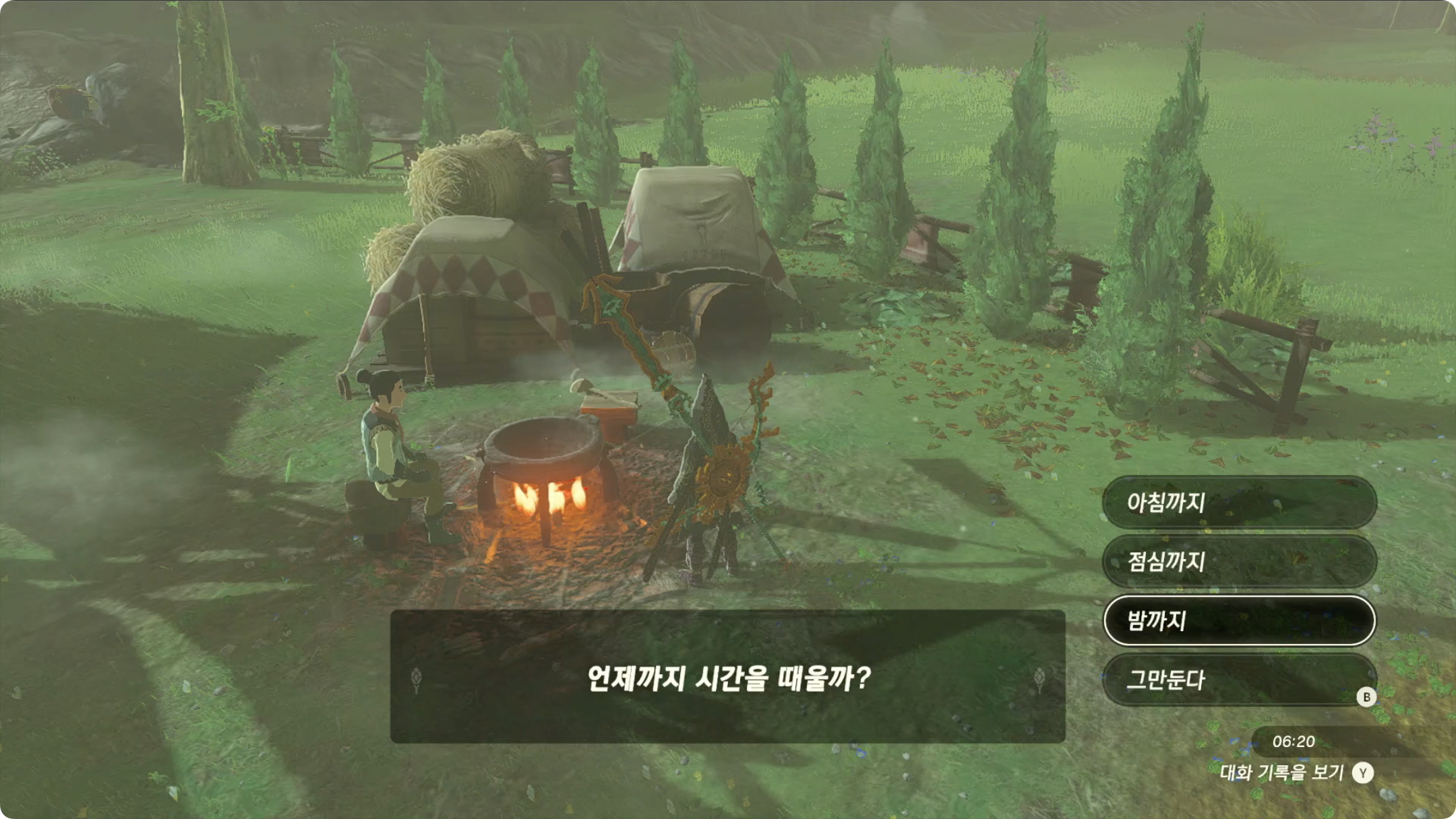 (2) 모닥불 등에서 '밤까지' 시간을 때웁니다