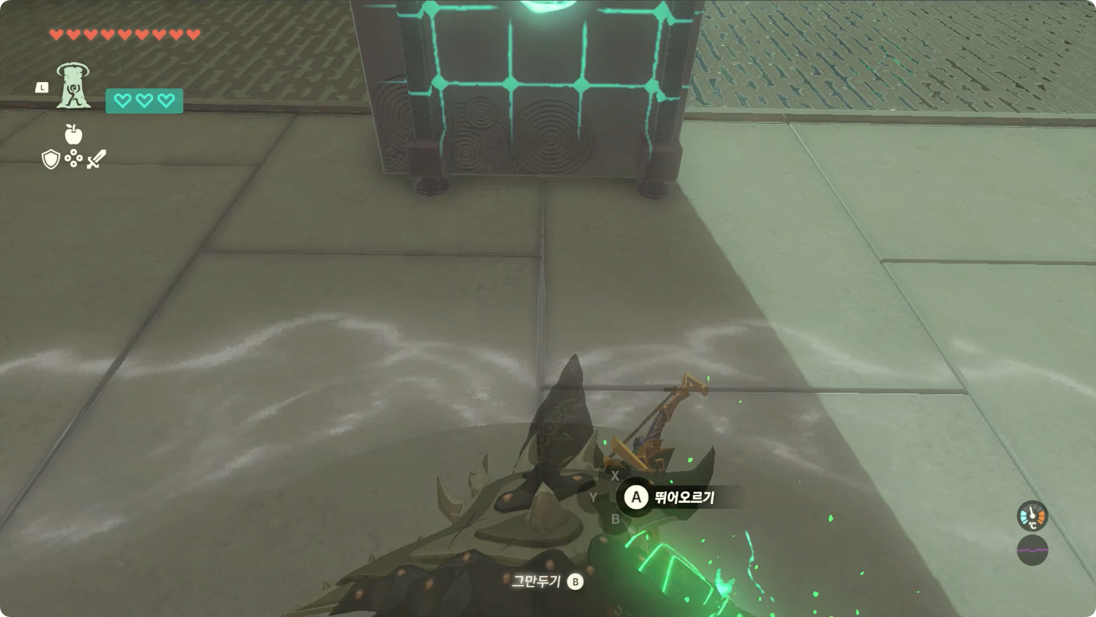 그냥 가볍게 석판 하나를 '울트라 핸드'로 위로 들어올린 후 바닥에 내려놓고, 그 위로 올라가서 리버 레코를 사용하면 쉽게 올라갈 수 있습니다.