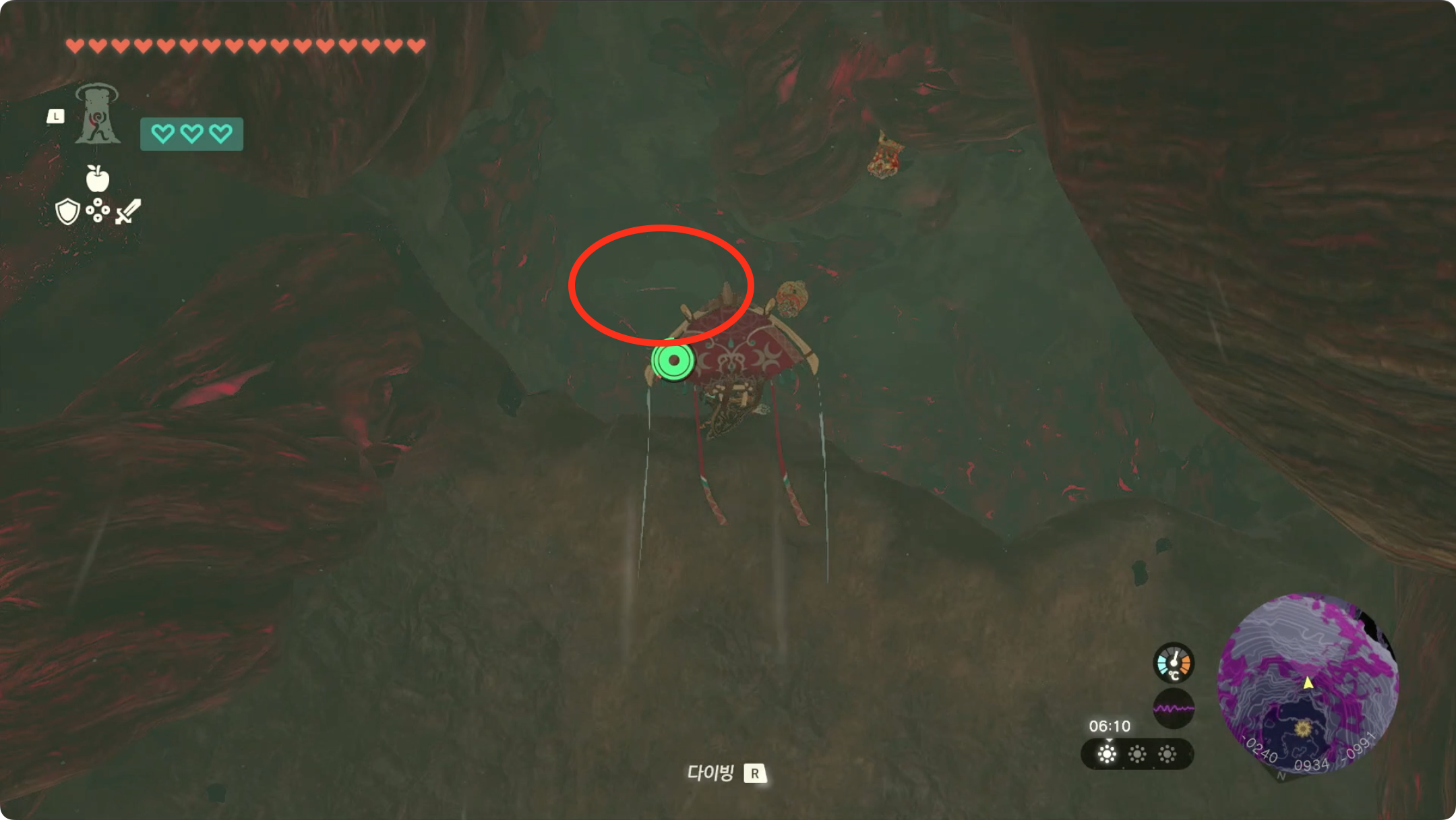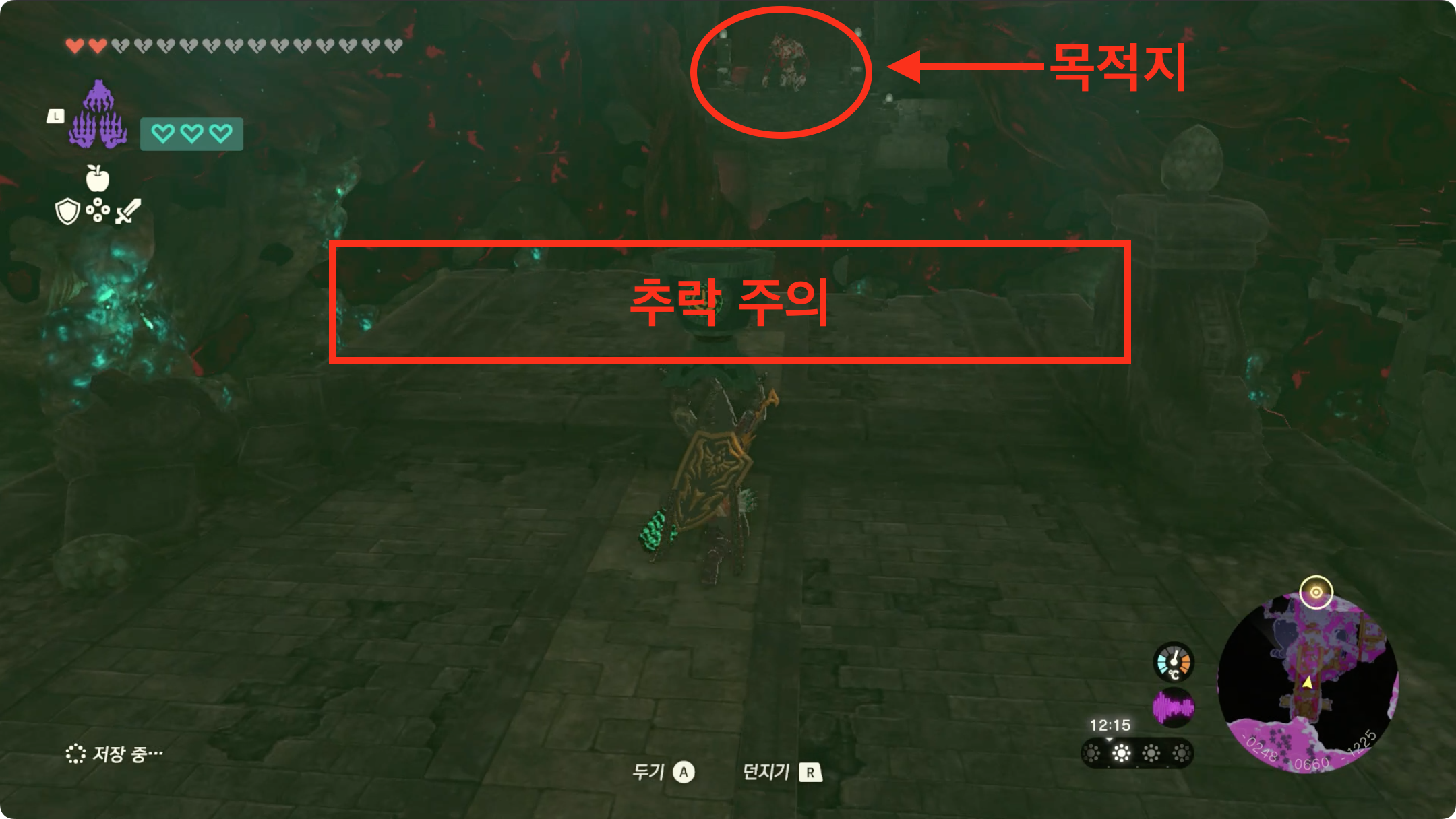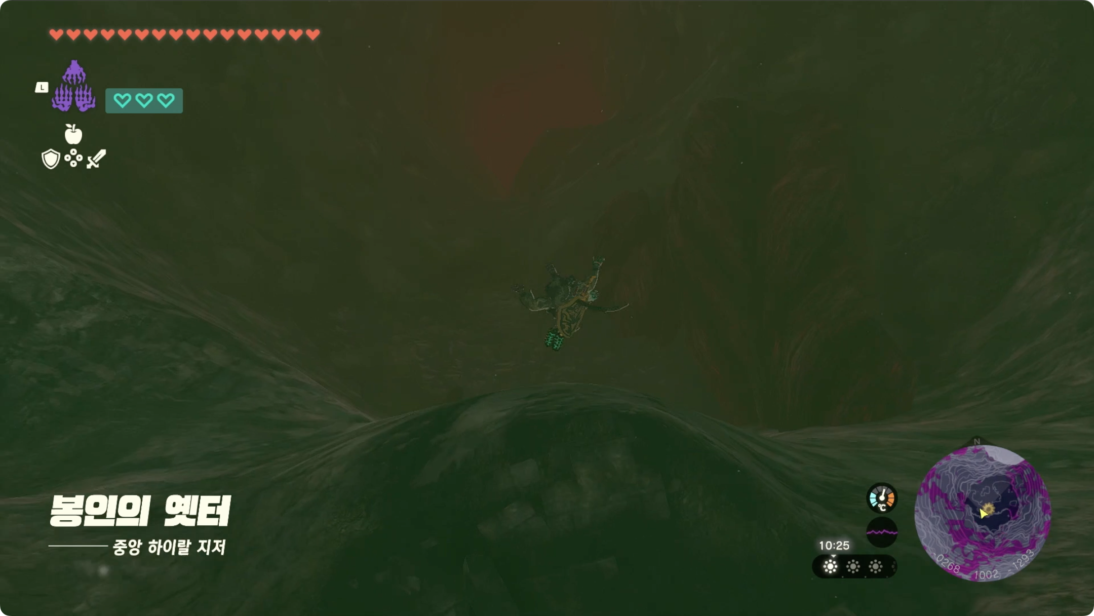 (1) 하이랄 성의 깊은 굴로 떨어진 후 지저를 향해 내려갑니다.