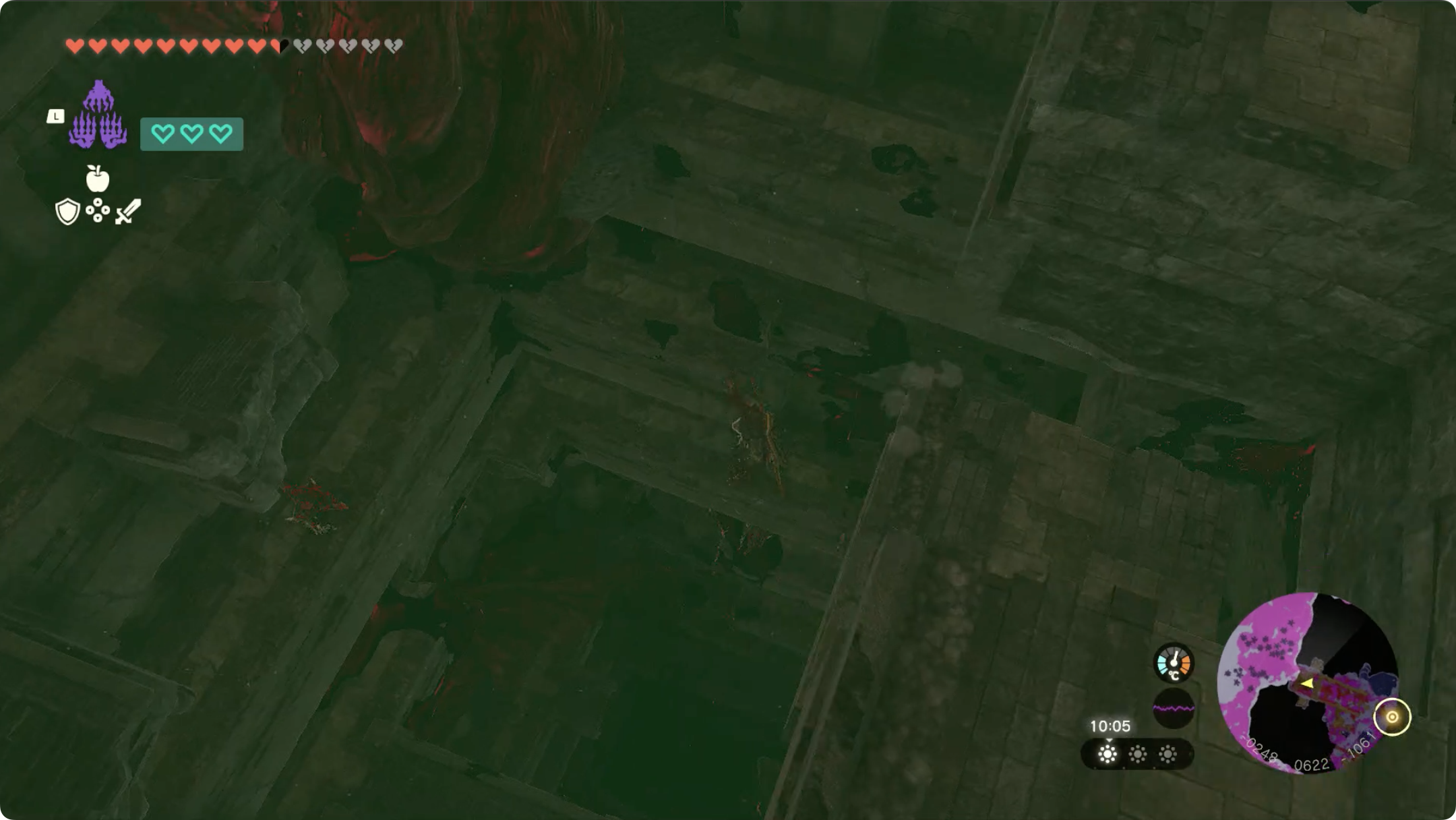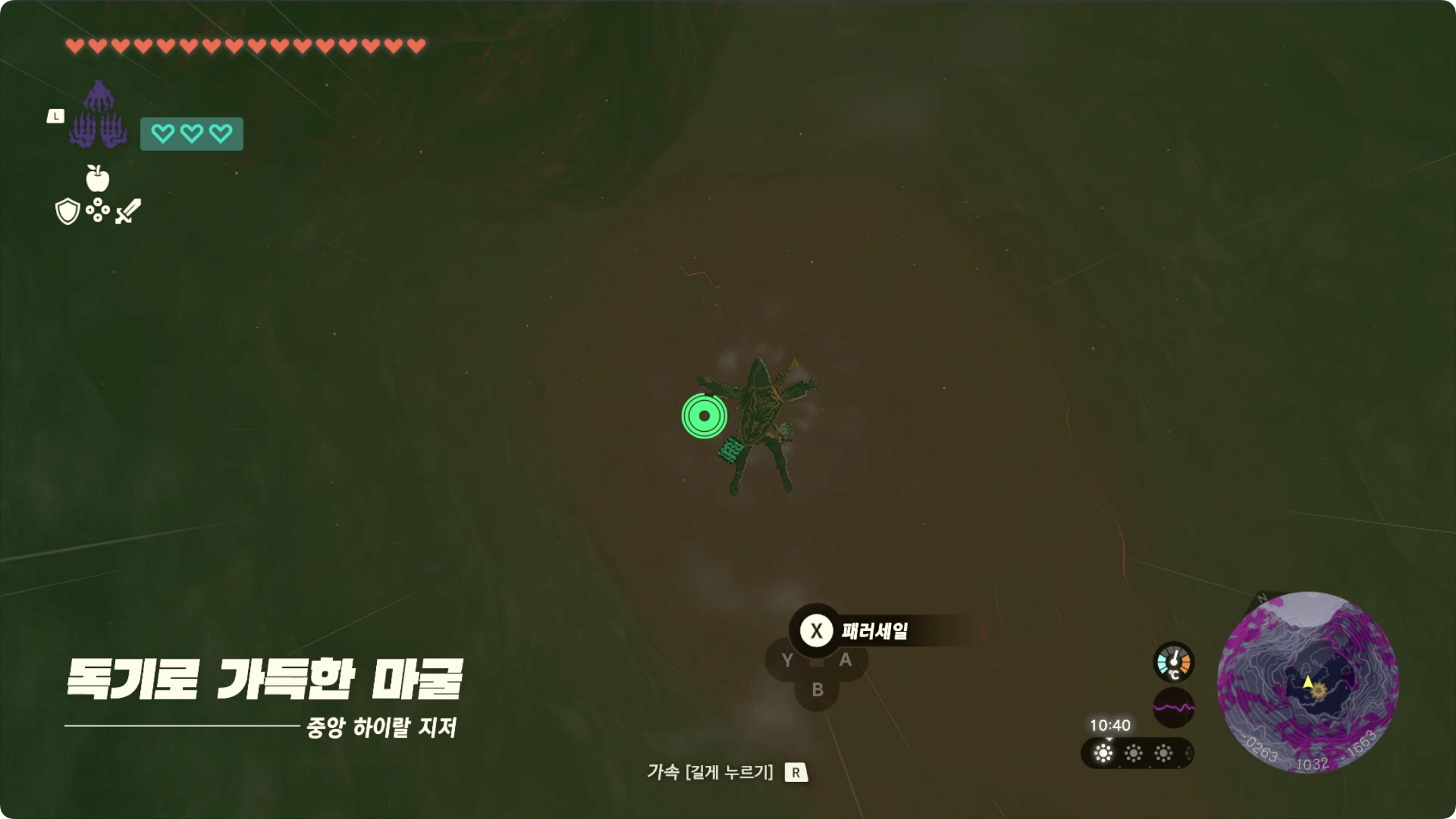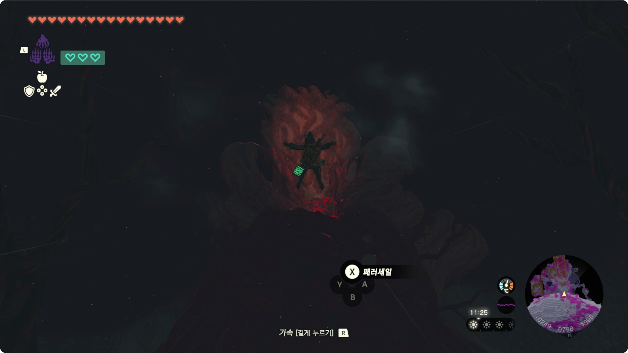 (1) 하이랄 성의 깊은 굴로 떨어진 후 지저를 향해 내려갑니다.