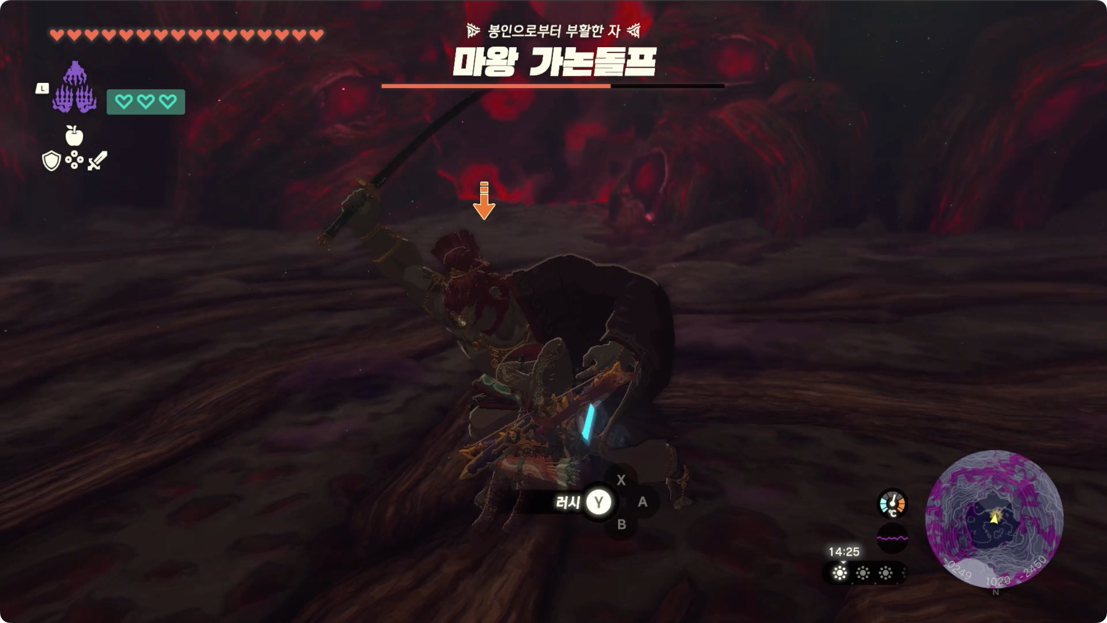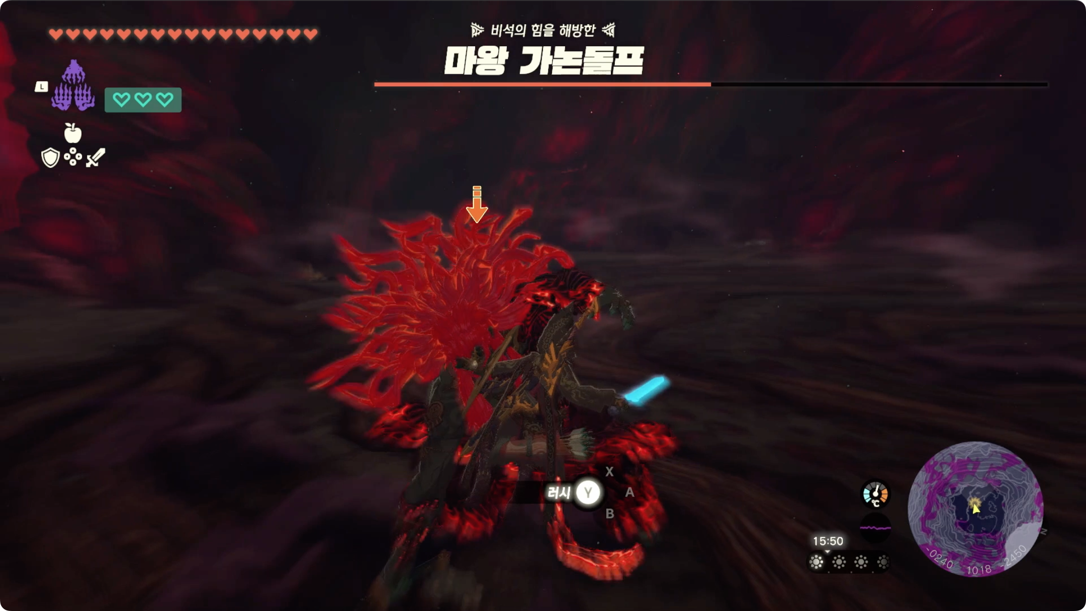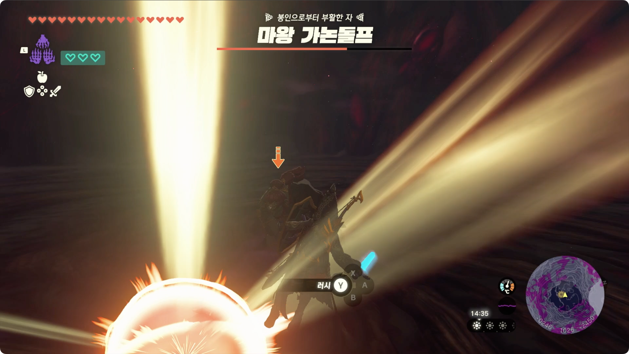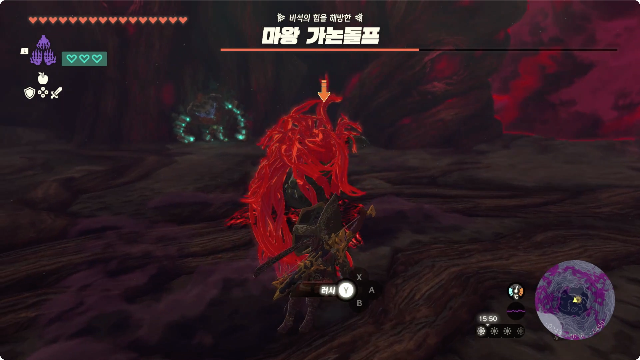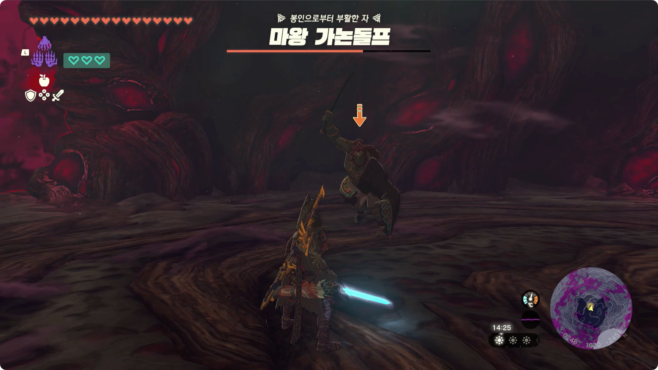 체력이 절반 이하가 되면 마왕 가논돌프와의 1:1 전투가 다시 이어집니다.