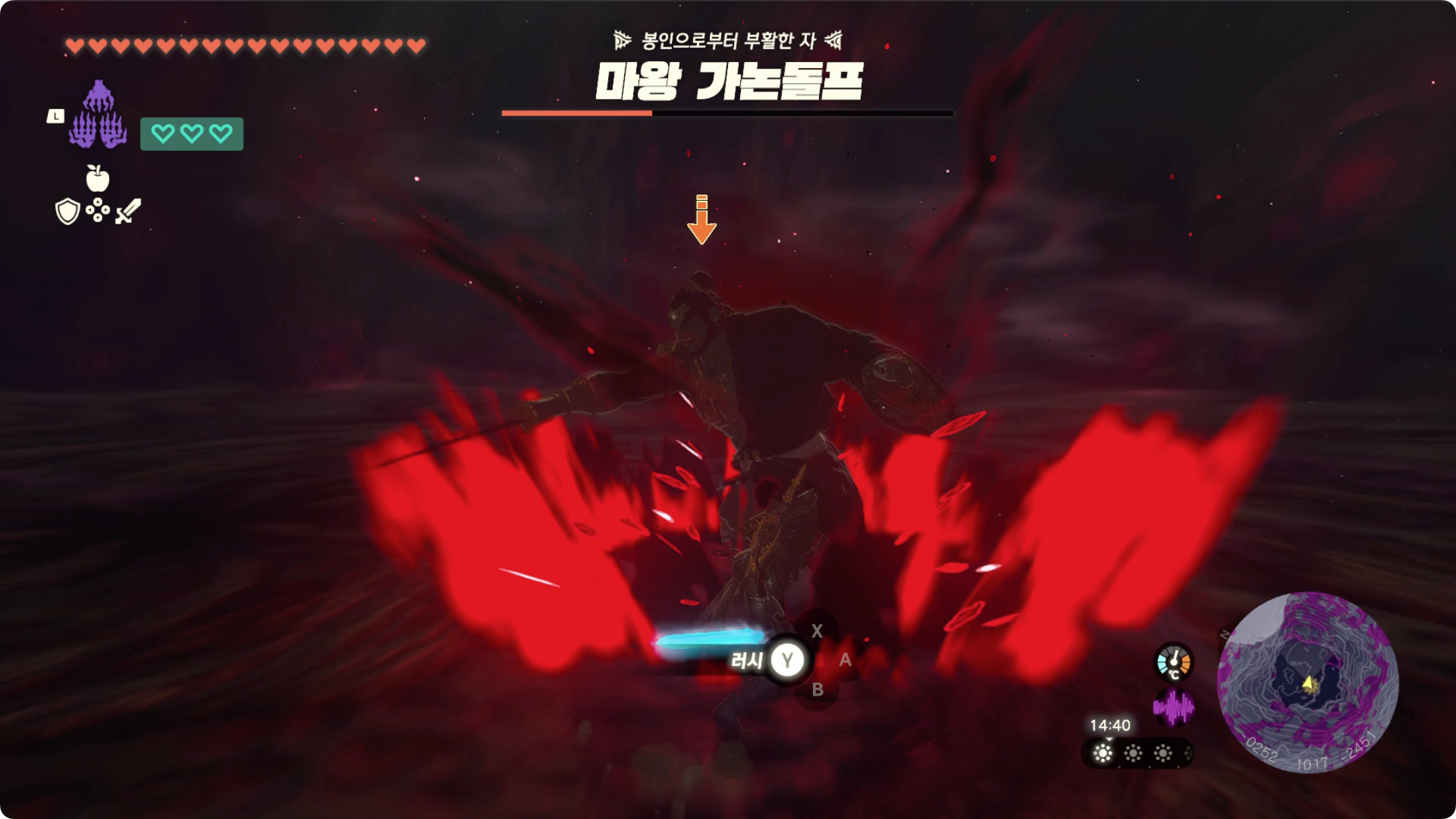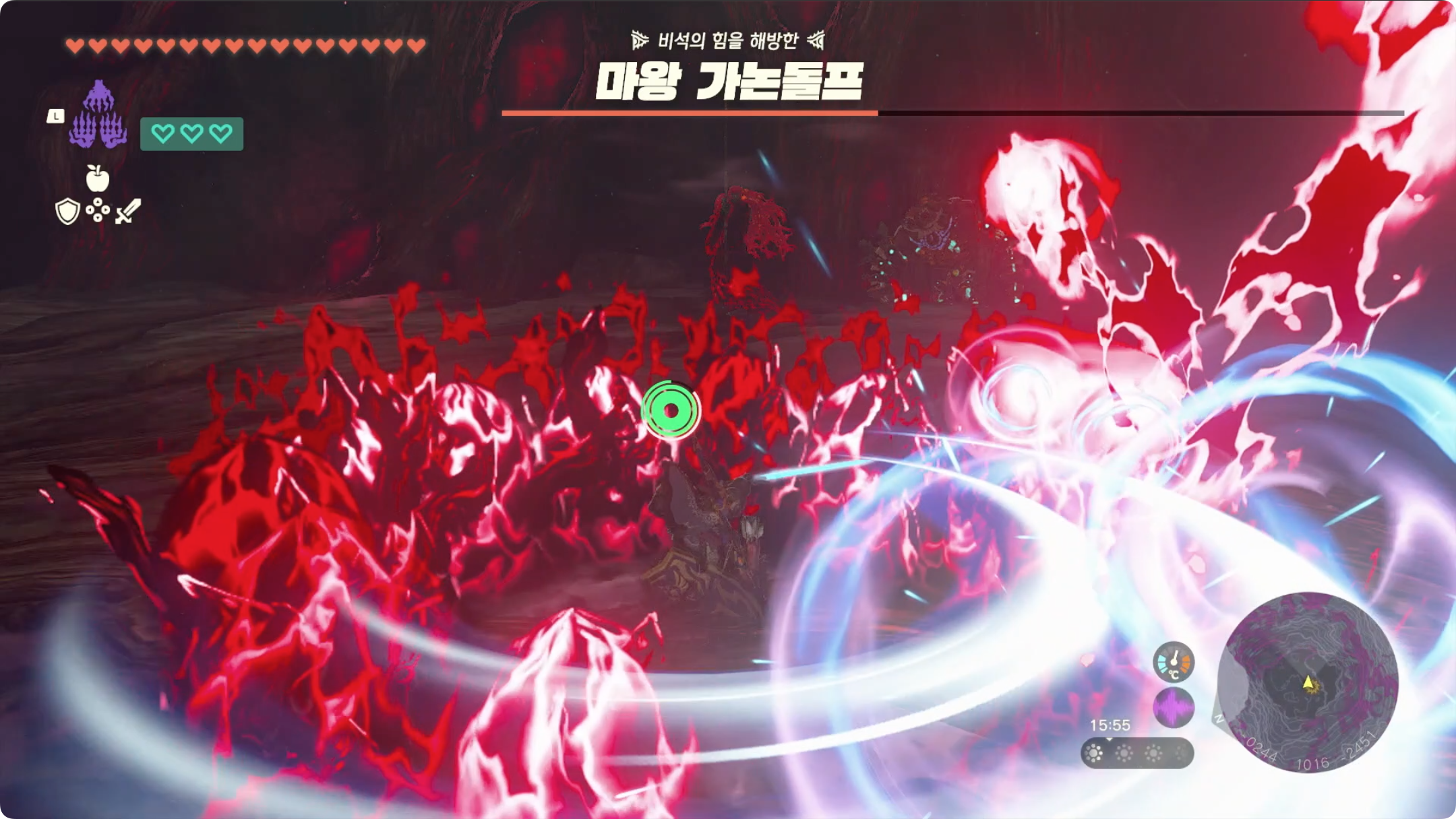 이전과 공격 패턴은 여전히 비슷하지만, 이제는 확정적으로 첫번째 공격은 가논돌프도 회피를 하게 됩니다.