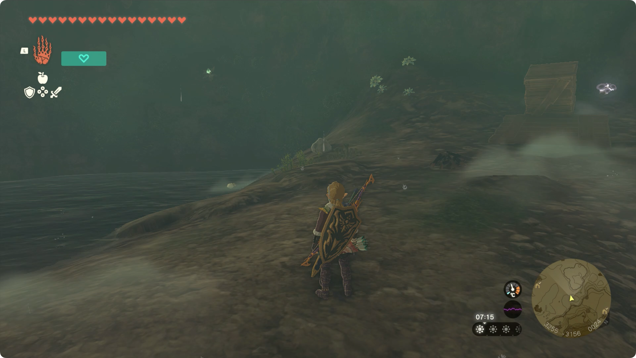 (2) 동굴을 진행하다보면 호수가 있고 나무판자와 상자가 있는곳에 도달하게 됩니다.