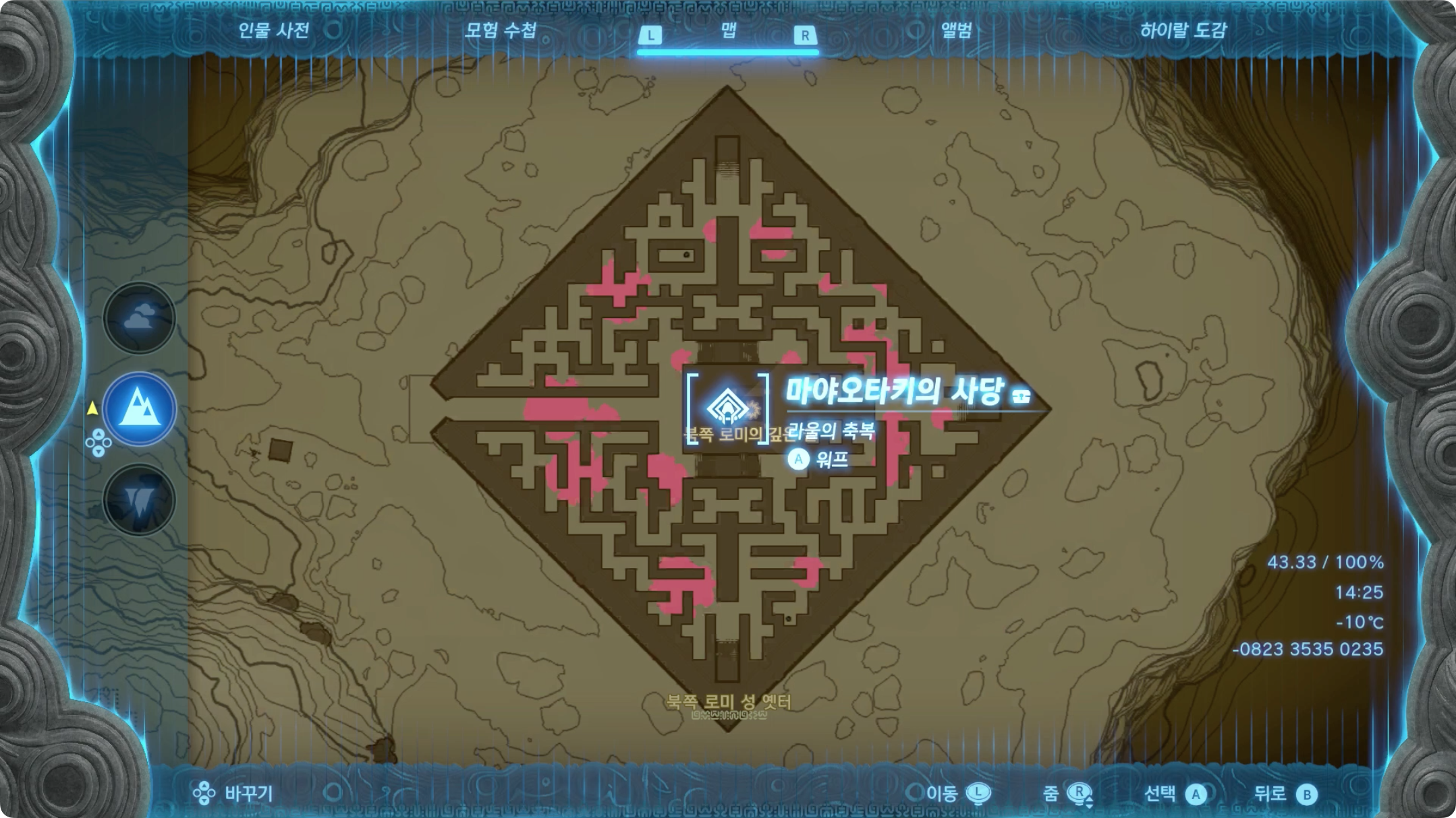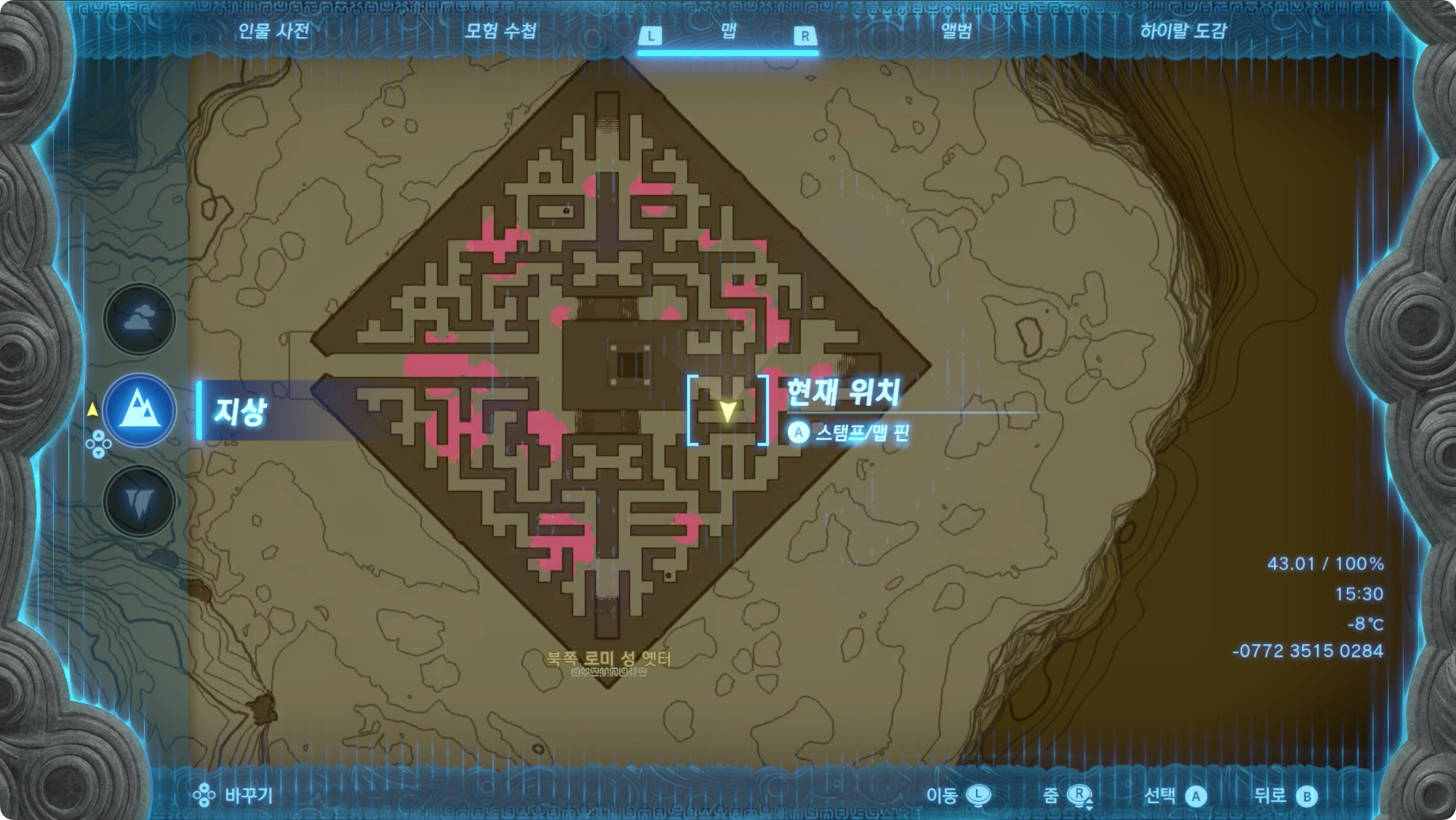 미로의 벽을 오르거나 하늘로도 이동할 수 있기에 미로 위로 올라갔다면 중앙에서 남동쪽 아래로 내려가면 중앙으로 향하는 입구를 발견할 수 있습니다.