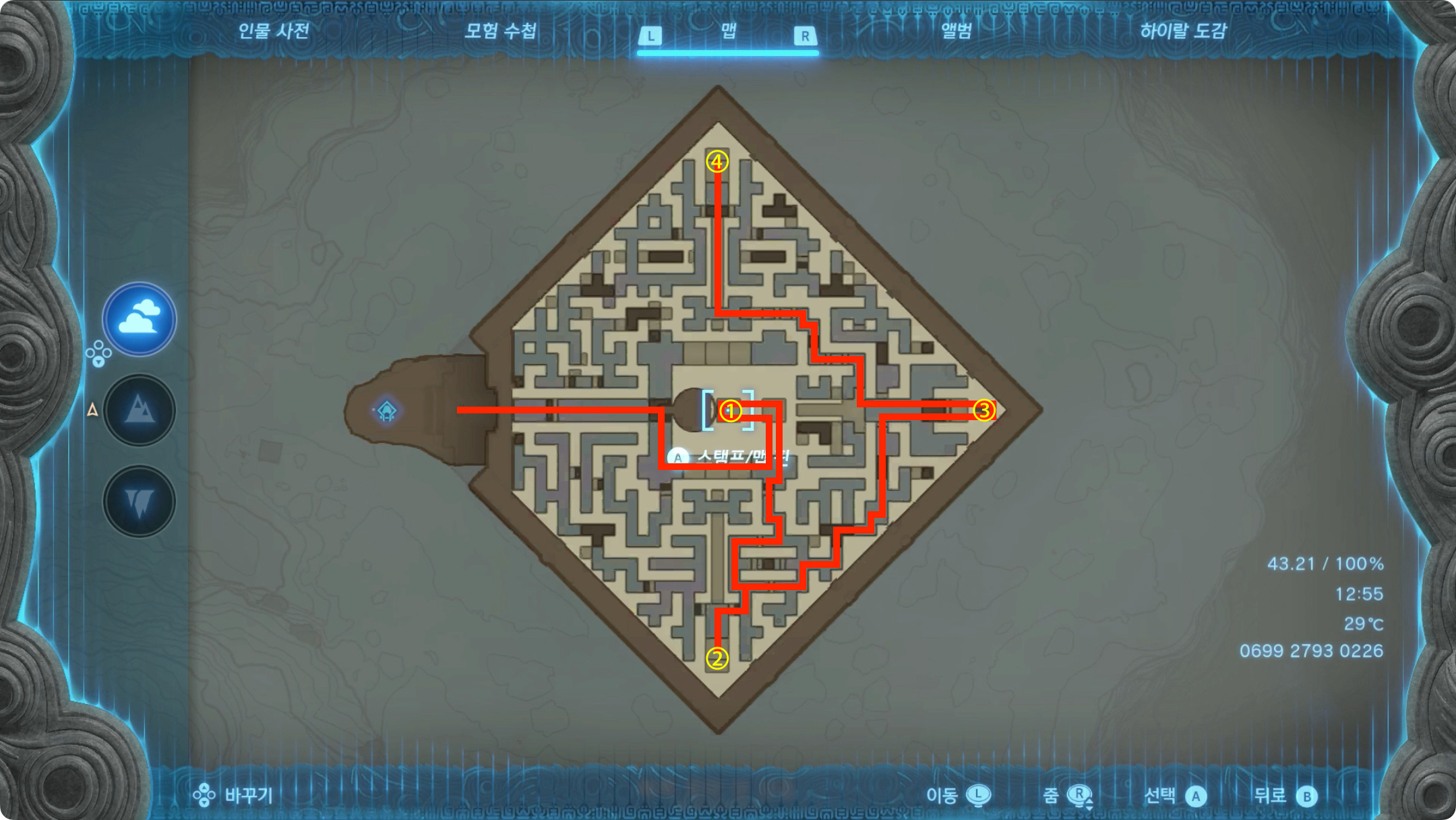 ※ 북쪽 로미 성 옛터의 중앙으로 오는 방법은 마야오타키의 사당을 찾아오는 방법과 동일합니다