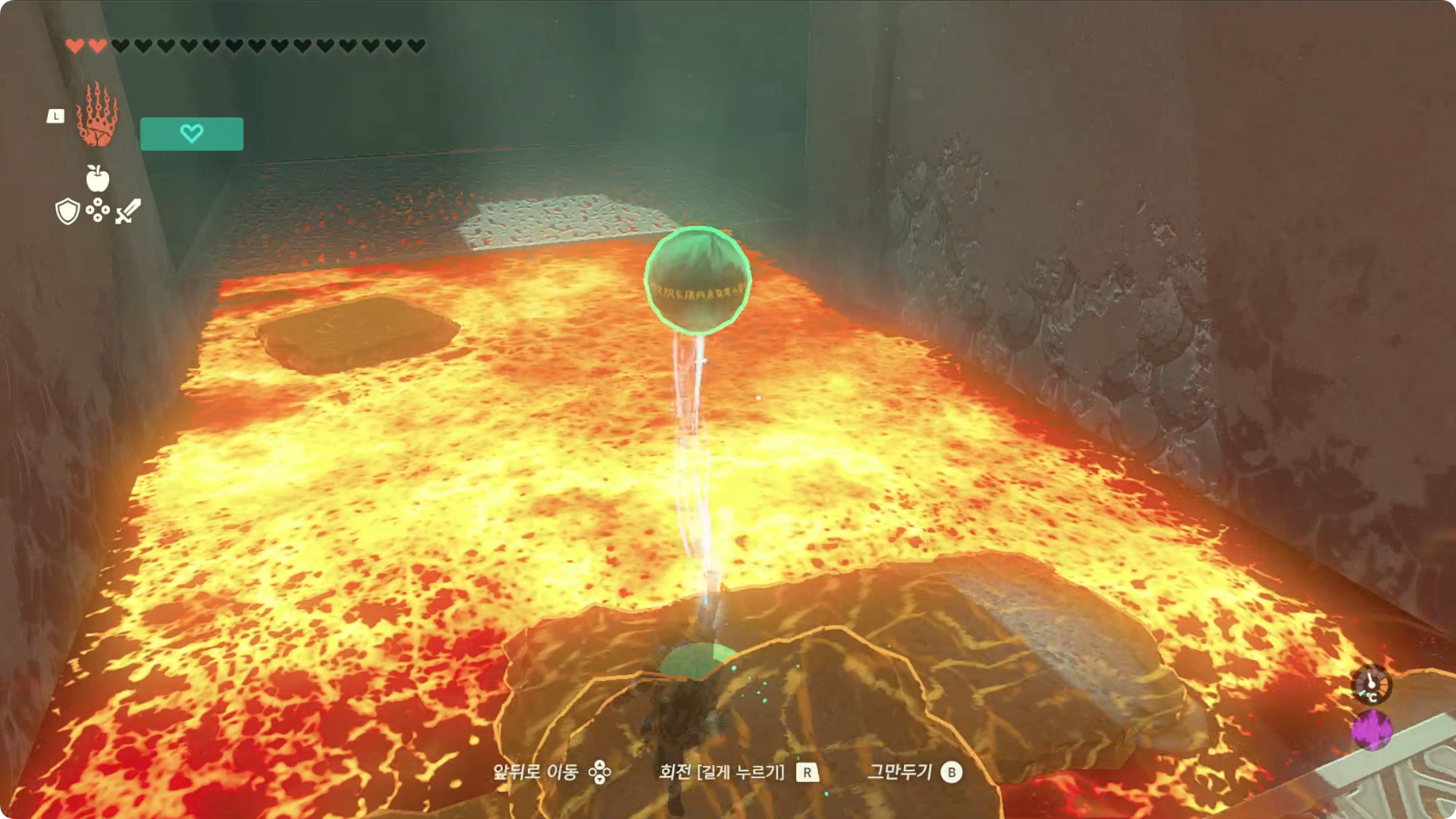 (2) 전방의 골렘을 쓰러트린 후, 오른쪽 용암에서 발판이 흘러오고 있는곳 뒤쪽을 보면 구슬을 발견할 수 있습니다