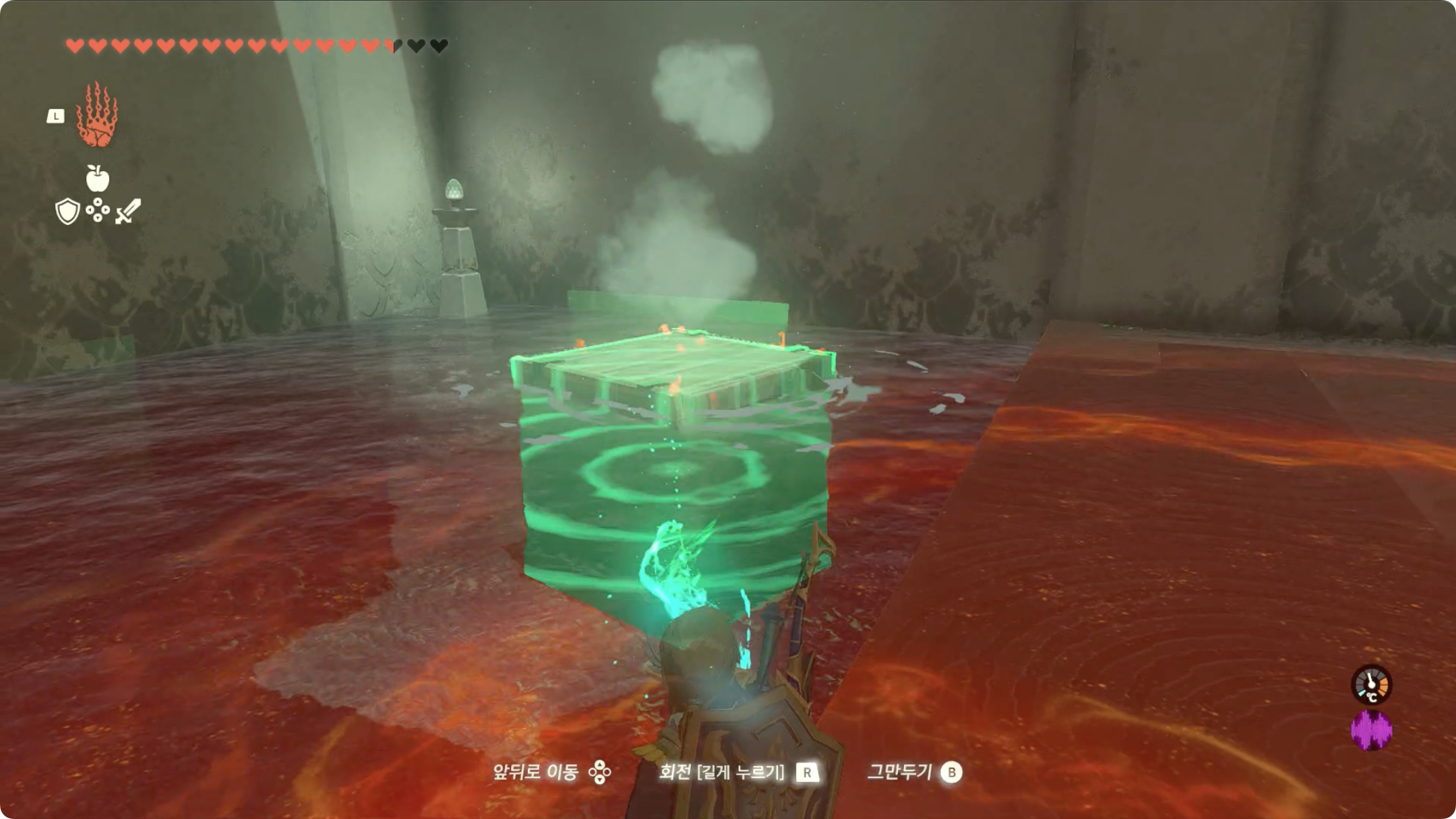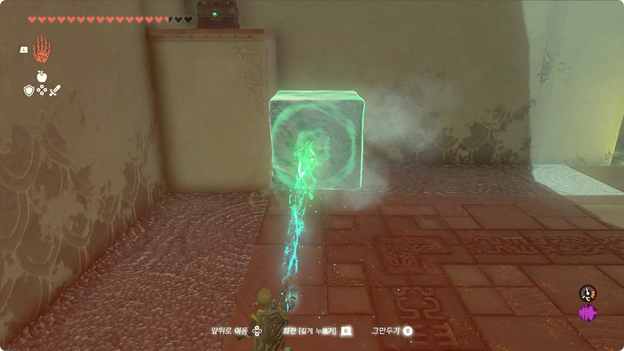 얼음 큐브 위에 올라가서 트레루프를 사용하면 사당 출구로 갈 수 있습니다.