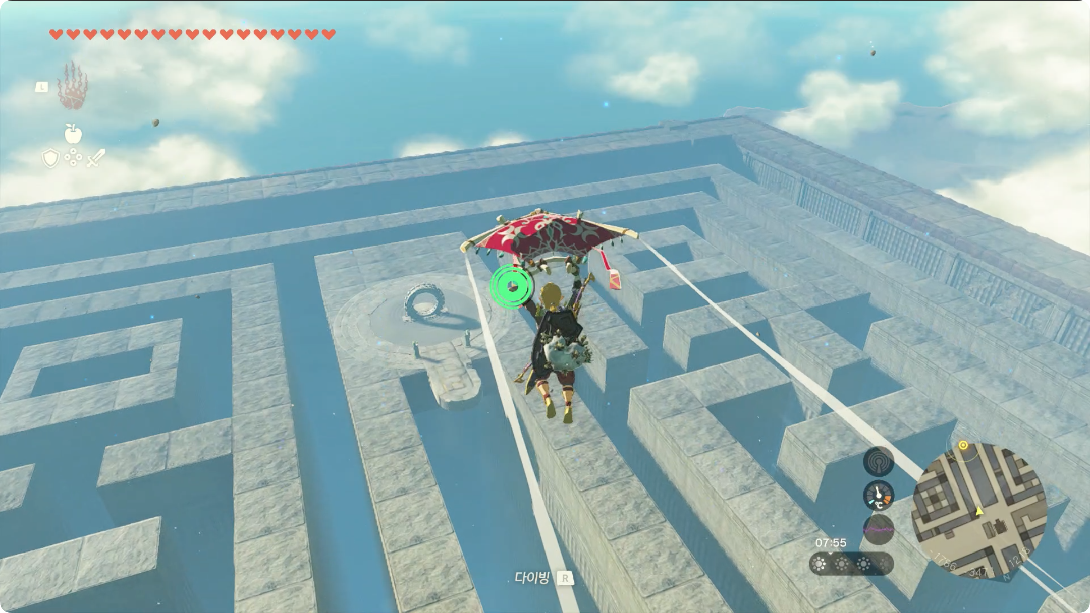 스테미나 물약을 사용하지 않는다면 한번에 이동하는것은 힘들테니 중간에 보이는 섬인 '동겔드 하늘제도'에 착지한 후, 조나우 기어를 이용하여 비행기를 만들어 이동하면 됩니다.