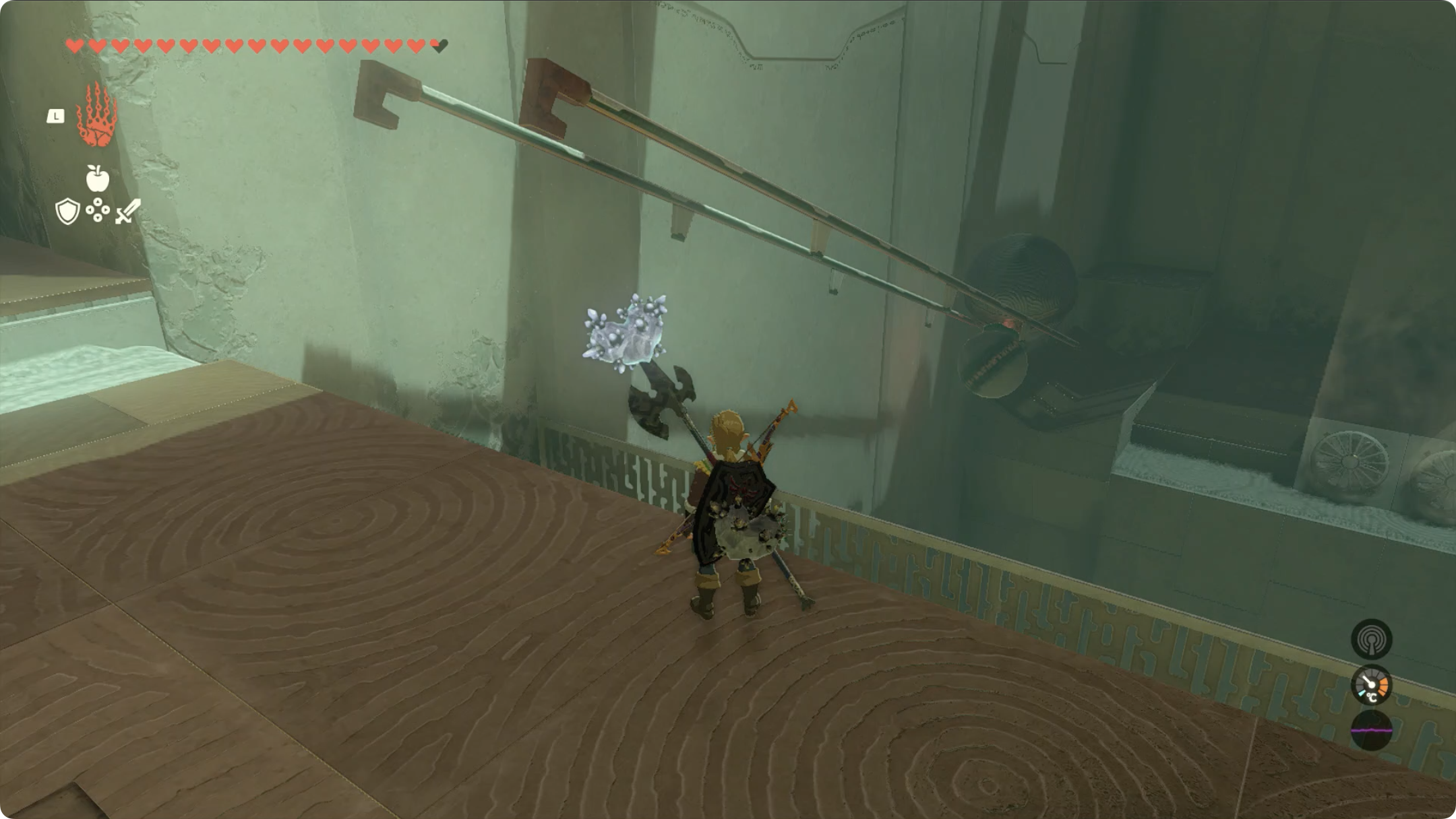 (3) 커다란 구슬을 벽 사이에 올려놓은 후, 트레루프를 이용해 위로 올라갑니다.