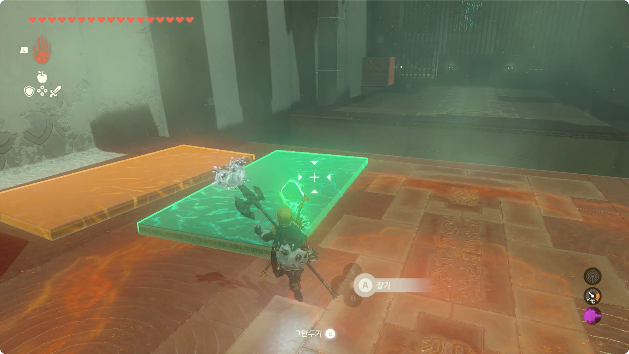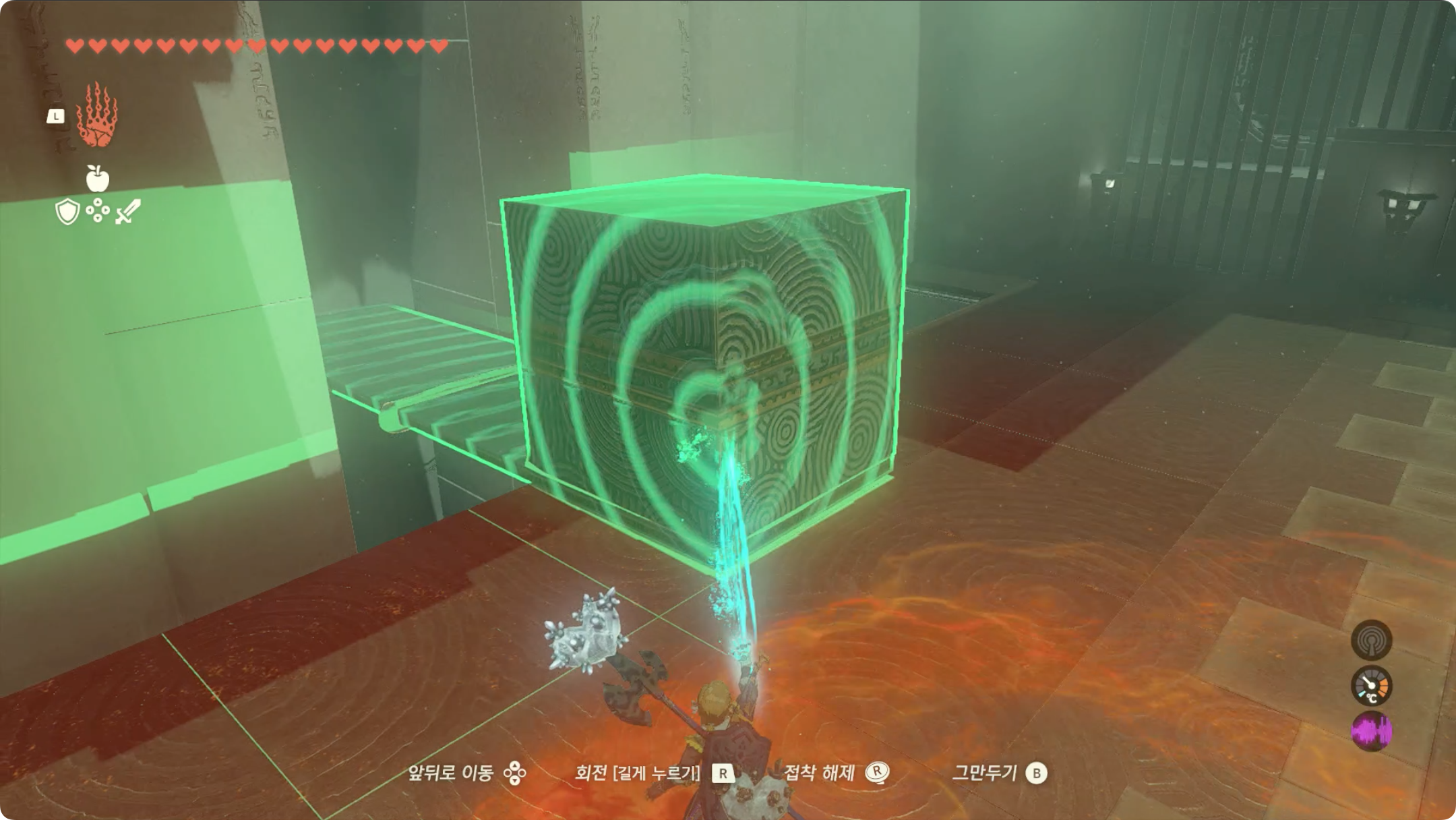 (5) 사당 출구 옆에 있는 큐브를 다시한번 철판에 붙여줍니다.
