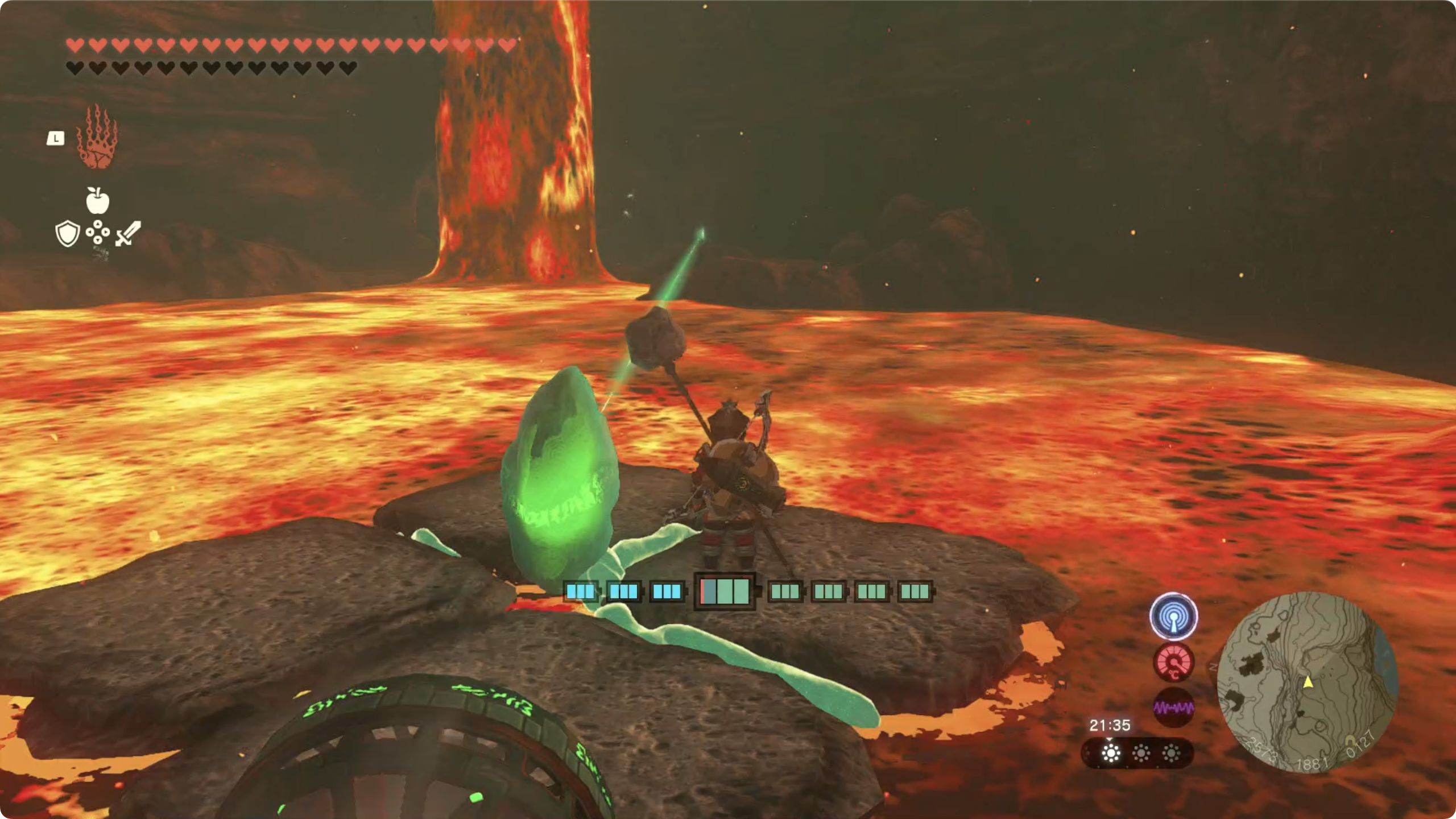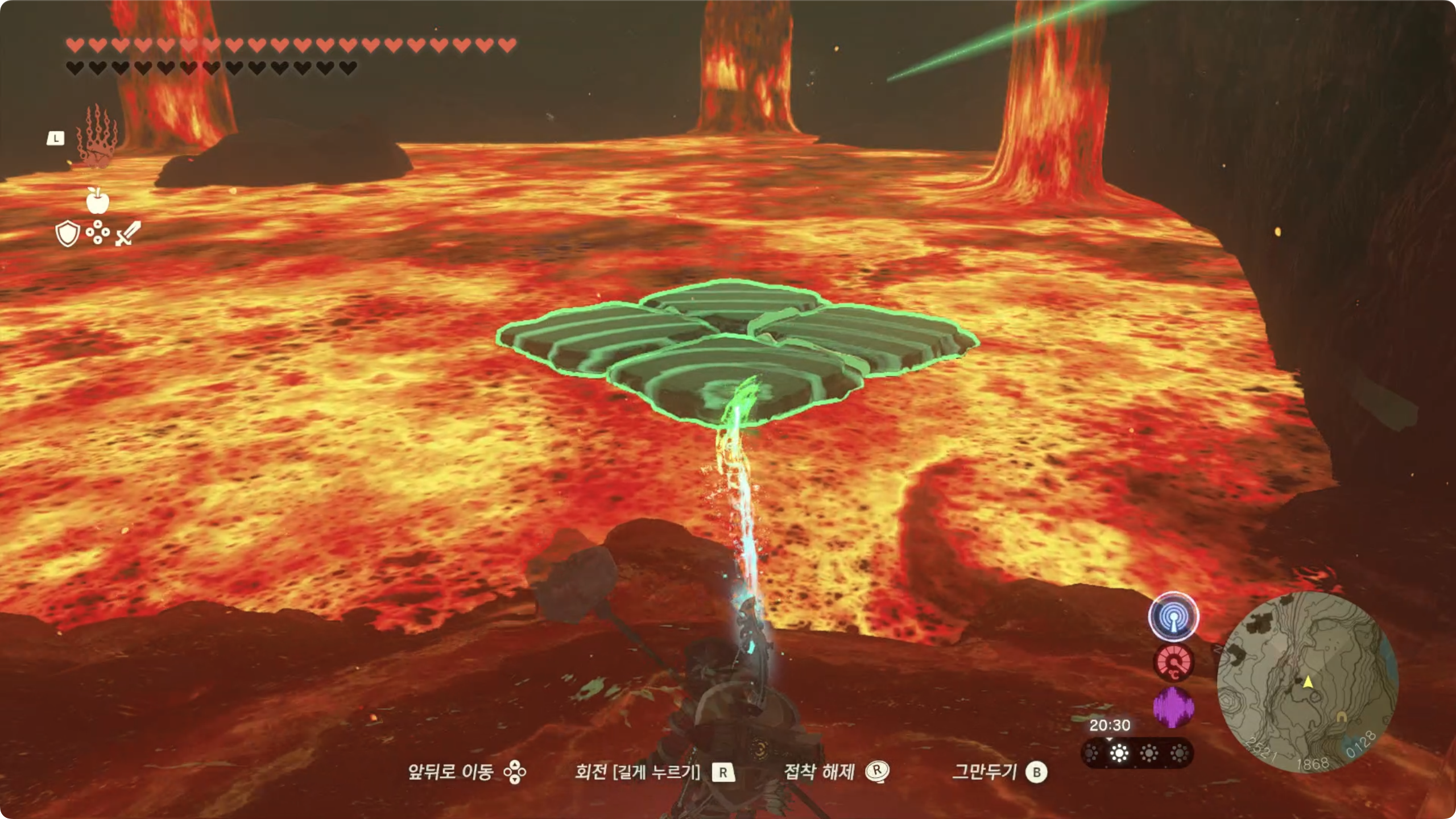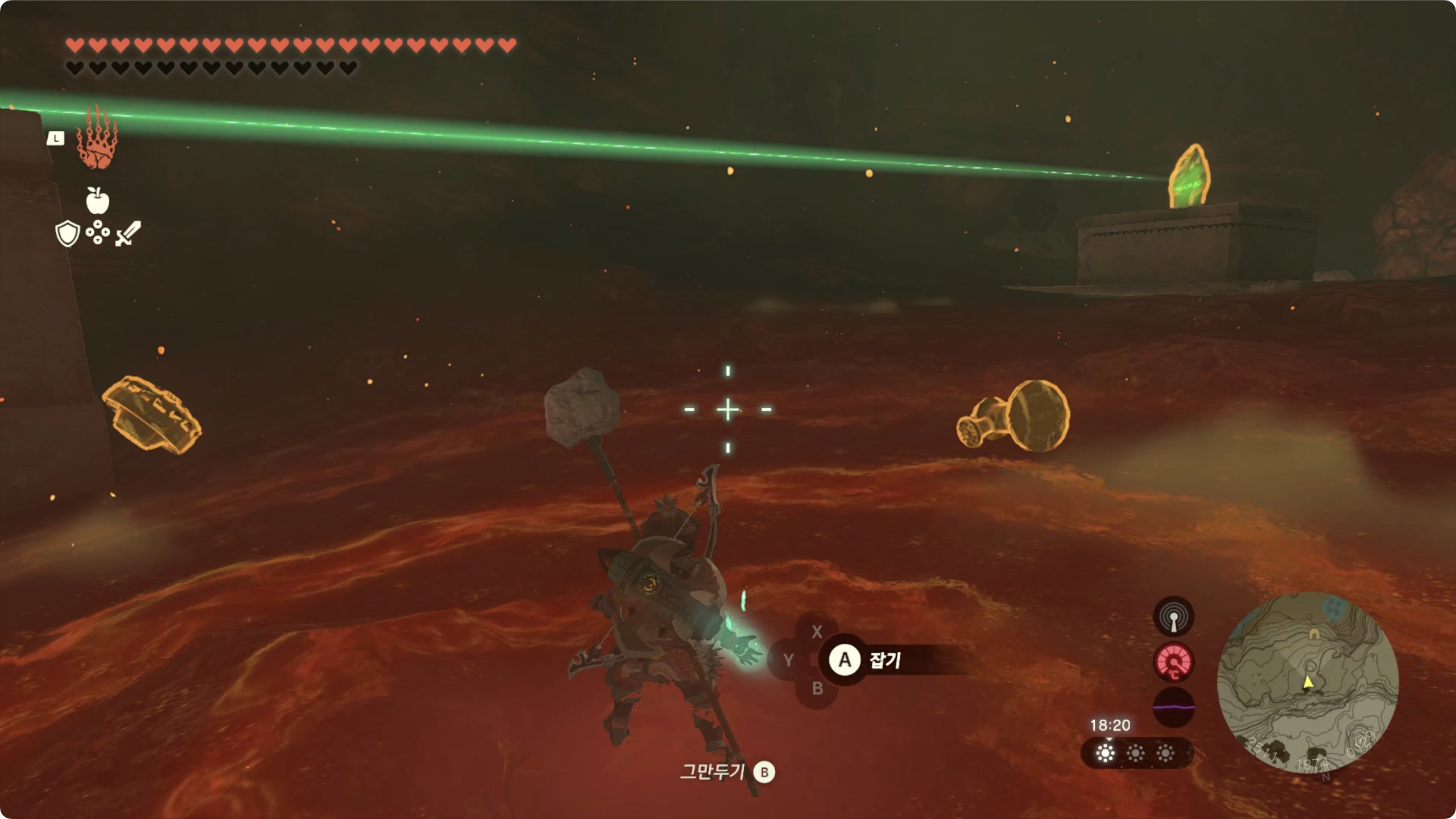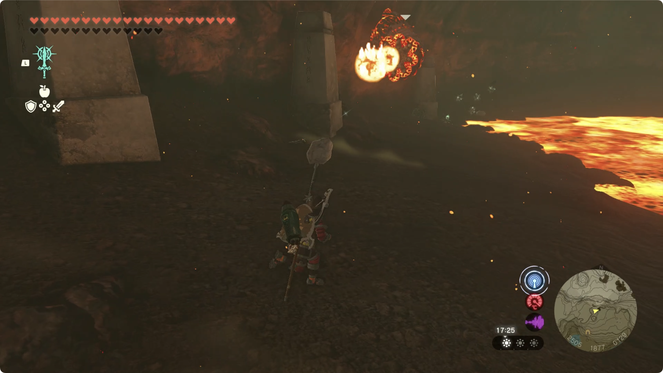 (5) 그대로 용암을 건너가면 사당을 발견할 수 있고 수정을 사당 근처로 옮기면 사당 챌린지가 완료됩니다.'