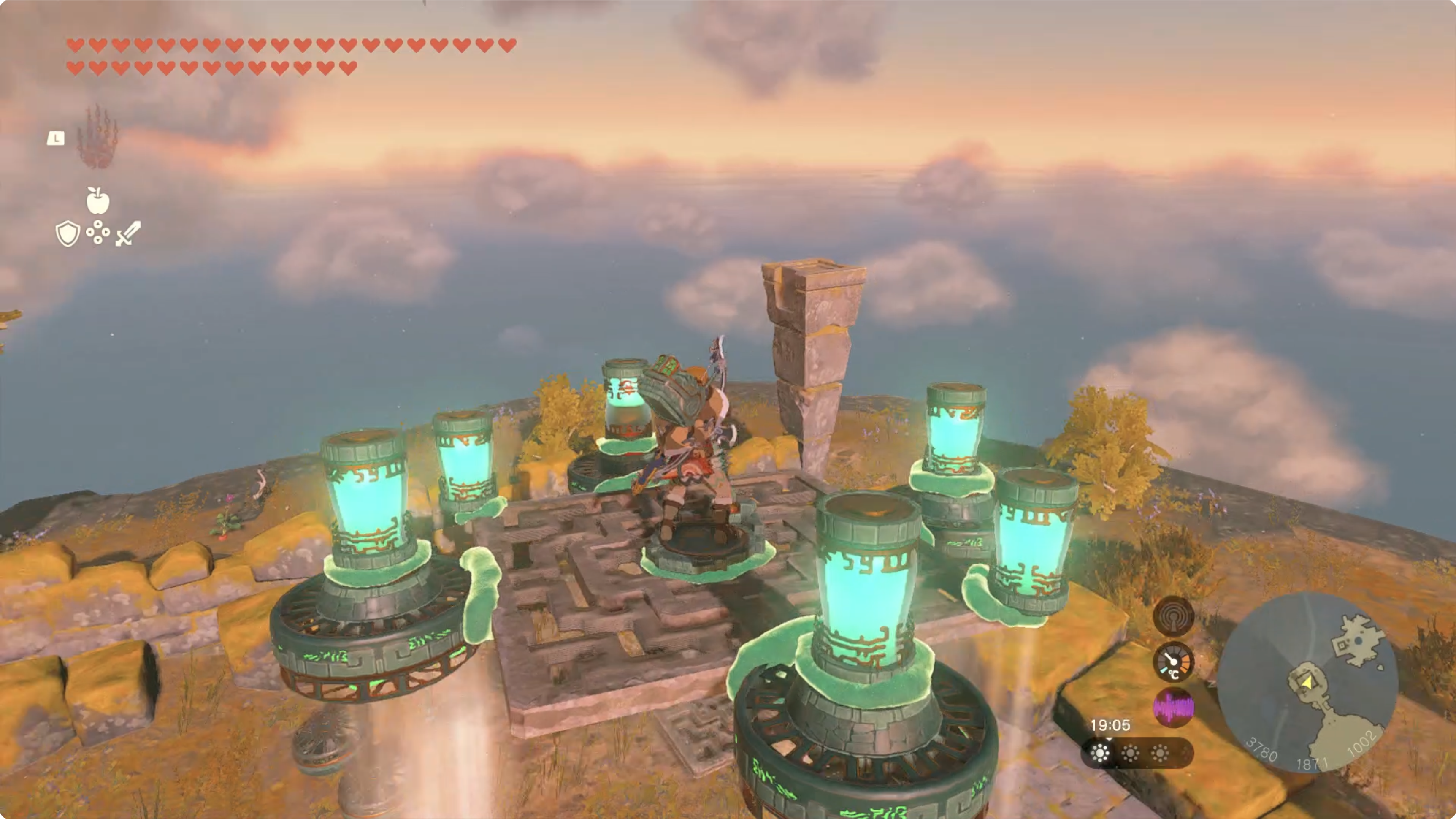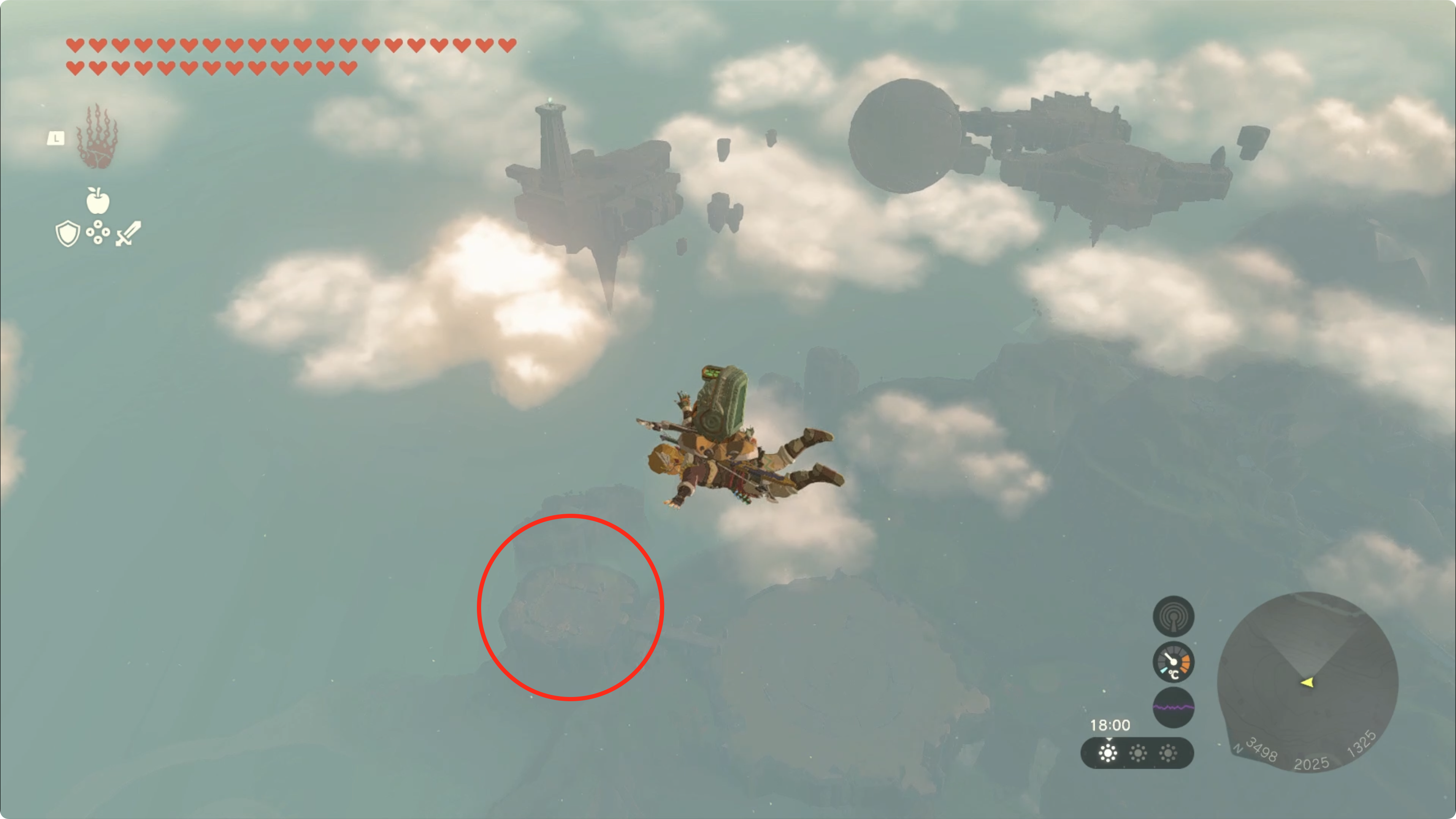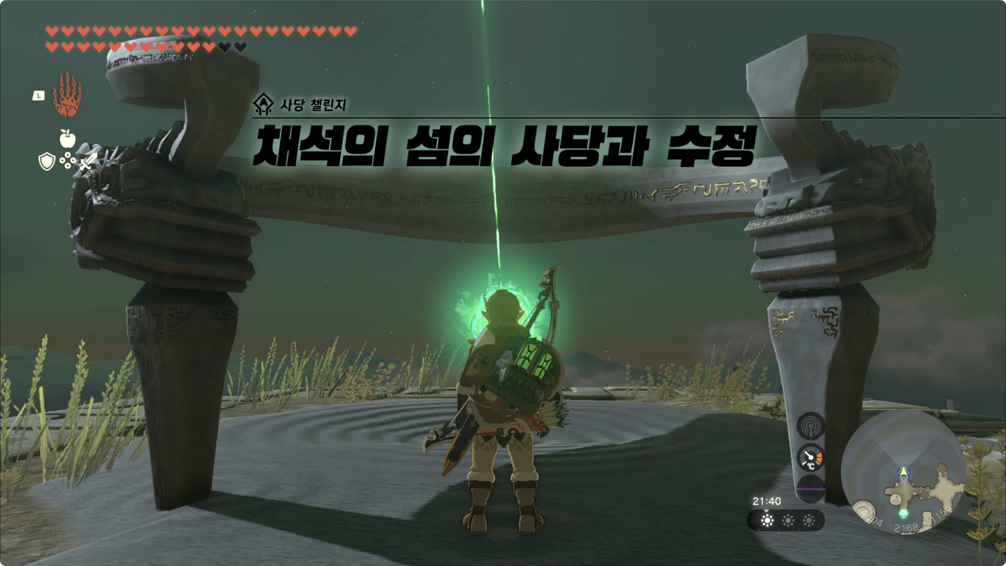 (2) 목적지는 북동쪽에 보이는 하늘섬을 향해 이동한 후, 하늘섬에 있는 사당을 조사하면 사당 챌린지가 시작됩니다.
