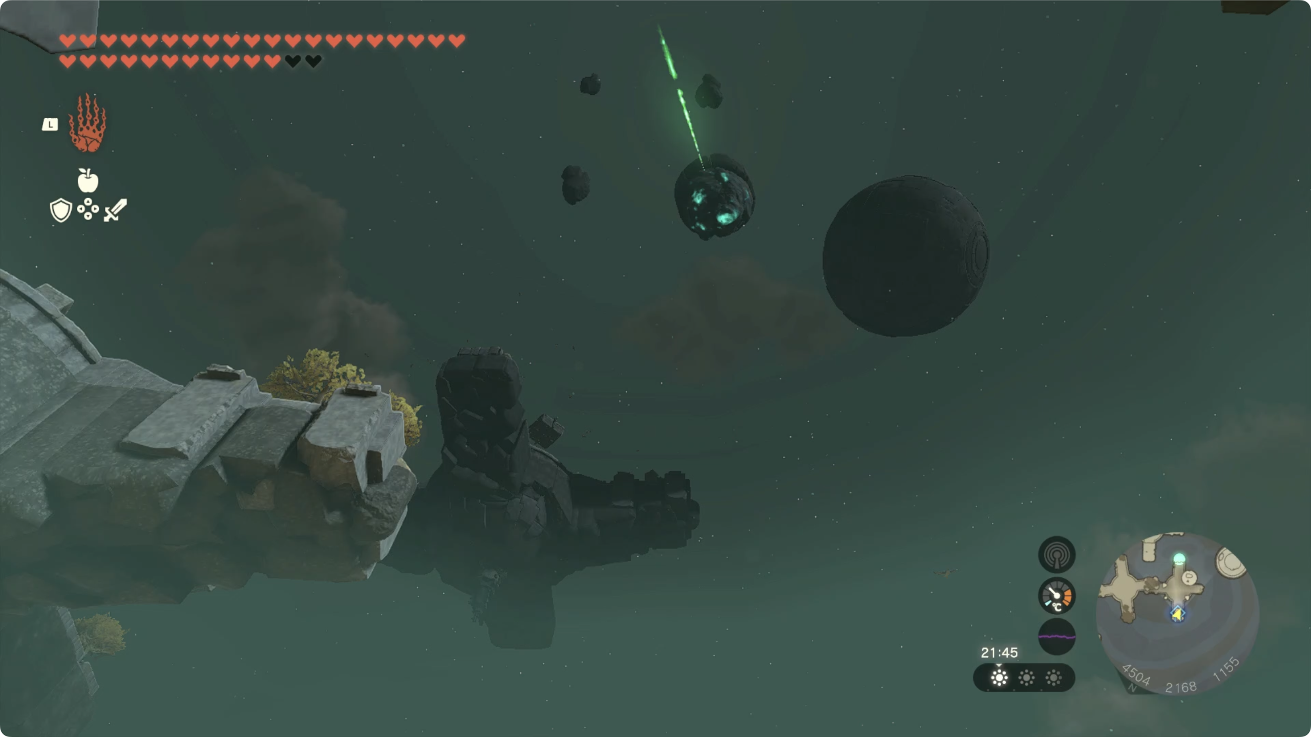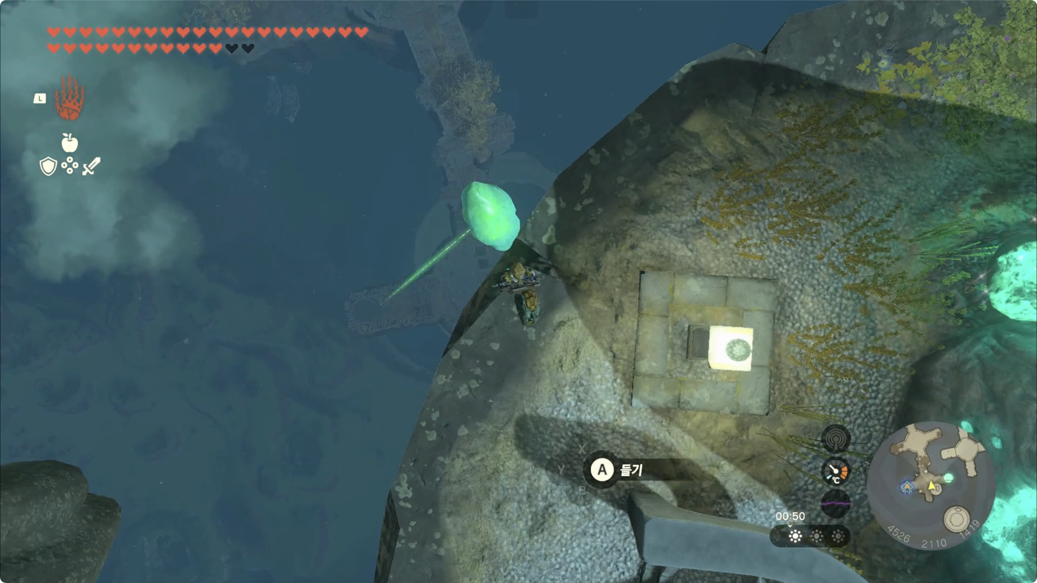 (5) 수정이 있는곳에 도착하면 아래쪽에 있는 사당이 있는 하늘섬으로 던집니다.