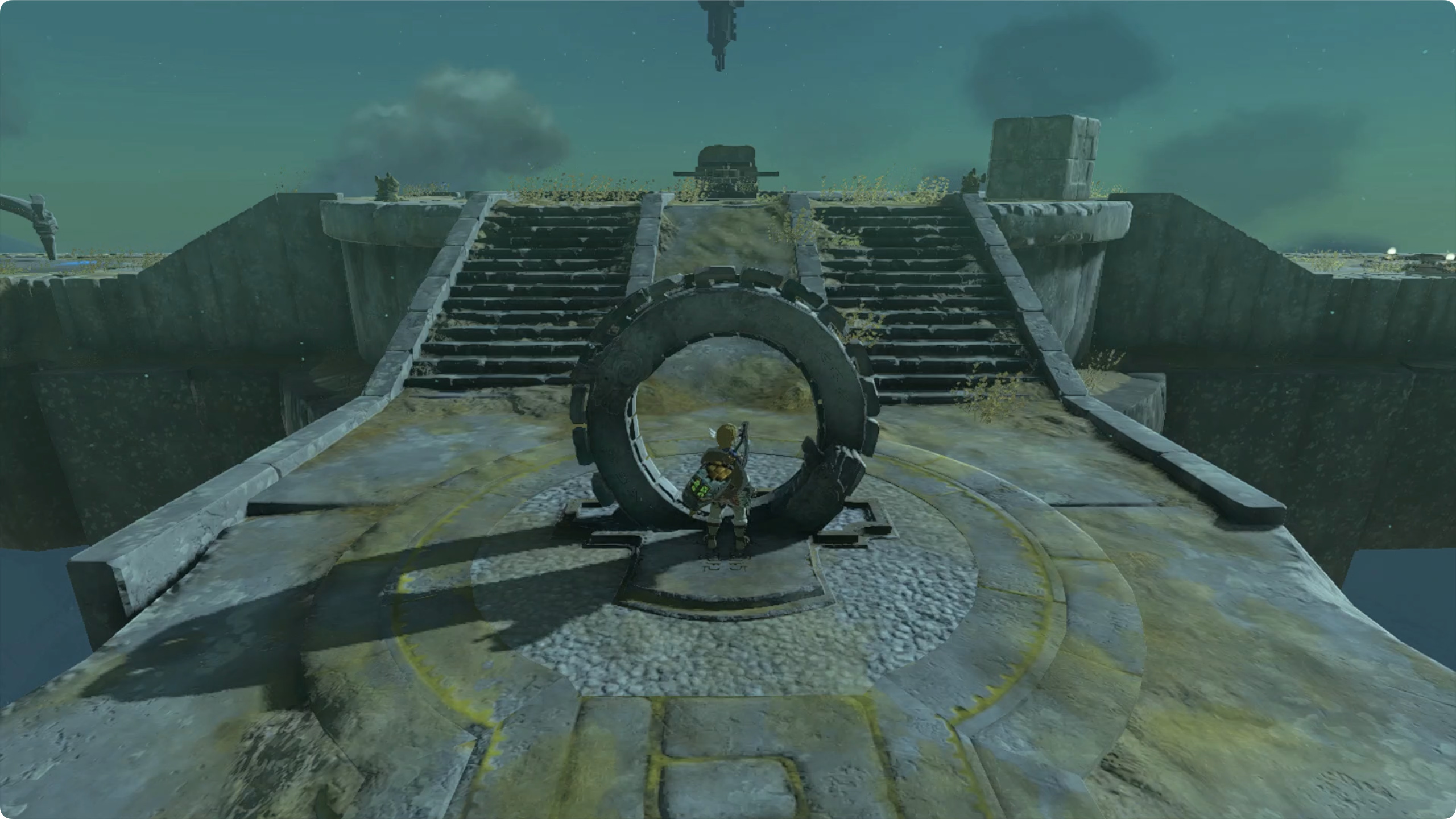 섬 중앙의 점프대를 이용하여 올라가게 되는데, 사당 옆쪽에 있는 단말을 가동시키면 점프대가 작동하기 시작합니다.