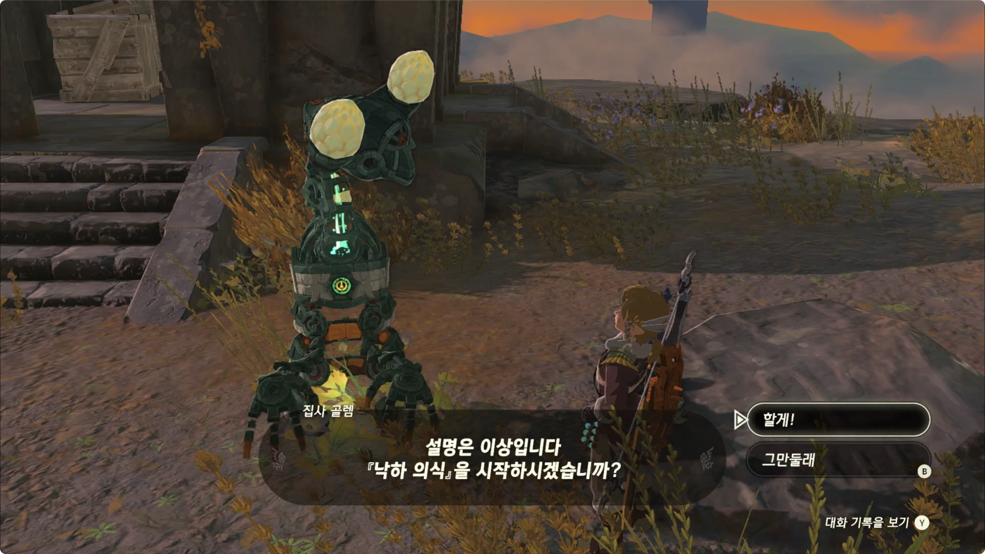 (2) 골렘에게 대화를 걸어 '낙하 의식'을 시작한다고 대답하면 상공의 하늘섬으로 이동시켜 줍니다.