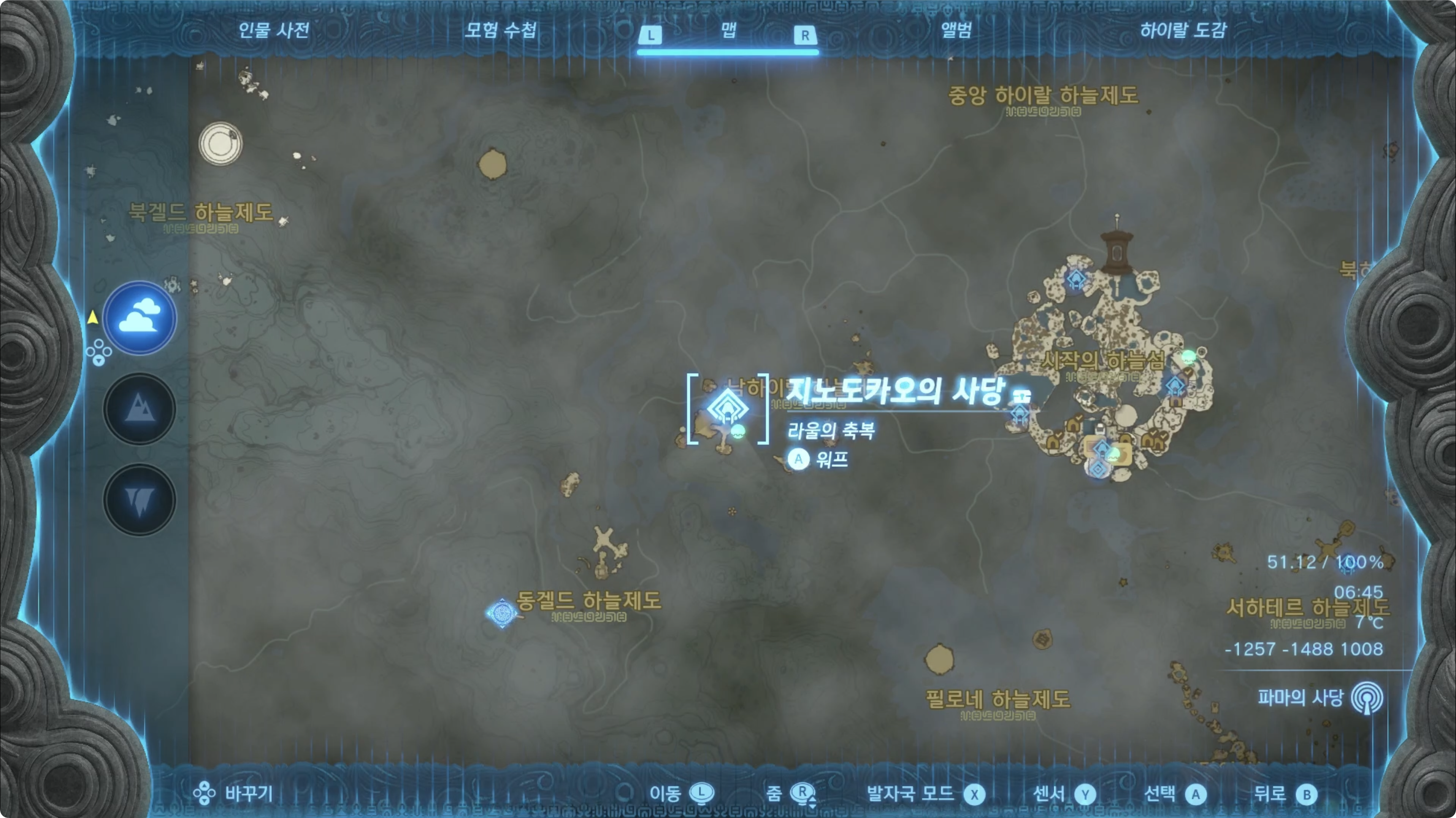 (1) '하이랄 평원 조망대'에서 남쪽의 하늘섬으로 이동합니다.