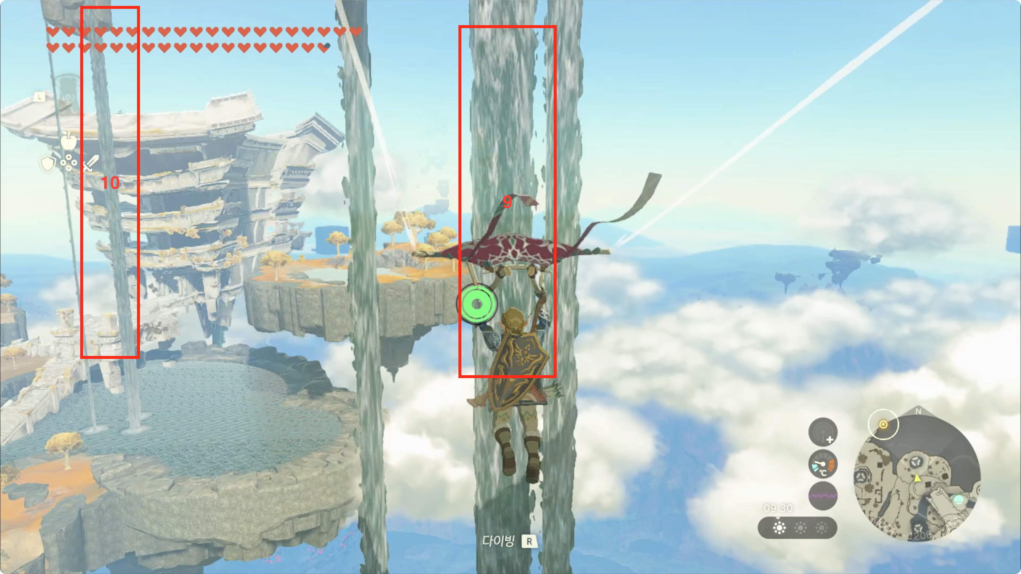 ※ 조라의 갑옷을 입은 상태로 진행하며, 화톳불에 불은 화살을 이용하여 붙이고 다시 폭포를 타고 이동하는것을 반복합니다.