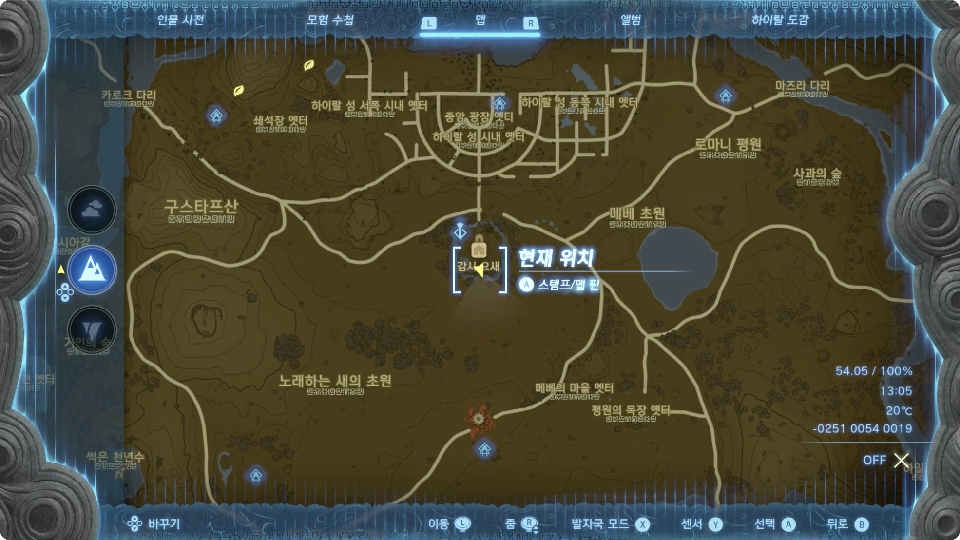 (2) 텐텐이 있는 장소는 감시 요새에서 바로 남서쪽 아래 평원.