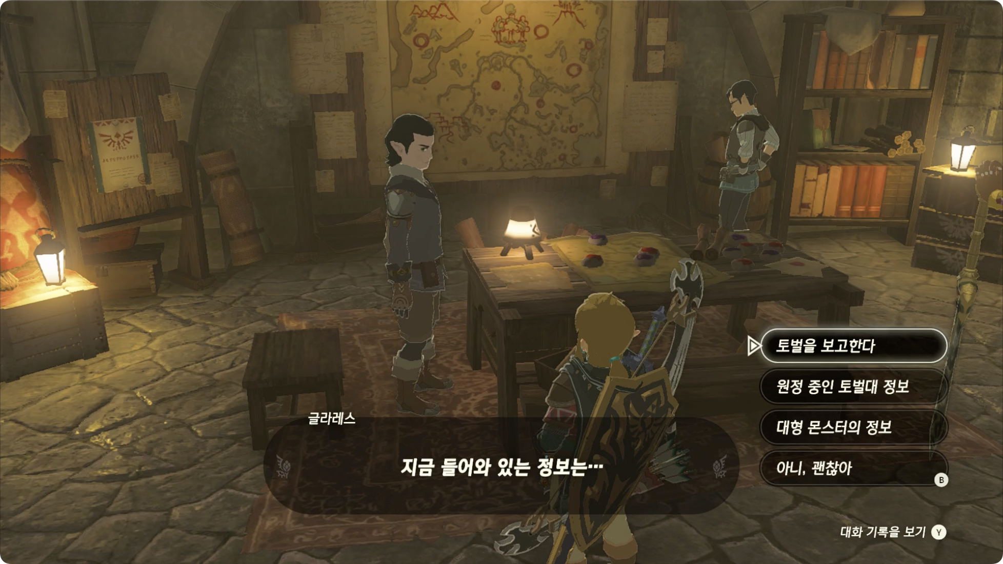 (1) 감시 요새의 피난소에 있는 '글라레스'와 대화를 걸어 대형 몬스터의 정보를 입수한다