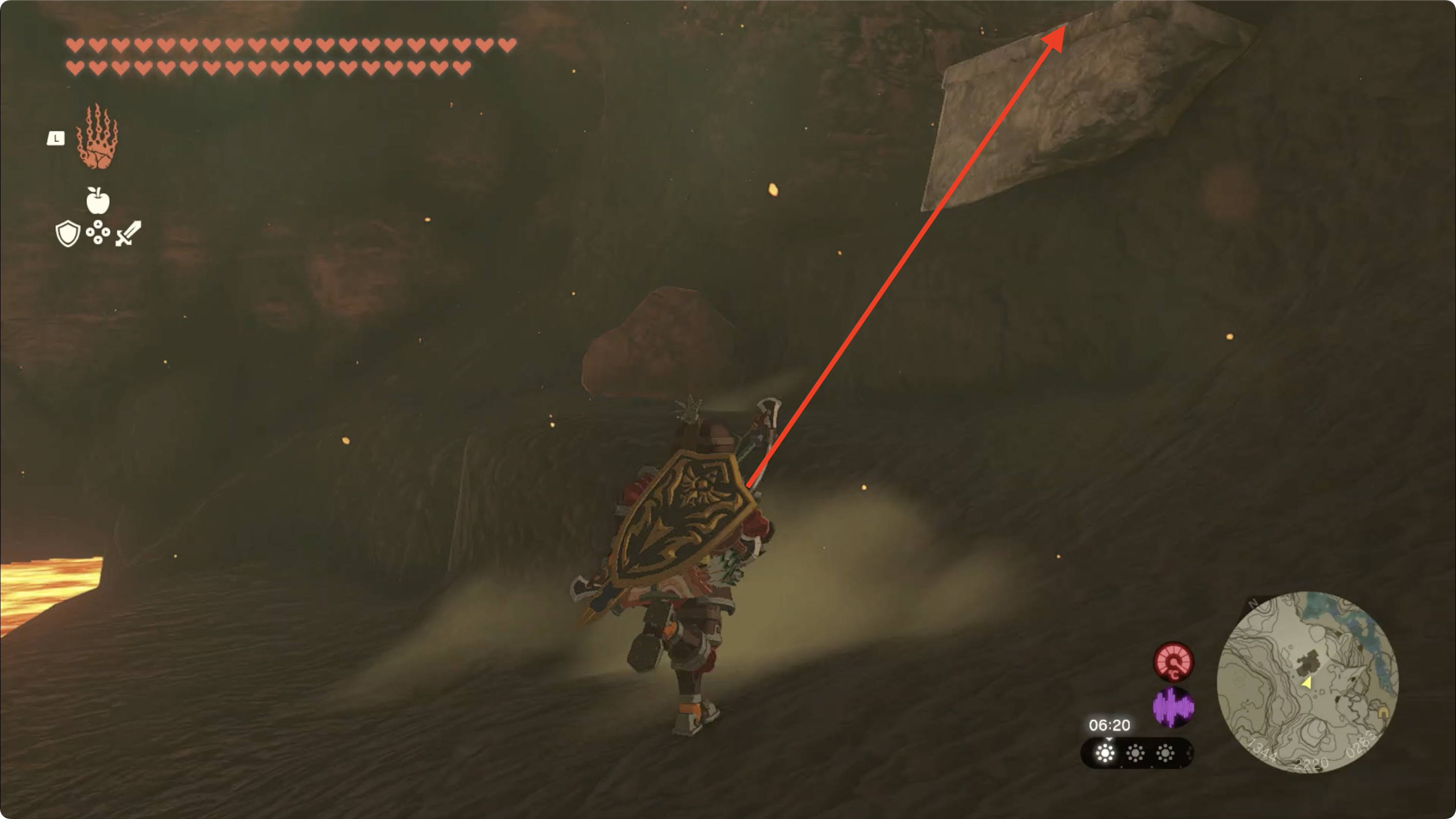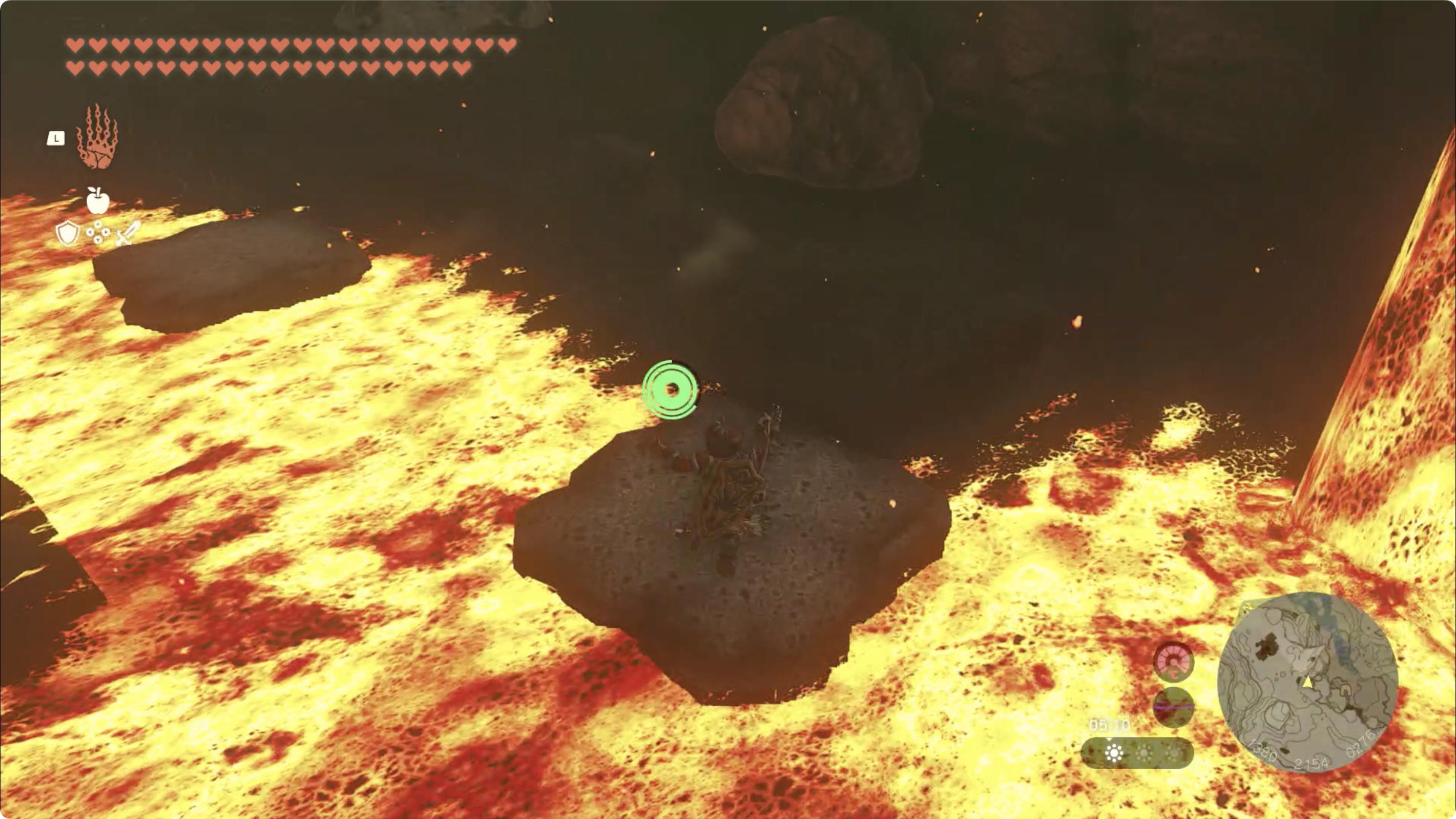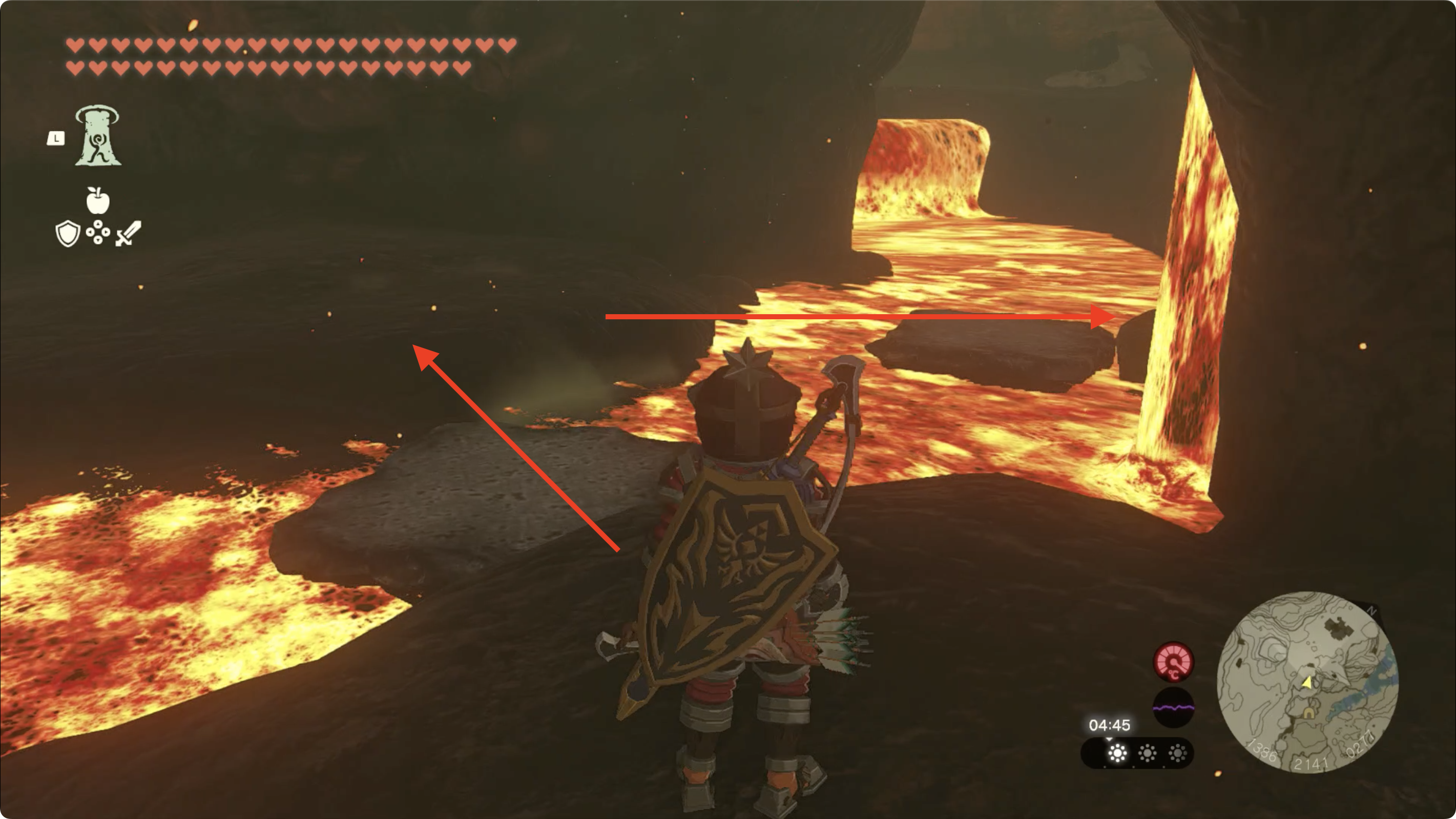 2번의 용암 호수를 건넌 후, 마지막 발판을 타고 안쪽으로 이동합니다. (모두 일반 점프만으로 건널 수 있습니다)