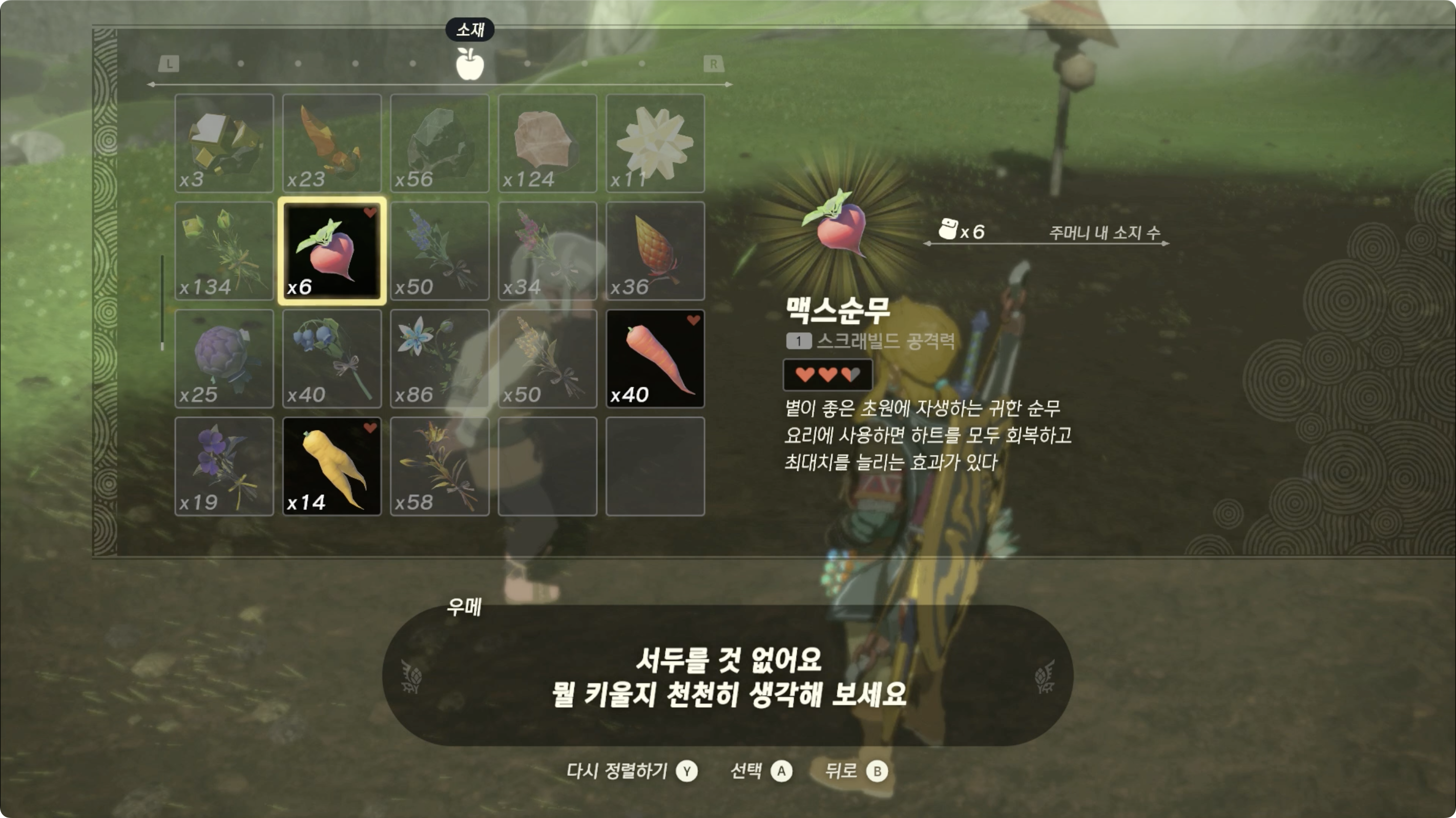 젤다의 전설: 왕국의 눈물 - 우메의 밭에 무엇을 심을까요?