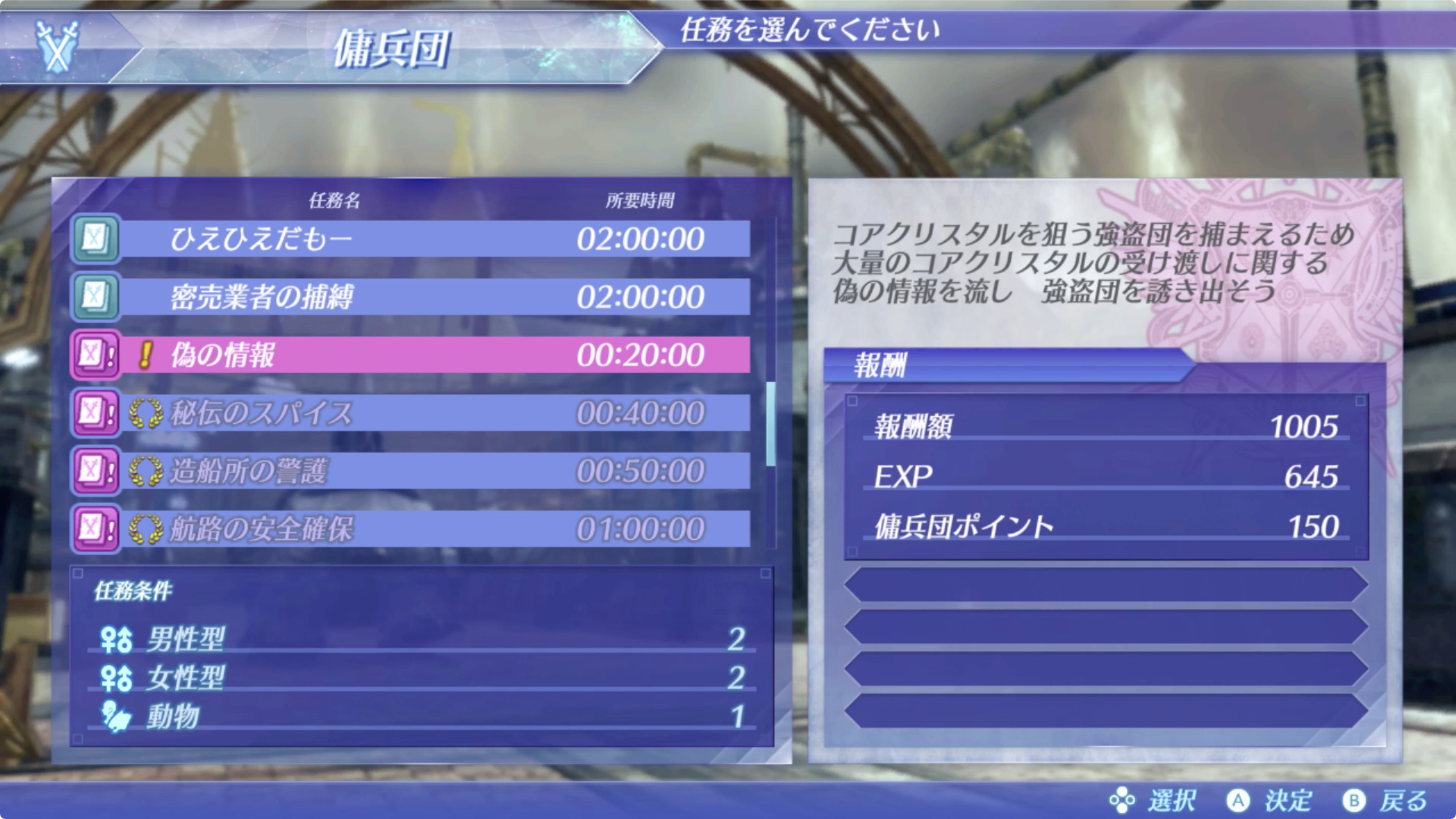 4. 용병단 의뢰 "거짓 정보(僞の情報)" 를 완료.
