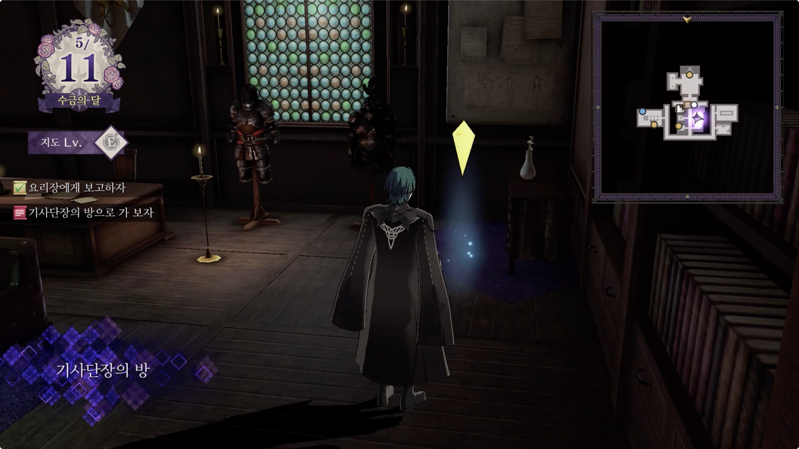 로비 2층의 기사단장의 방으로 이동하여 아이템 스폿을 조사하여 '병법 입문서'를 획득하면 퀘스트 클리어