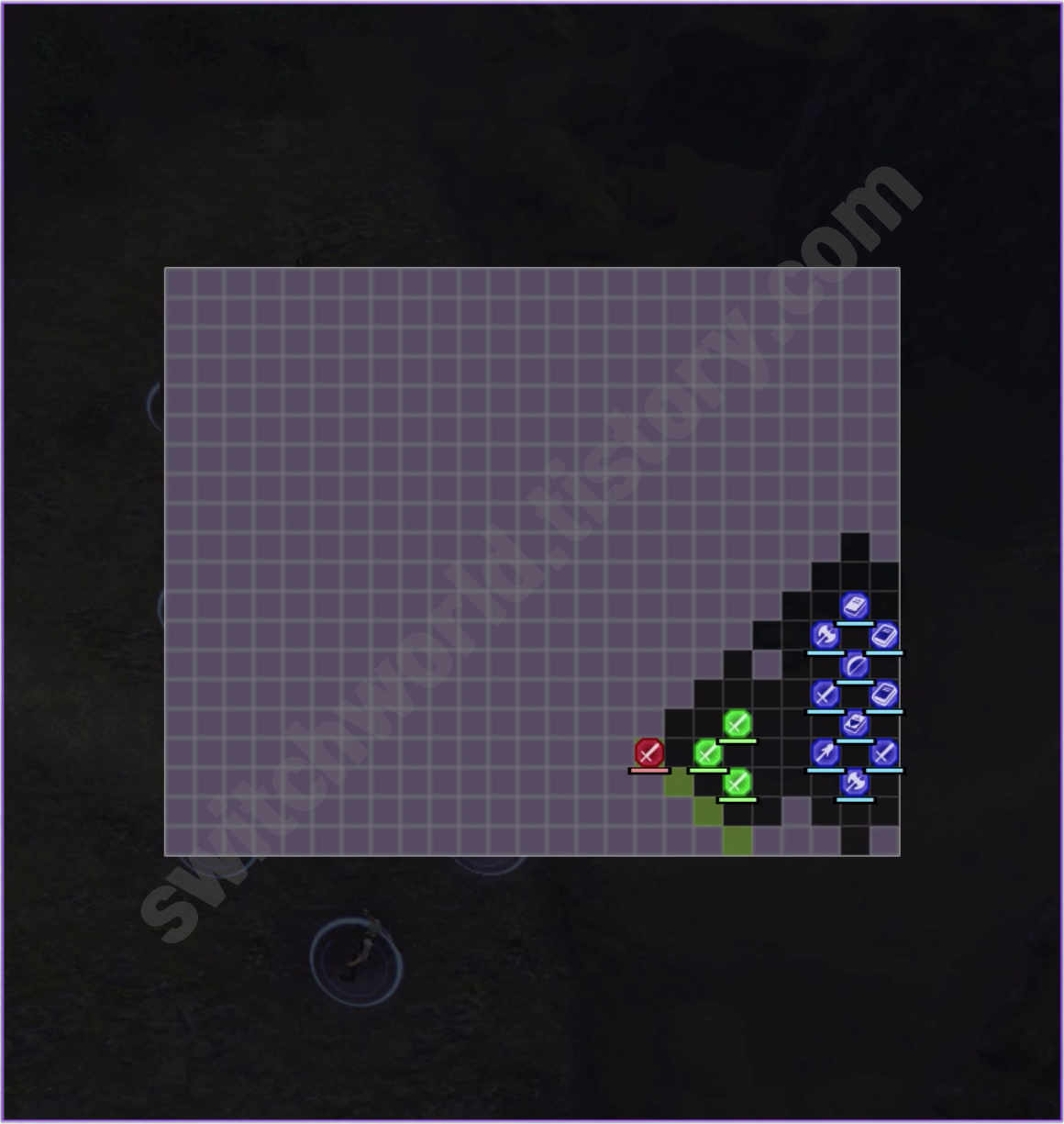 위 목록은 플레이방식에 따라 차이가 있지만 서쪽 중앙(다크 메이지가 있는 곳)으로 맹목적으로 달렸을때 나타나며 전투가 발생하는 대략의 순서입니다