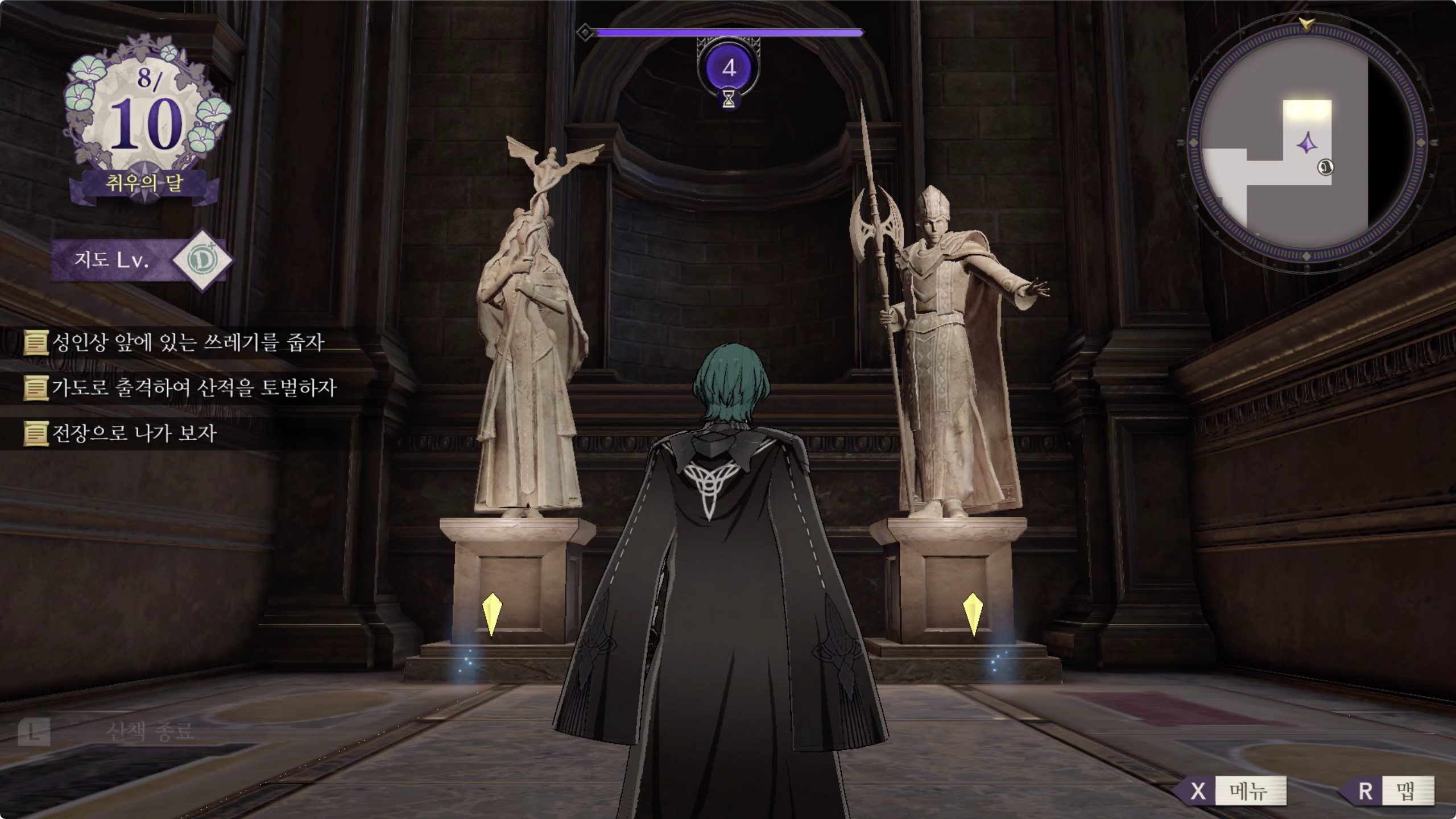 대성당의 북동쪽에 있는 성인상이 있는 방에 들어가서 4성인상의 앞에 있는 쓰레기를 줍는다.