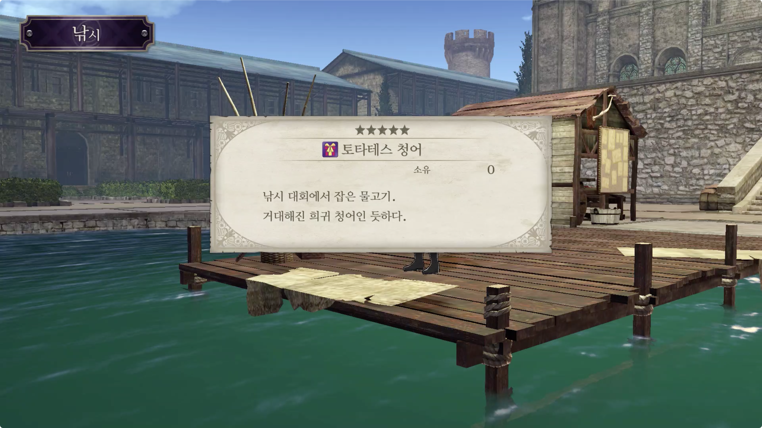 도타테스 청어를 낚아서 낚시터 옆에 있는 흐렌에게 선물로 '토타테스 청어'를 선물해 주면 퀘스트 클리어