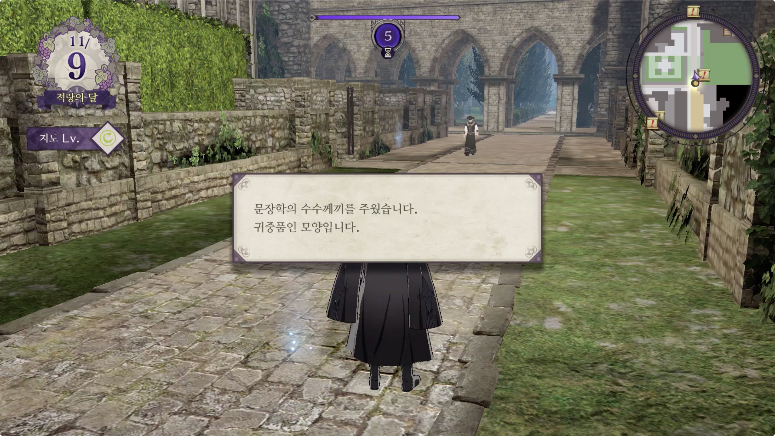1. 마구간 앞쪽에 뭔가가 떨어져 있는것을 줍는다 : '문장학의 수수께끼' 획득