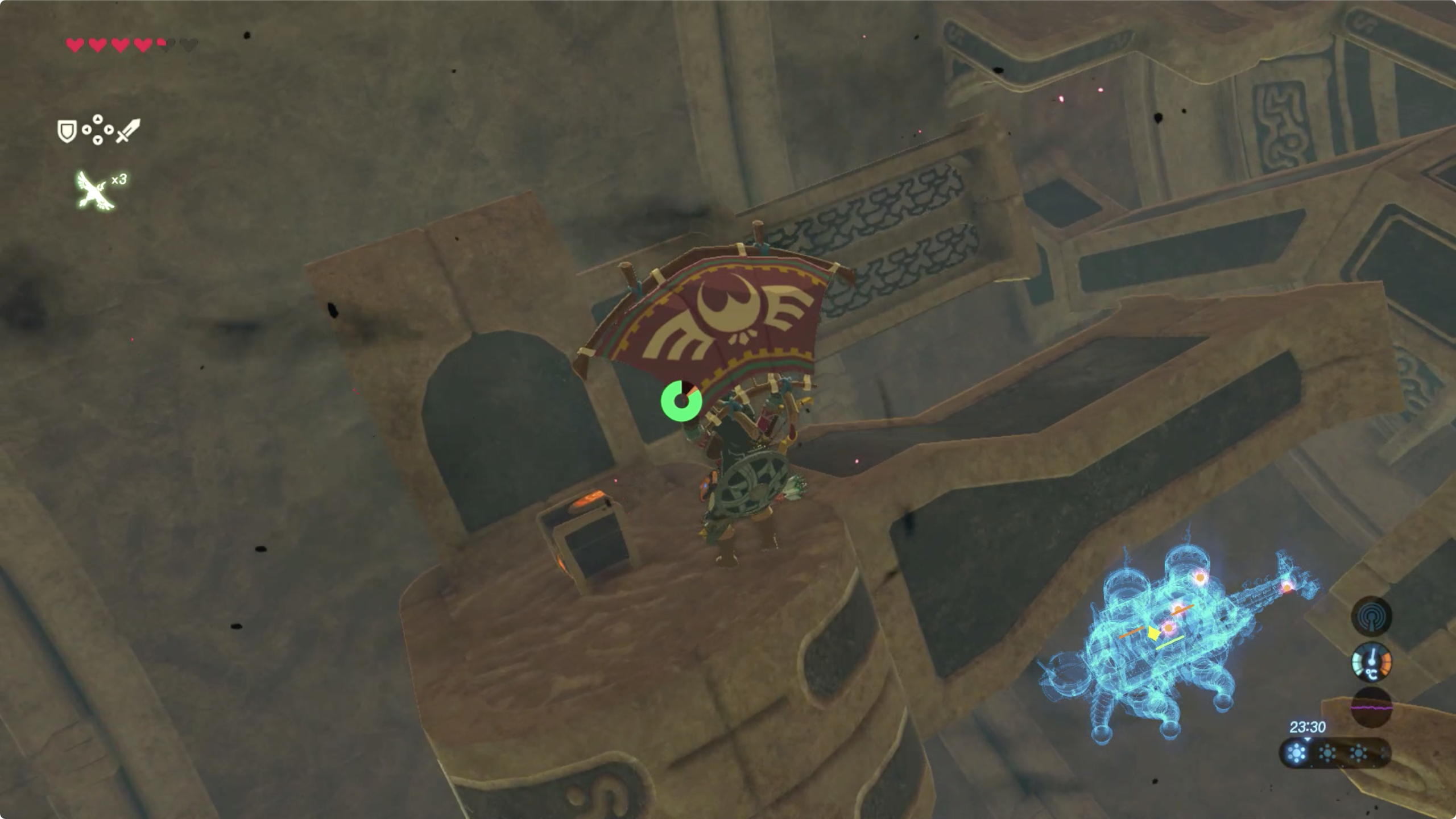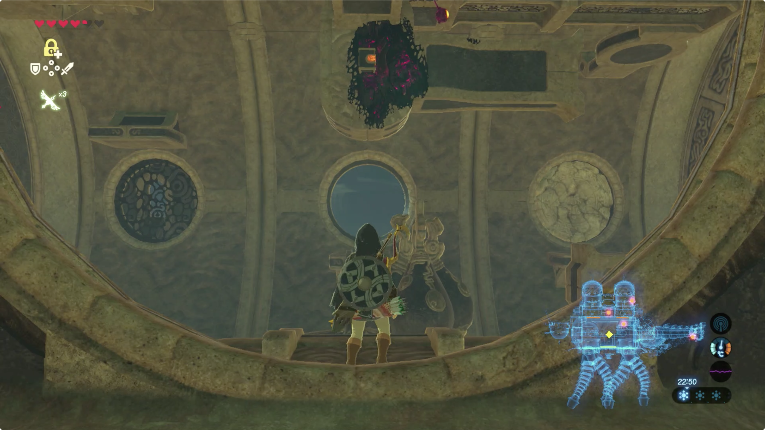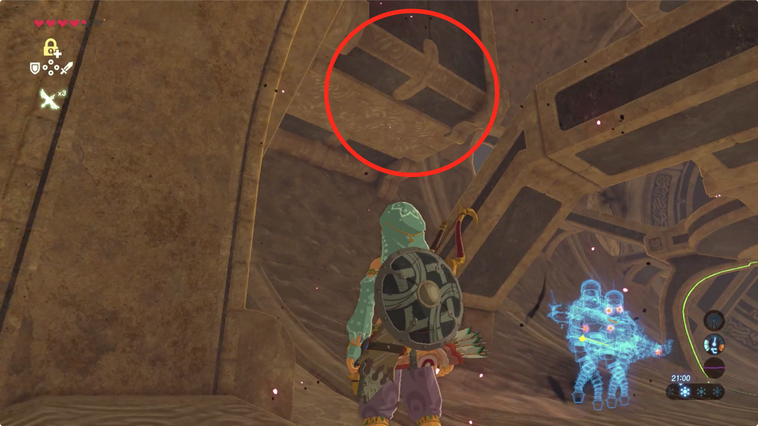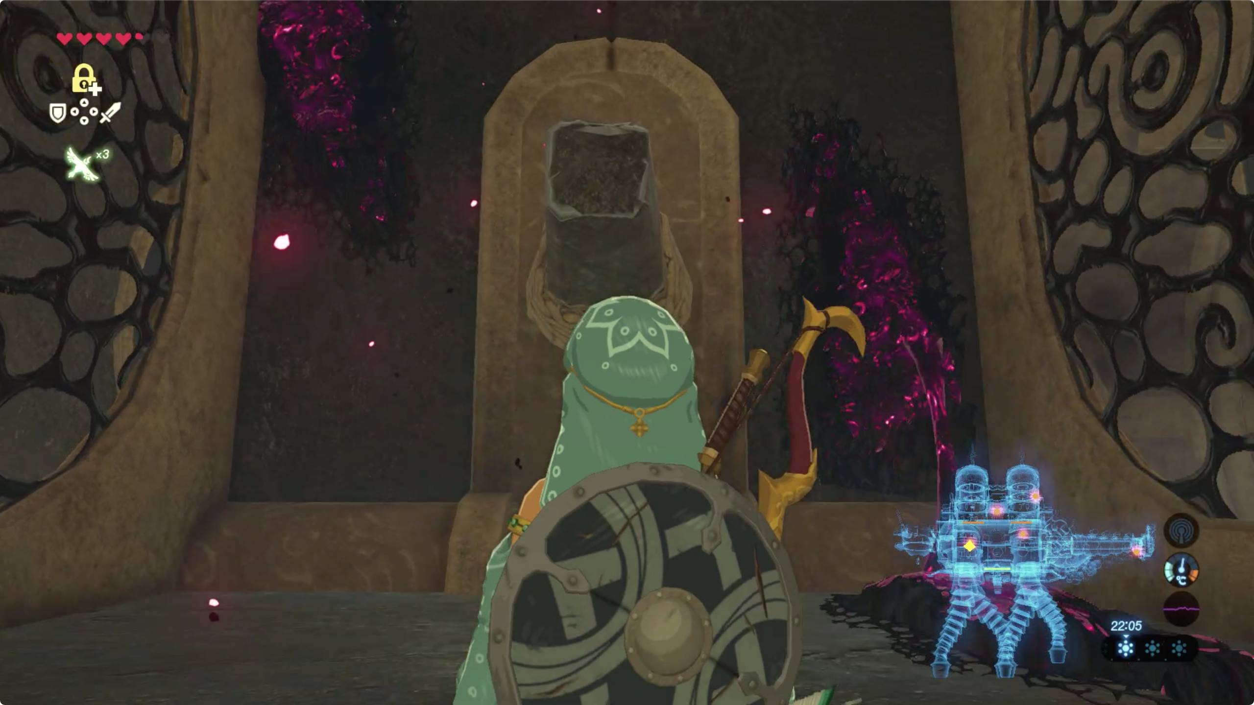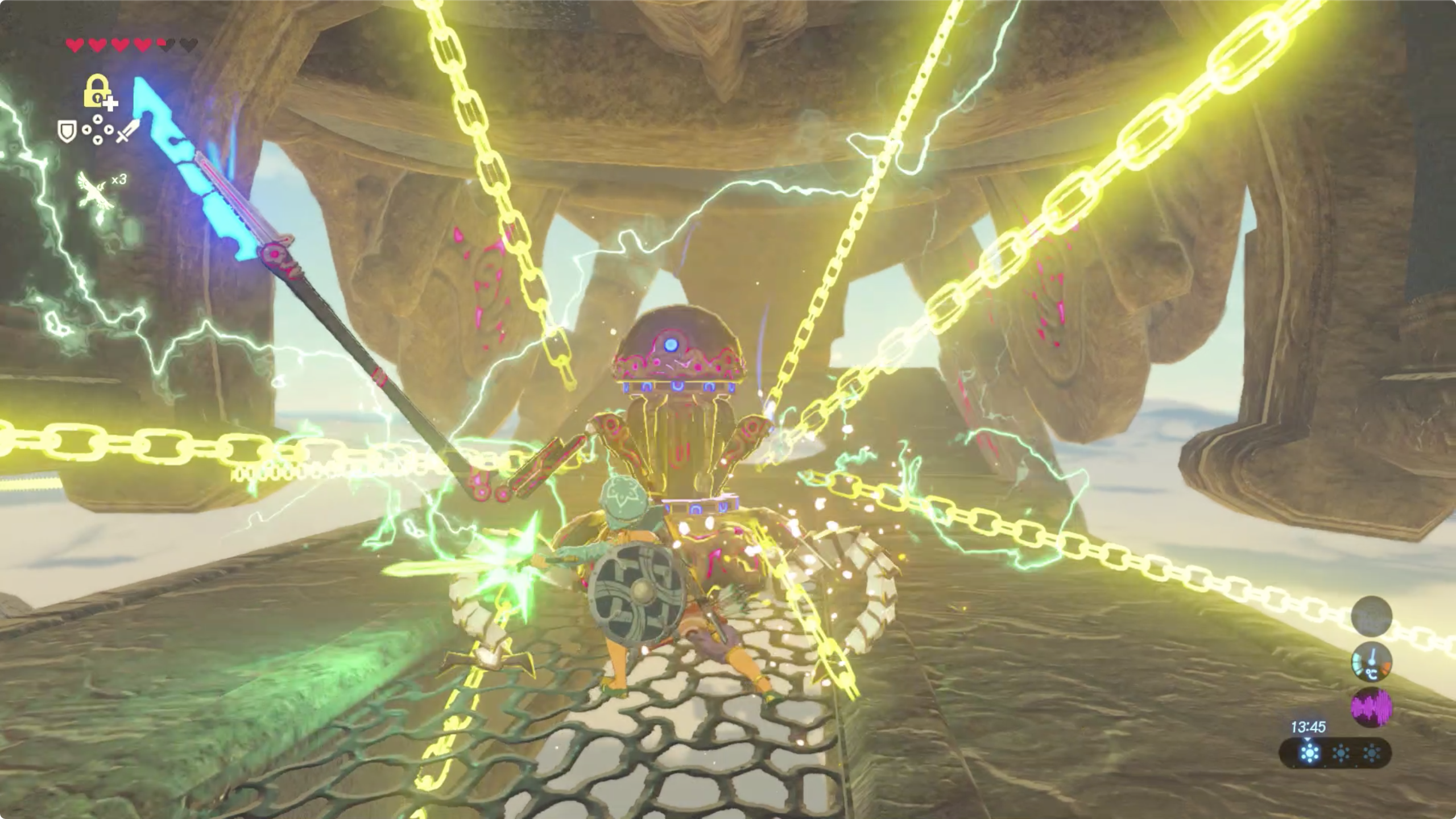 기둥이 내려오면 제빠르게 마그넷 캐치로 기둥을 뽑아 커스 가논 쪽으로 옴겨, 번개를 커스 가논에게 떨어지게 합니다.