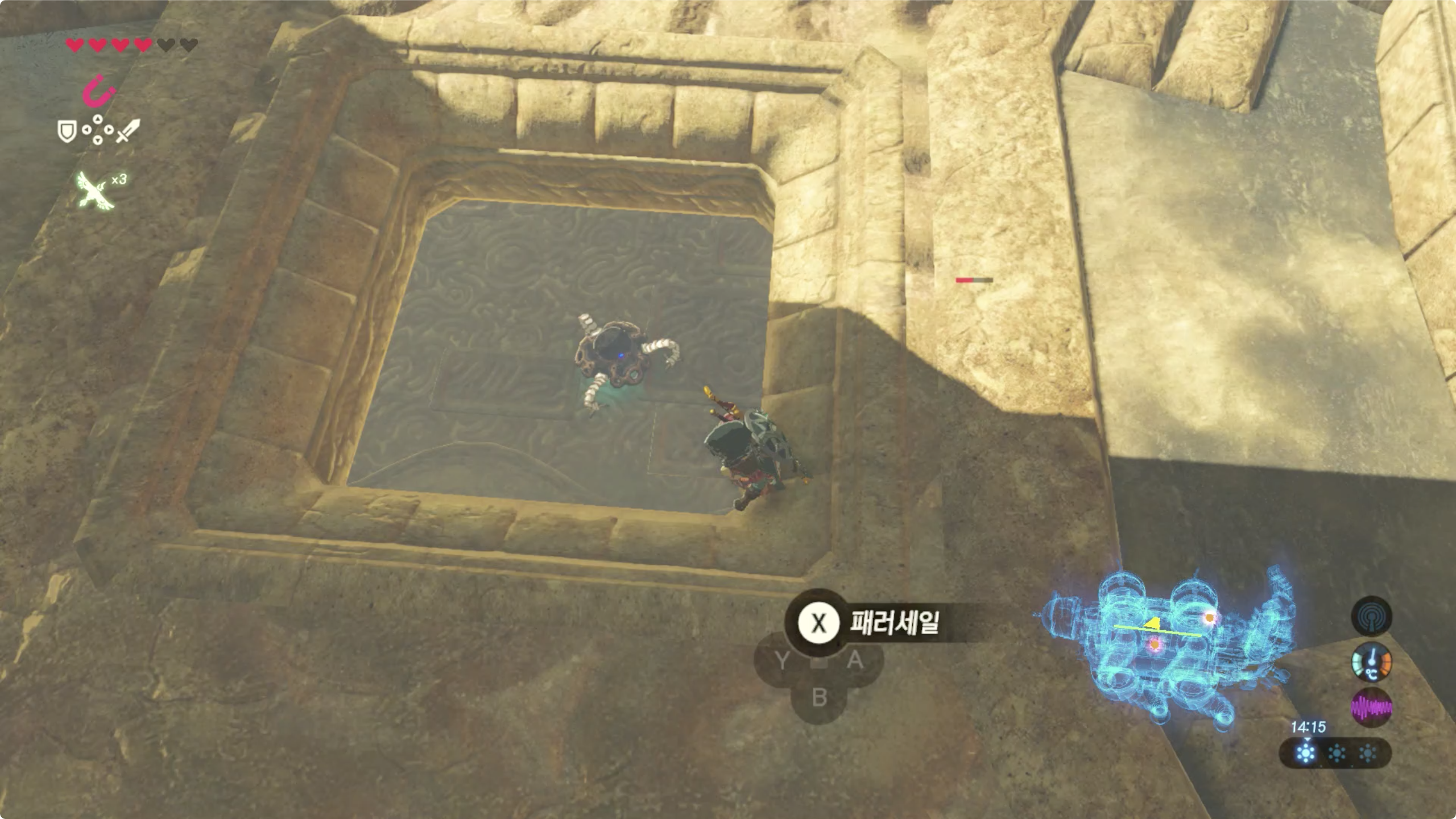 메인 단말을 기준으로 왼쪽으로 나가면, 우측에 가디언 1마리, 좌측에 폭탄 화살 5개를 획득 할 수 있습니다.