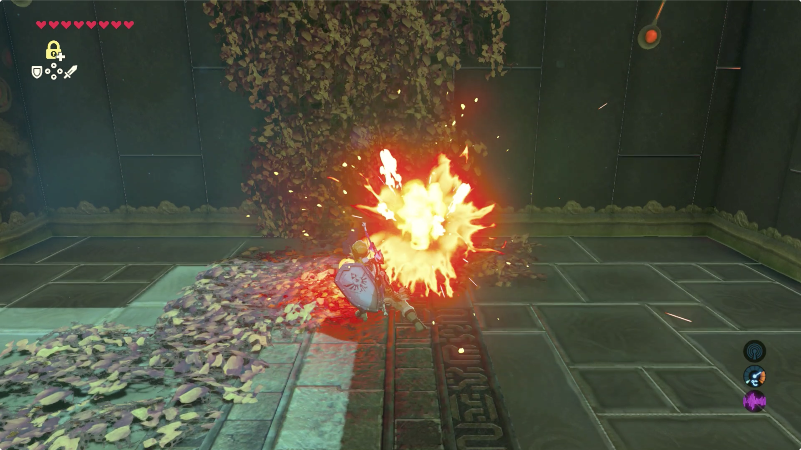 스위치의 우측에 있는 나뭇잎에 불을 붙이면 번져서 스위치 오른쪽 상자까지 태워준다.