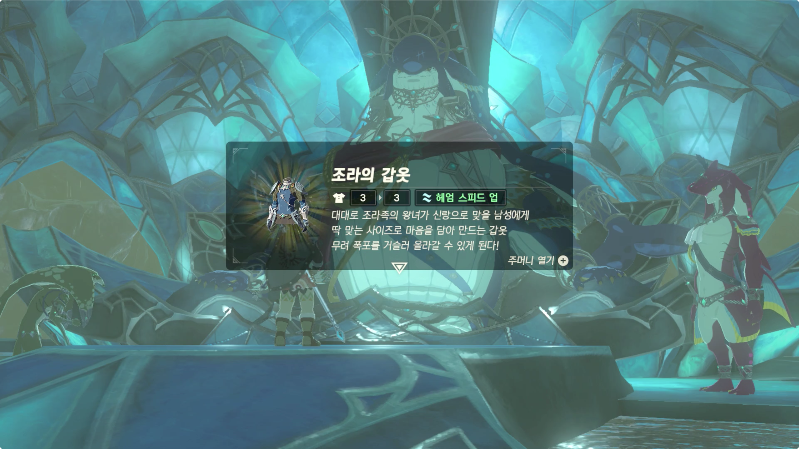 어떻게든 조라의 마을에 도착해서 조라족의 왕 도레판을 만나면 이벤트가 발생한다.