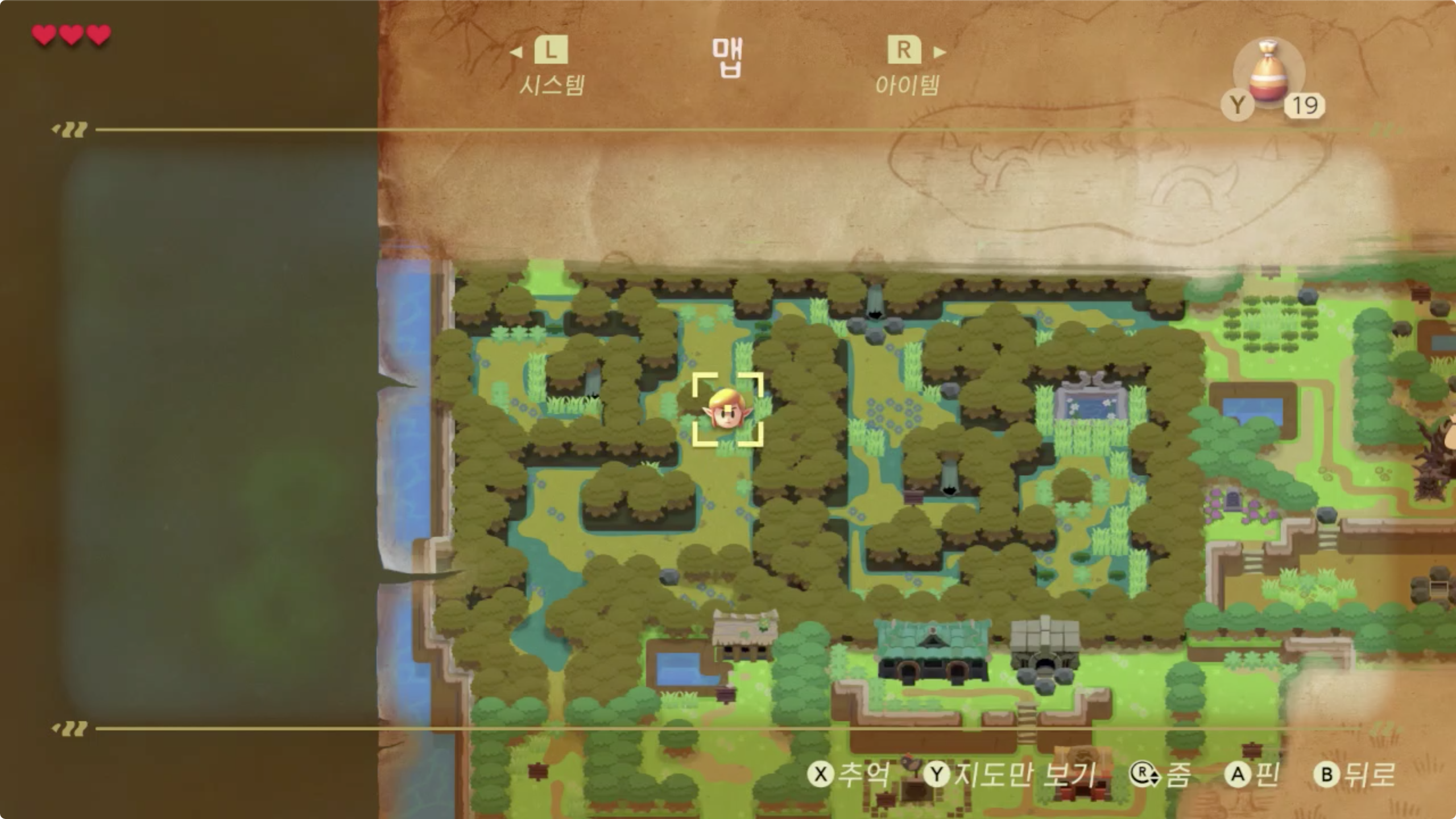+ 를 눌러 장비창을 열어 X / Y 버튼에 아이템을 세팅할 수 있다.