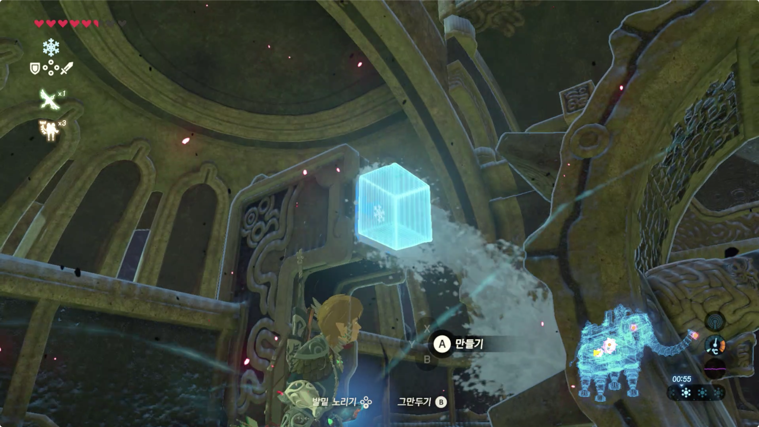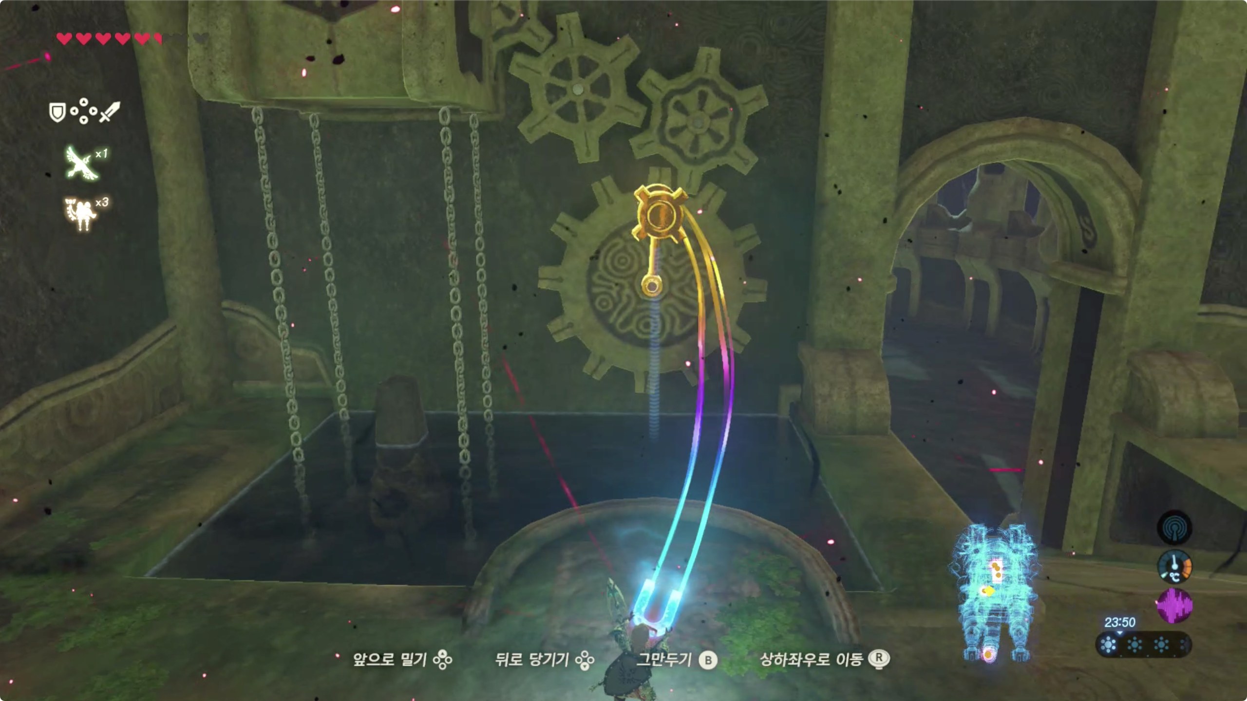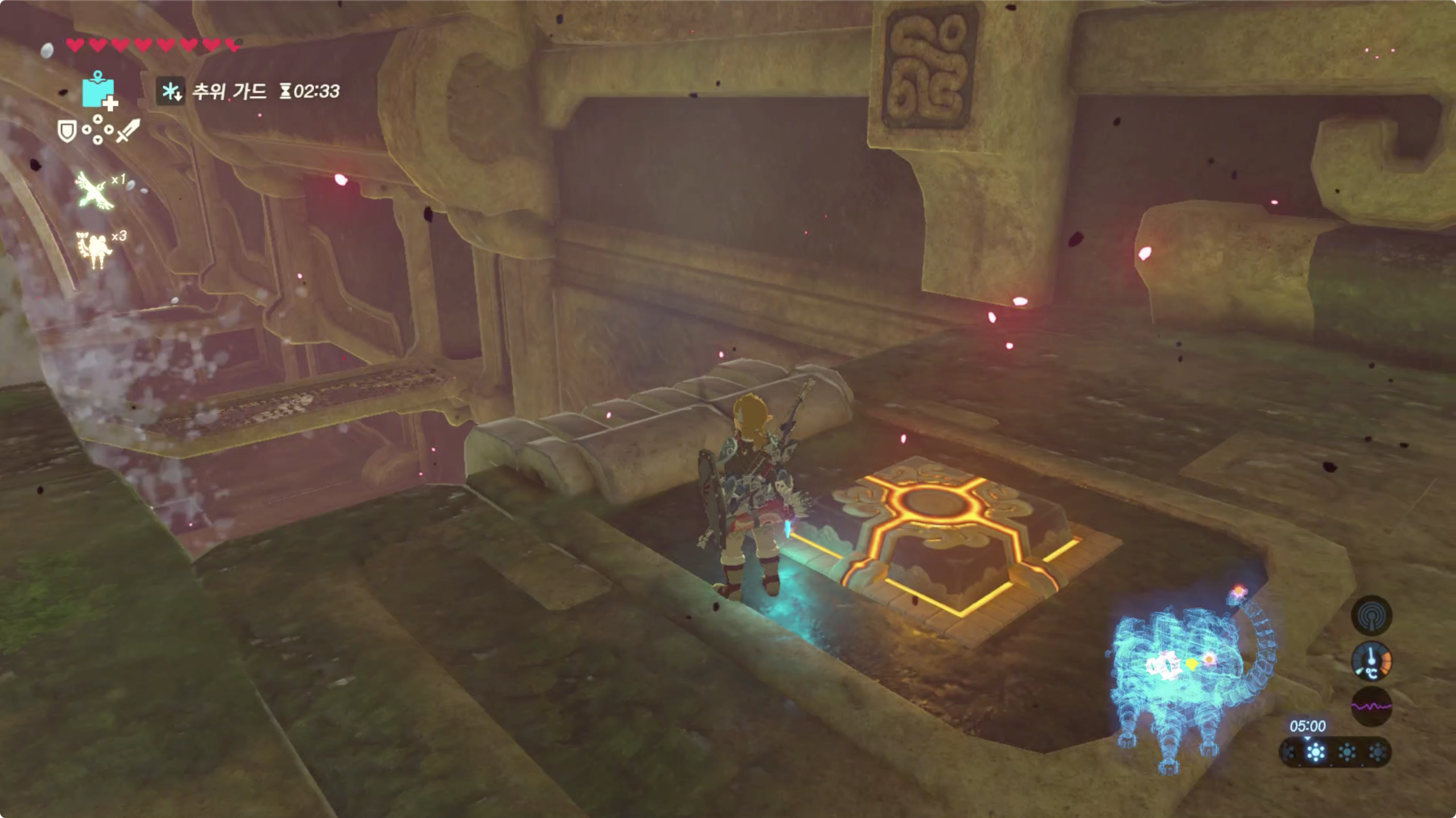 이제 구슬이 위아래로 이동하면서 문이 열렸다 다혔다 하니 타이밍을 봐서 들어가고, 제어 단말이 정면에 향했을 때 신수를 조작해서 물을 멈추어 제어단말을 활성화 해줍시다.