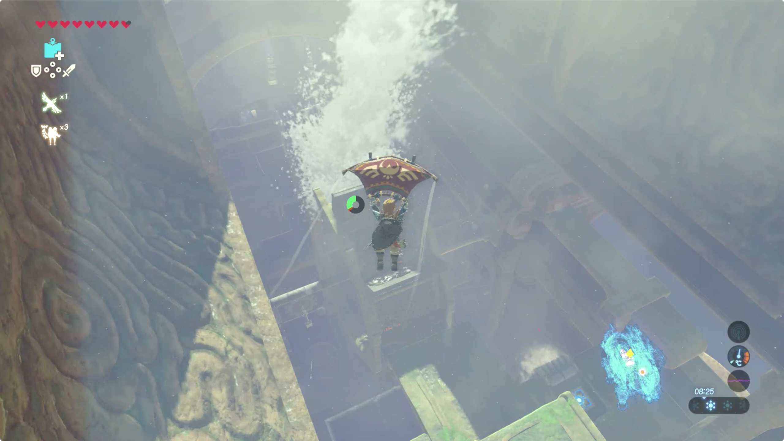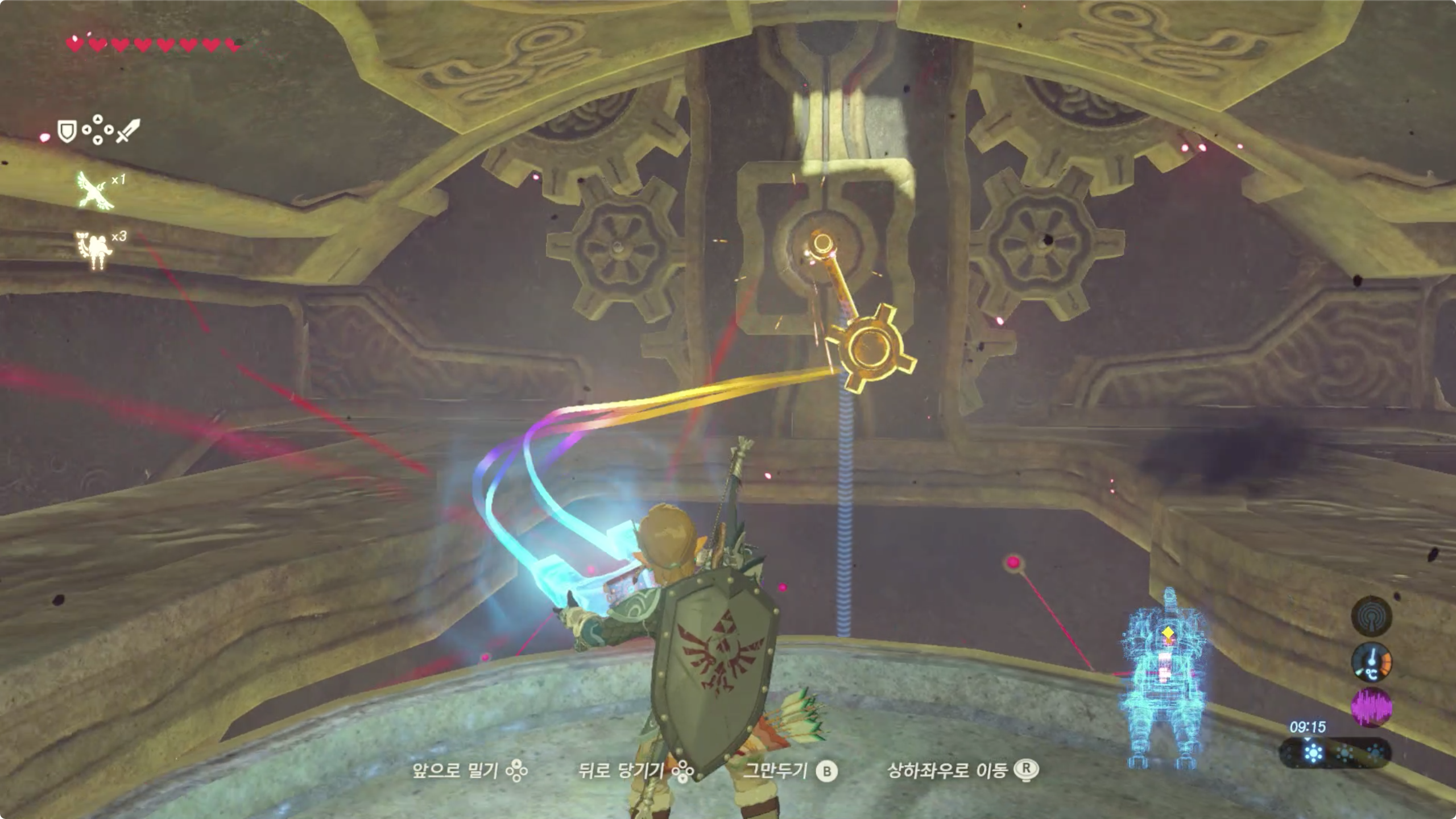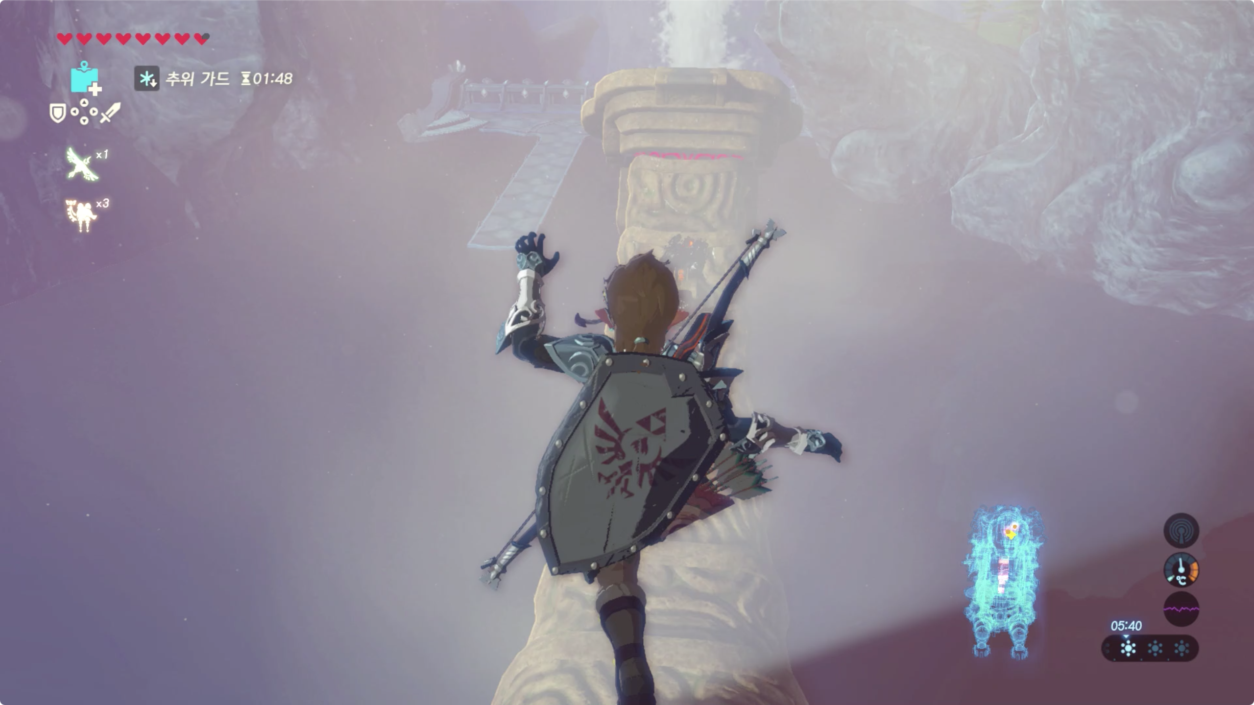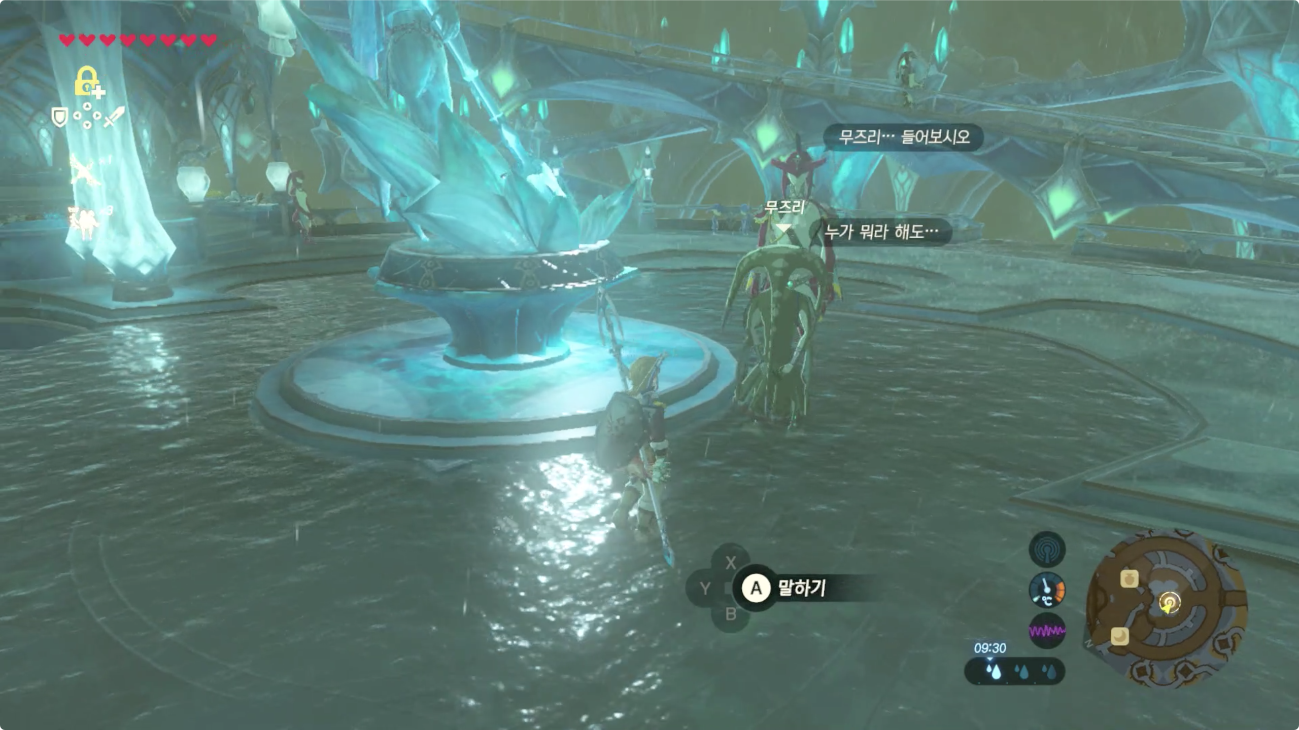 이제 구슬이 위아래로 이동하면서 문이 열렸다 다혔다 하니 타이밍을 봐서 들어가고, 제어 단말이 정면에 향했을 때 신수를 조작해서 물을 멈추어 제어단말을 활성화 해줍시다.